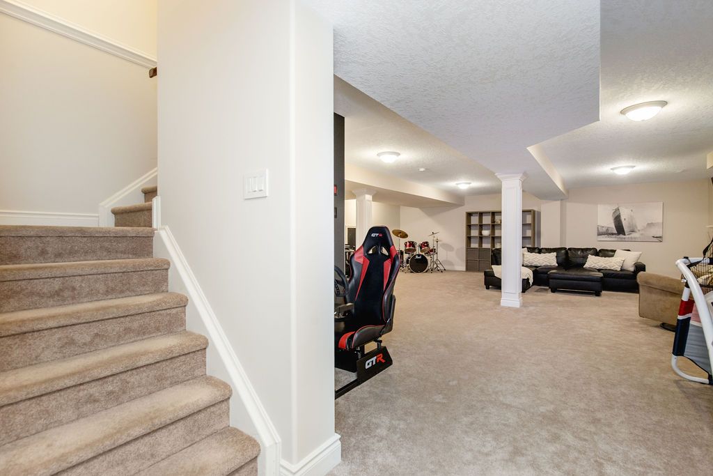 • Finished basement with cozy rec room, office, and ample storage.