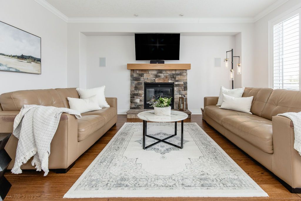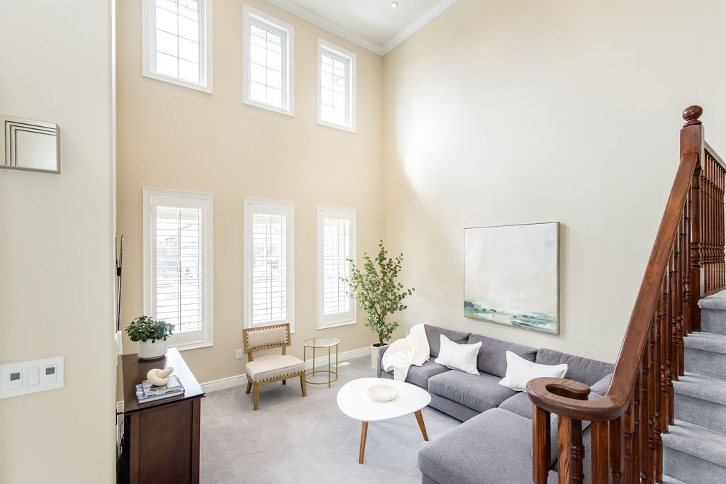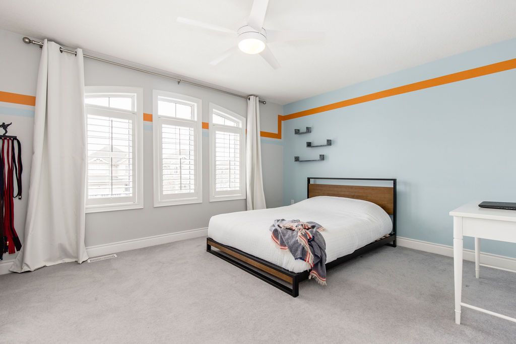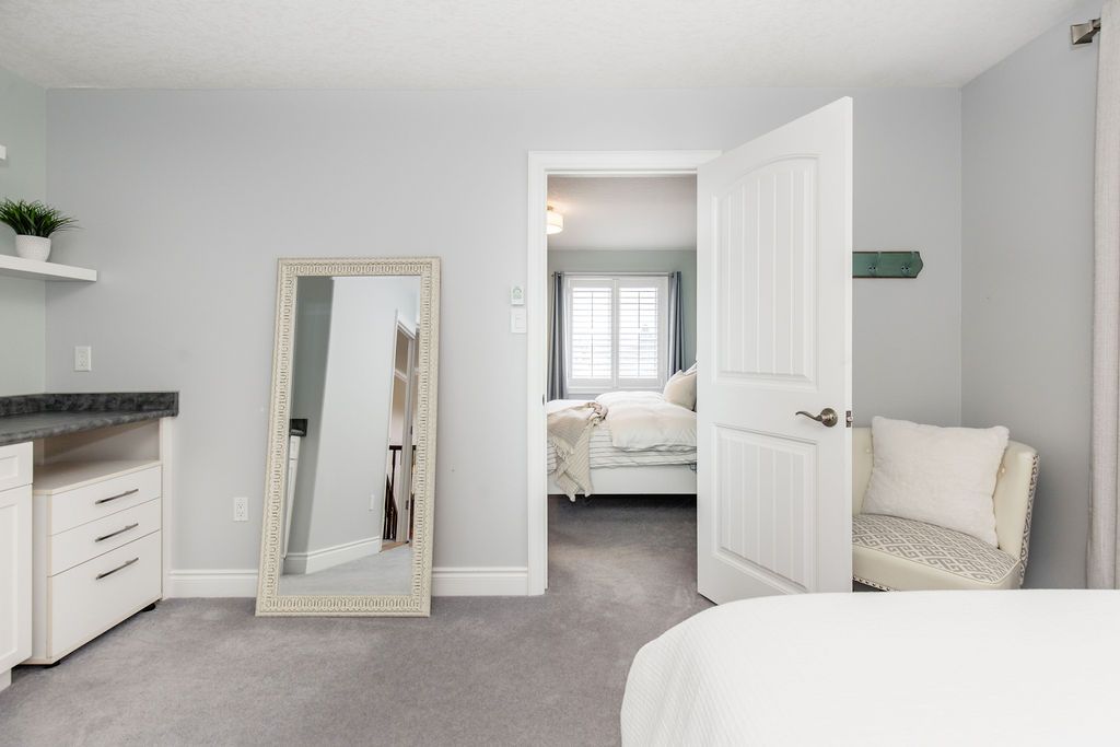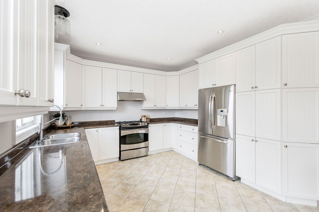 This exceptional 4,000 sq/ft family home offers grandeur, comfort and an unbeatable location perfect for families seeking space and lifestyle. Situated on a 50 ft lot, this all-brick home backs directly onto a beautiful four season park, providing privacy and the ultimate backyard for kids to play and explore. The pretty curb appeal sets the tone, while the elegant formal entrance welcomes you with a grand staircase and a dramatic two-storey living room featuring floor-to-ceiling windows that flood the space with natural light. The dining room is perfect for hosting family gatherings and special occasions. The kitchen offers timeless white cabinetry, double pantry and built-in appliances and flows into the family room complete with custom stone fireplace and built-in speaker system. Step outside to a generous 31' x 14' deck overlooking the tree-lined backyard with hot tub and direct gated access to the park, ideal for entertaining while keeping an eye on the kids at the playground. Upstairs, the primary suite is a serene retreat featuring an ensuite with large soaker tub and walk-in closet. A versatile adjoining bedroom can function as a nursery, home office or playroom. The additional bedrooms are spacious and share a full bath making this layout ideal for families. The laundry room doubles as a mudroom with convenient garage and side entrance access. The double car garage offers excellent storage, a work area and parking for two vehicles. The finished basement provides more living space with a home office, cozy rec room with gas fireplace, a full bathroom and an abundance of storage. Additional highlights include california shutters, central vac and an abundance of pot lights. Enjoy beautiful escarpment views from the front of the home along with stunning sunsets. Located on family-friendly dance street where children play and neighbours connect, this is a rare opportunity to own a truly grand home in an exceptional setting designed for everyday living.