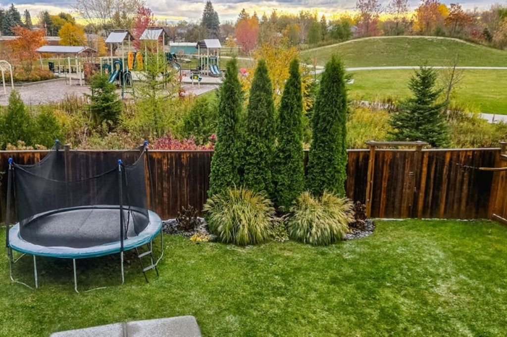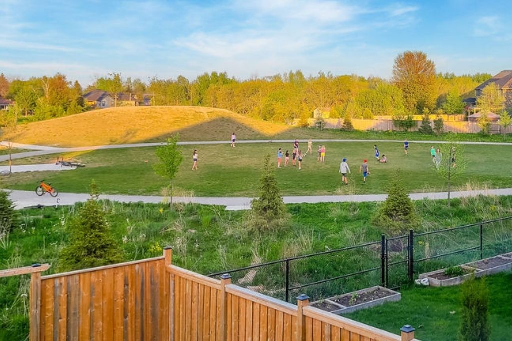 Stunning 4,000 sq/ft, 4 bedroom + den home backing onto park ~ this exceptional family home offers grandeur, comfort and an unbeatable location perfect for families seeking space and lifestyle. Situated on a 50 ft lot, this all-brick home backs directly onto a beautiful four season park, providing privacy and the ultimate backyard for kids to play and explore. The pretty curb appeal sets the tone, while the elegant formal entrance welcomes you with a grand staircase and a dramatic two-storey living room featuring floor-to-ceiling windows that flood the space with natural light. The dining room is perfect for hosting family gatherings and special occasions. The kitchen offers timeless white cabinetry, double pantry and built-in appliances and flows into the family room complete with custom stone fireplace and built-in speaker system. Step outside to a generous 31' x 14' deck overlooking the tree-lined backyard and direct gated access to the park, ideal for entertaining while keeping an eye on the kids at the playground. Upstairs, the primary suite is a serene retreat featuring an ensuite with large soaker tub and walk-in closet. Three additional bedrooms are spacious and share a full bath making this layout ideal for families. The laundry room doubles as a mudroom with convenient garage and side entrance access. The double car garage offers excellent storage, a work area and parking for two vehicles. The finished basement provides more living space with a home office, cozy rec room with gas fireplace, a full bathroom and an abundance of storage. Additional highlights include california shutters, central vac and an abundance of pot lights. Enjoy beautiful escarpment views from the front of the home along with stunning sunsets. Located on family-friendly dance street where children play and neighbours connect, this is a rare opportunity to own a truly grand home in an exceptional setting designed for everyday living.