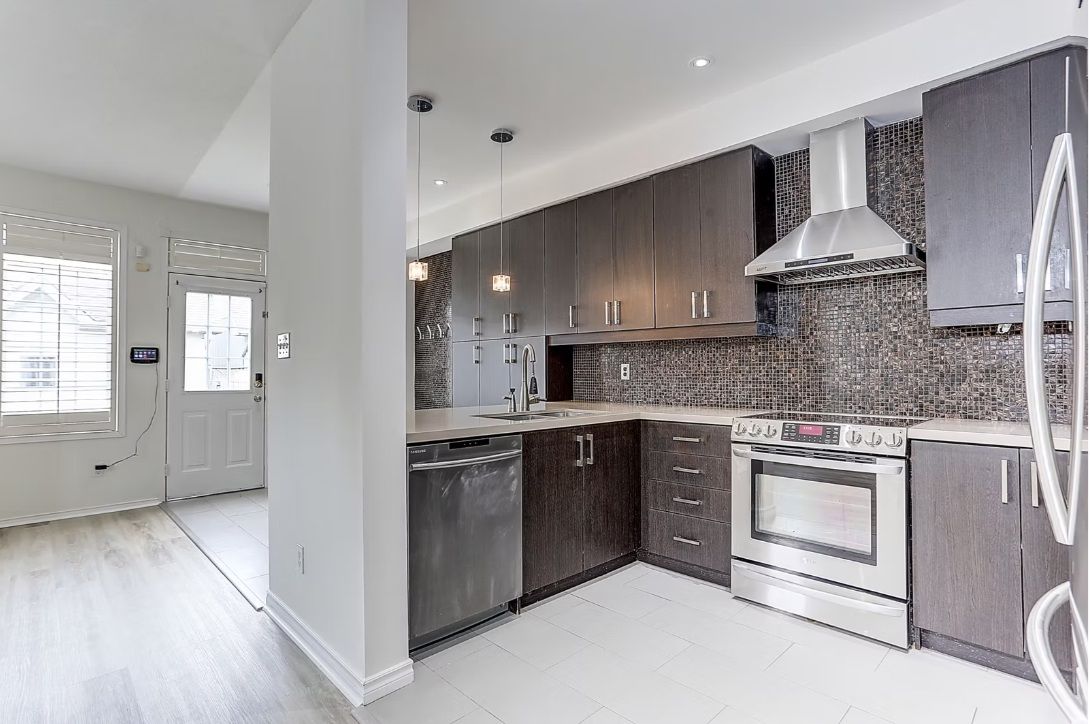 Absolutely stunning! Executive end unit freehold townhome like a detached house in angus glen community, walk to p. E. Trudeau high school, very bright, open concept, custom built kitchen, master bedroom with private balcony, hardwood floors, 9ft ceilings on main floor, all bathrooms renovated, finished basement-pot lighting and a 2pc bath. Fenced in backyard with interlock patio, covered front porch, detached 2 car garage with extra parking spot! Must see!