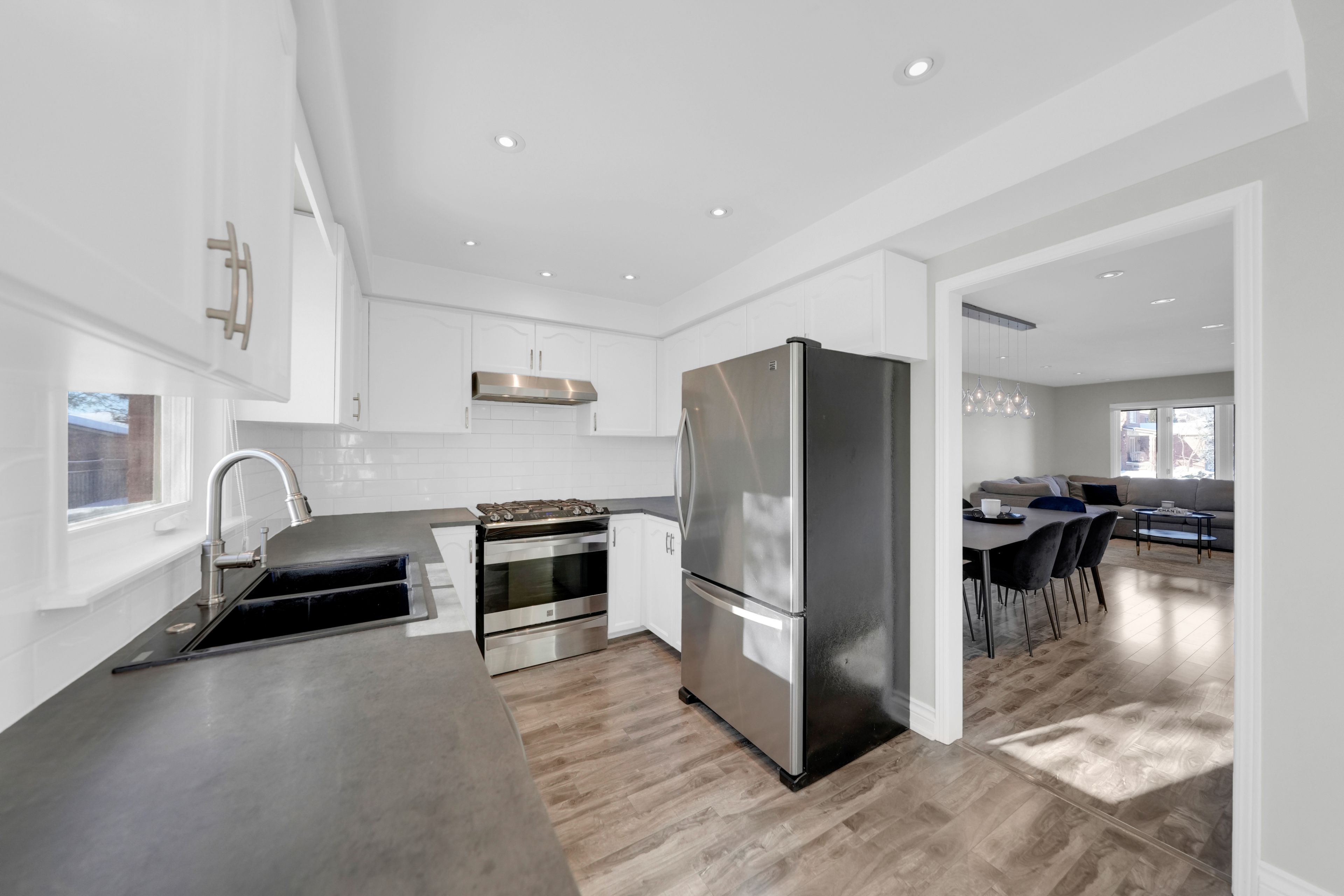 Wonderfully upgraded home situated on one of the largest lots in the neighbourhood, featuring an impressive 48 ft wide by 156 ft (on the east side). This true 4-bedroom home boasts a beautifully renovated main floor with separate family, living, and dining rooms, as well as an updated eat-in kitchen with stainless steel appliances. The fully finished basement, with a separate side entrance, offers a complete second kitchen with island and two additional bedrooms - perfect for an in-law suite or potential rental income. Upstairs, you'll find four spacious bedrooms including a primary suite with its own ensuite bath. Set on a quiet, family-friendly street of detached homes, this property also offers a widened 3-car driveway and a generous, rectangular backyard - ideal for entertaining, play, or future expansion. A rare combination of space, versatility, and comfort in a sought-after community! Please note: the garage has been reconfigured to create a larger laundry/mud room and provide direct access to the side entrance and lower level. Garage is used for storage only.
