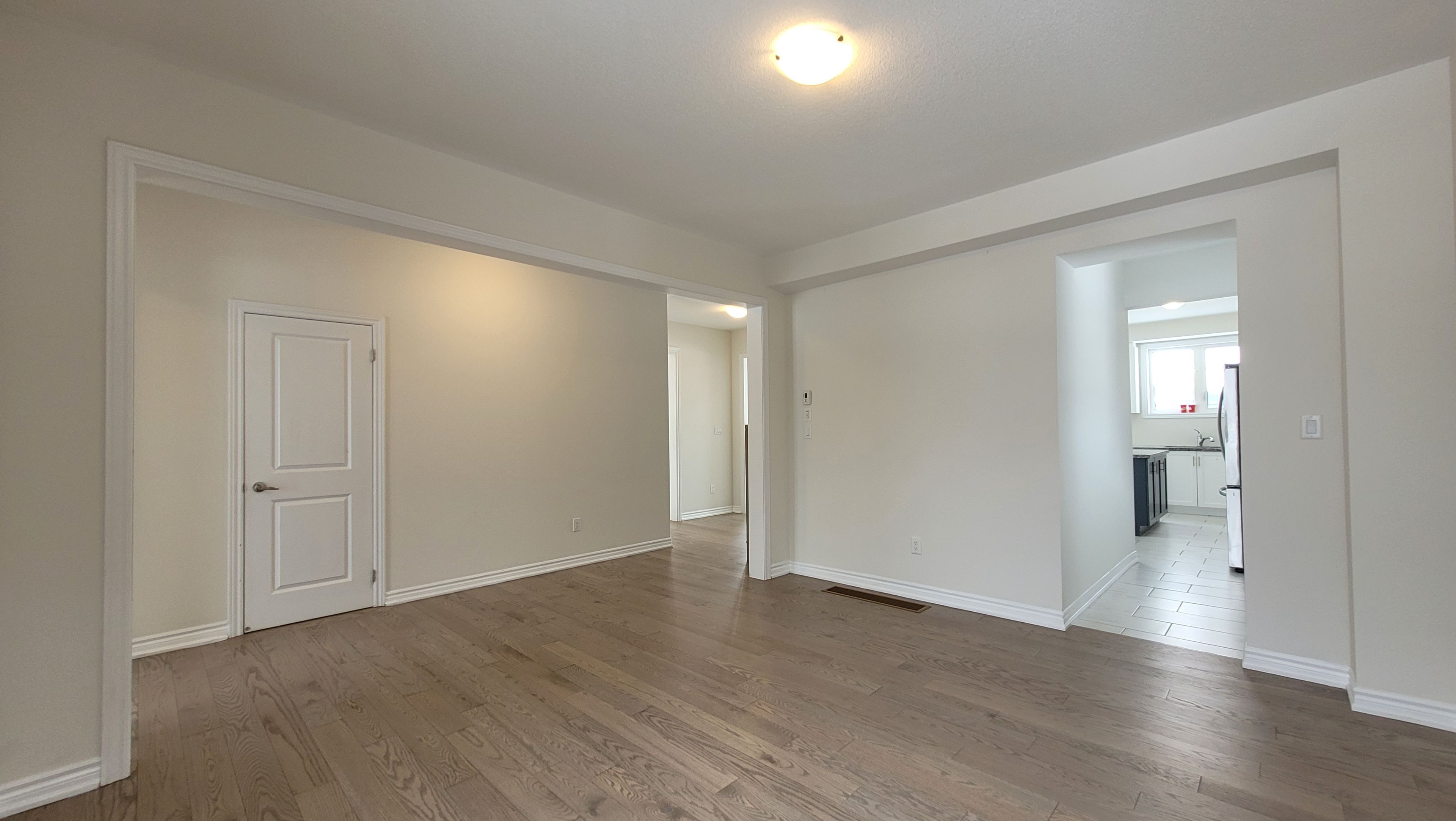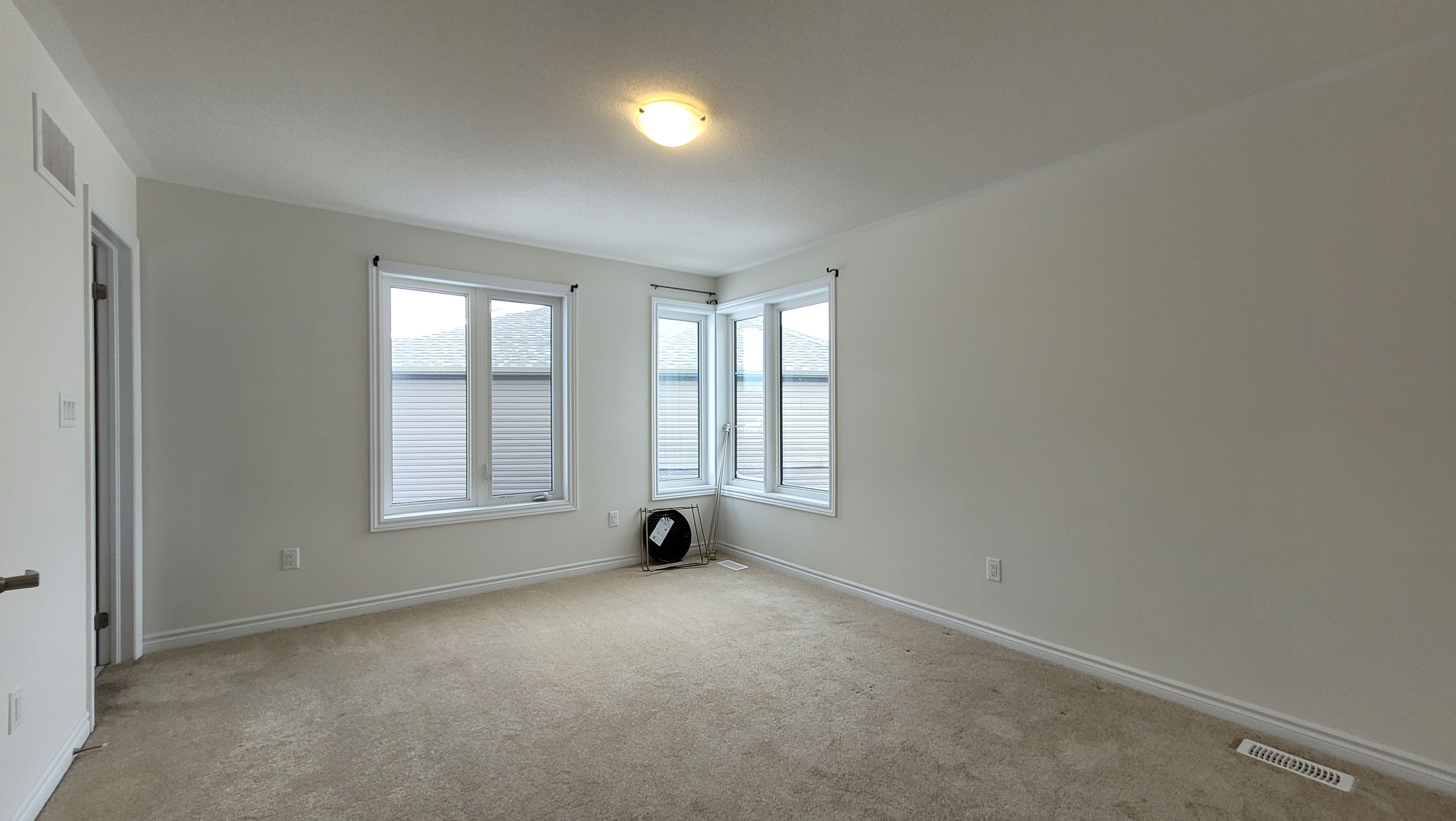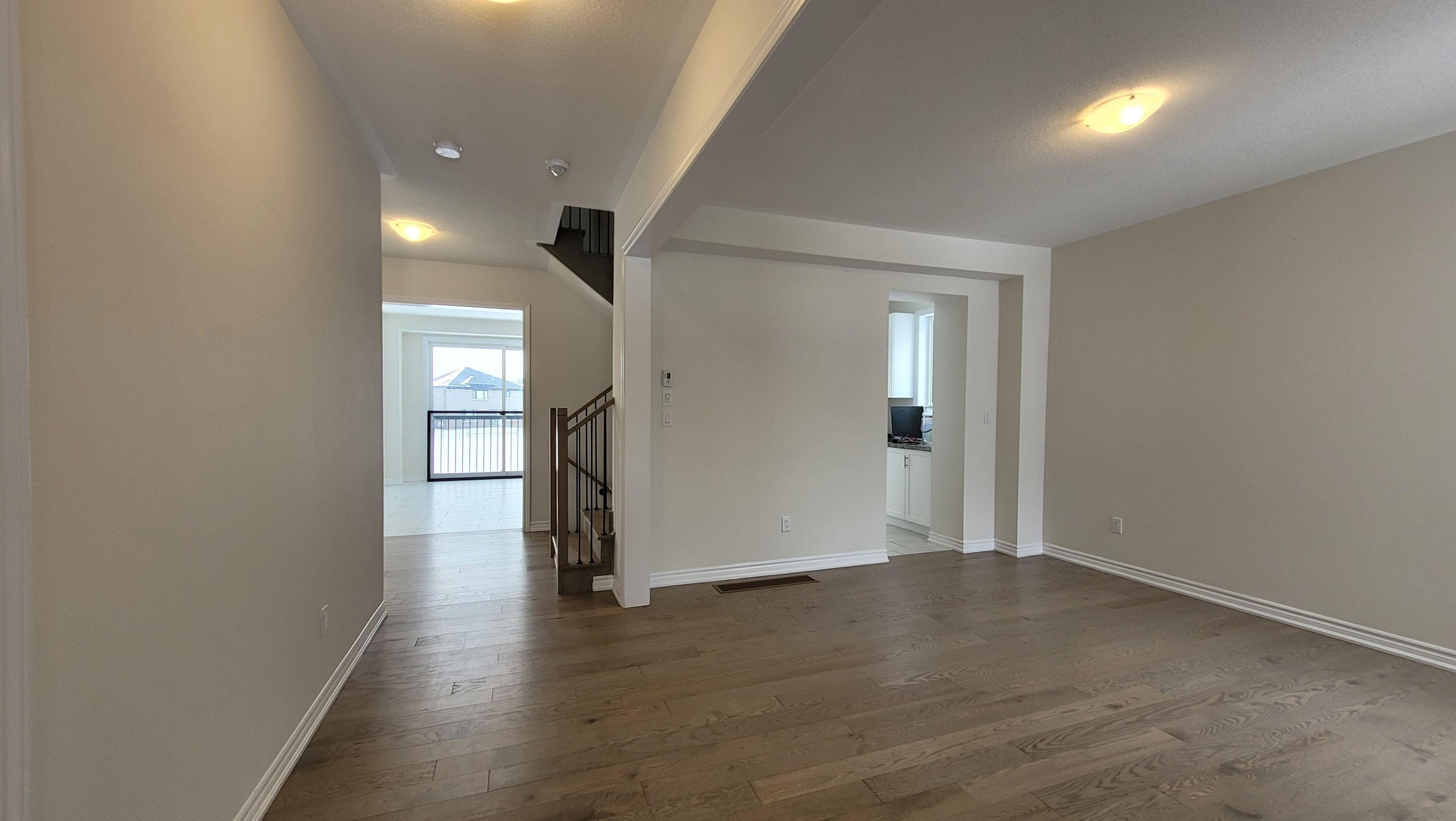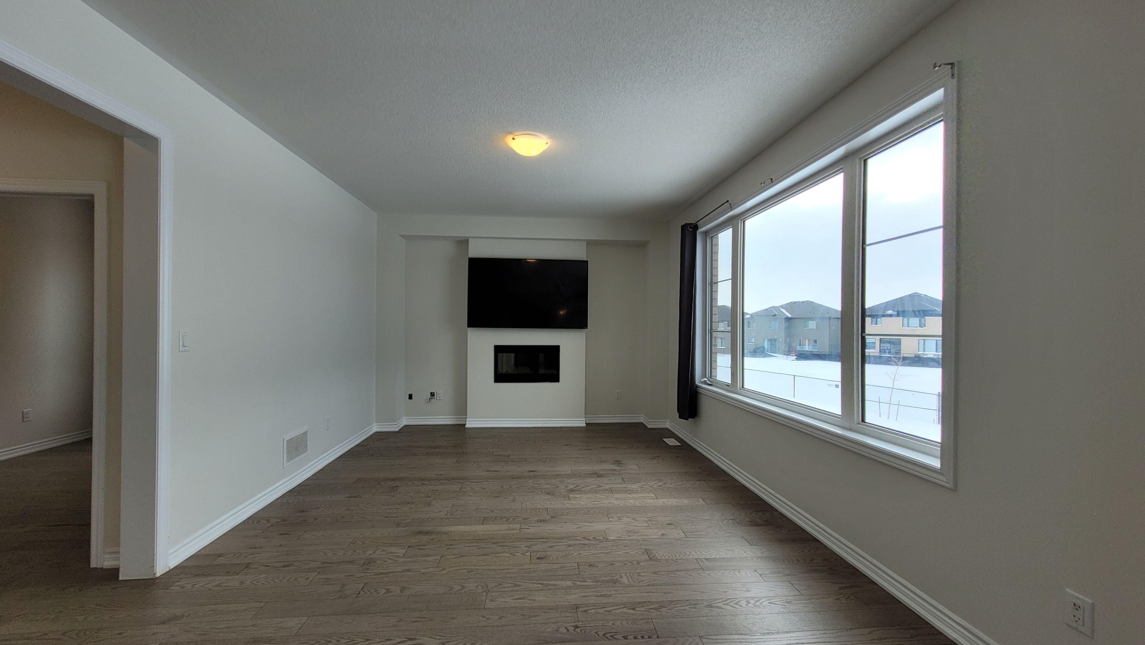 This impressive 3,139 sq. Ft. Four-bedroom, four-bathroom home is available for lease and offers a well-designed layout with quality finishes throughout. Hardwood and ceramic flooring enhance the main level. The spacious main floor features a generously sized foyer that opens to an elegant dining room, with the kitchen offering a convenient servery to the dining area. Sliding glass doors provide a view of the backyard and allow for plenty of natural light. The family room is highlighted by a built-in electric fireplace, creating a warm and inviting space. Hardwood stairs lead to the upper level, where all four bedrooms are located. The primary suite includes an oversized five-piece ensuite with a soaker tub, glass shower, double sinks, and two walk-in closets. The second bedroom features its own three-piece ensuite with a shower, while bedrooms three and four share a jack-and-jill bathroom with a separate water closet. The home also offers a double-car garage with interior access and parking for up to four vehicles on the driveway. Ideally located just a short drive to all town amenities. The unfinished walkout basement is bright and offers a walkout to the rear yard and provides additional flexible space. All utilities plus hot water heater rental in addition to the rent.