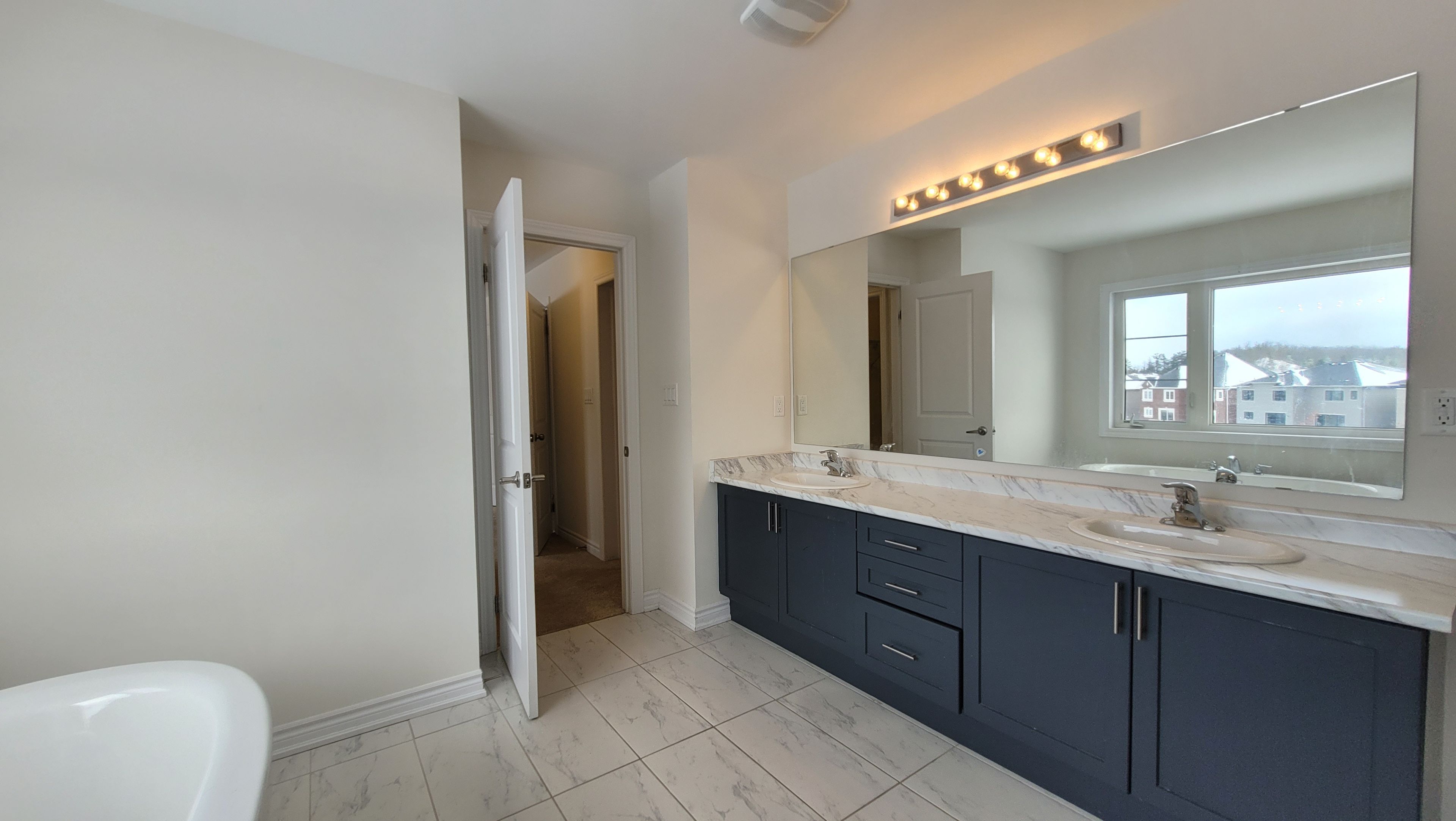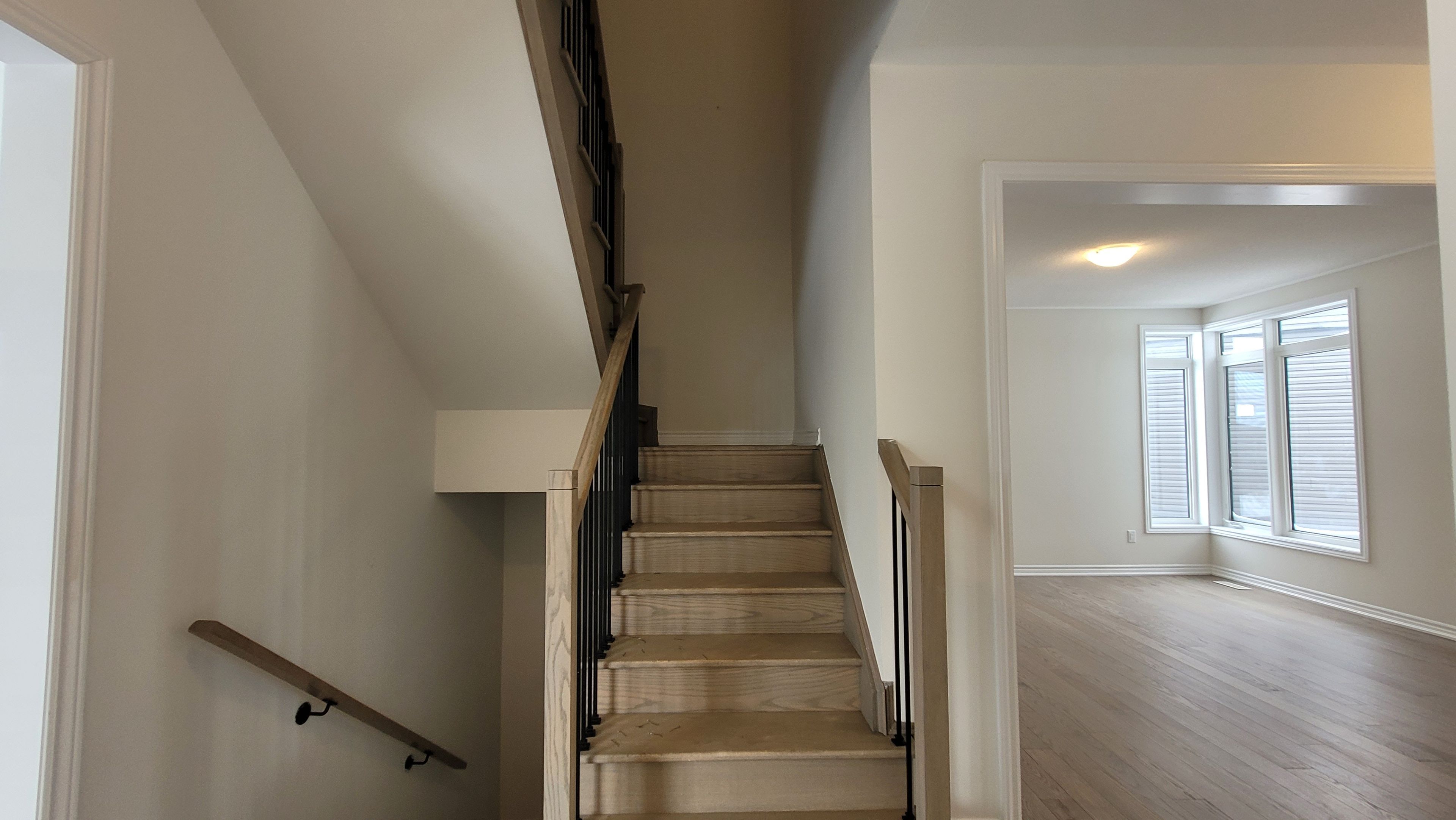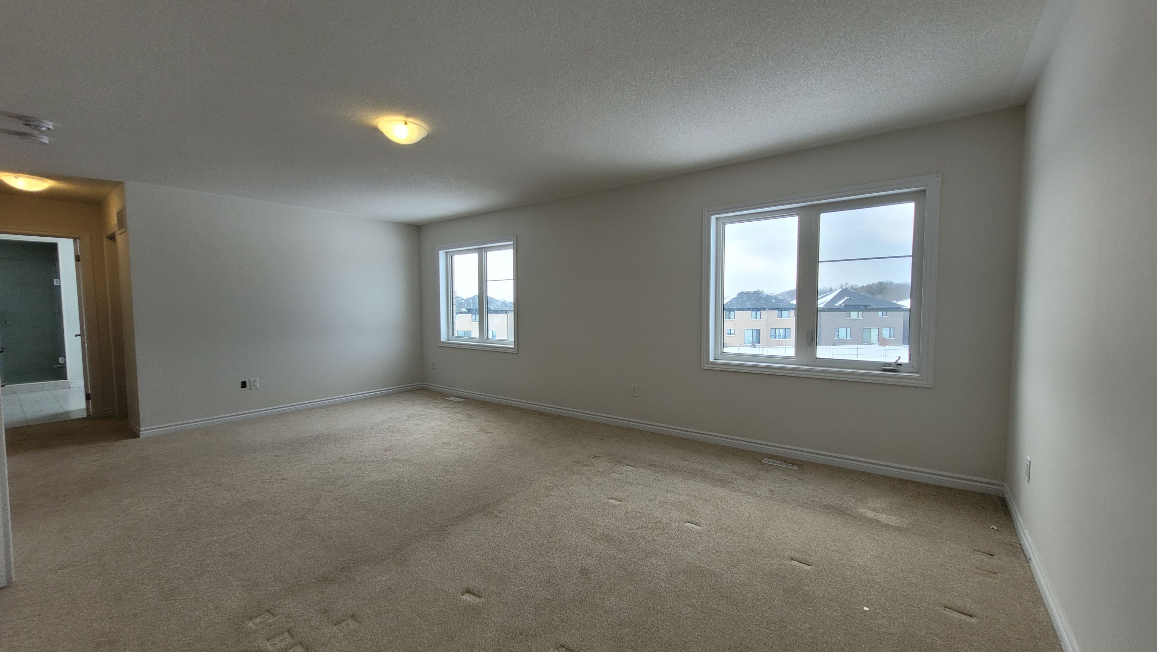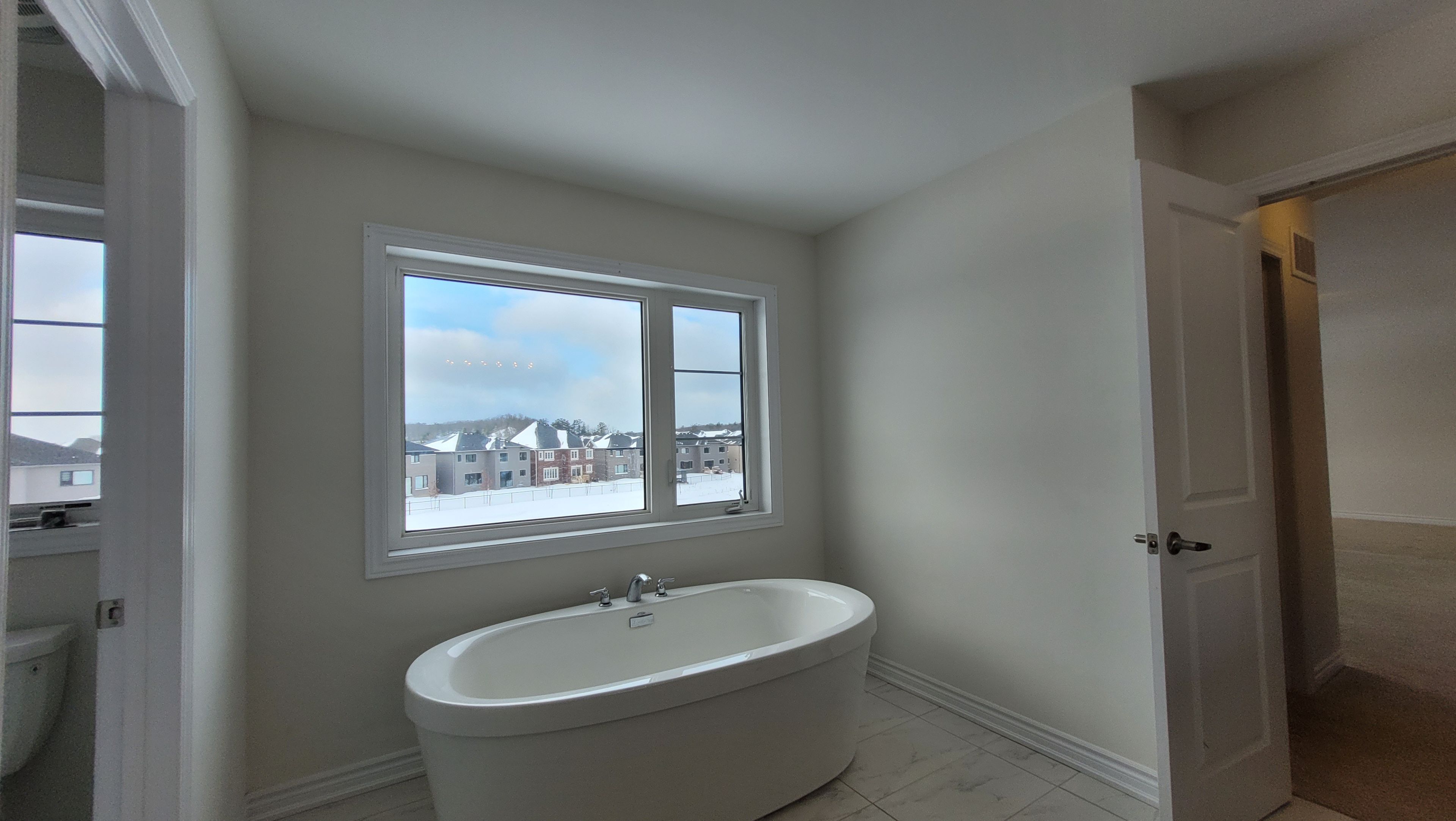 This impressive 3,139 sq. Ft. Four-bedroom, four-bathroom home is available for lease and offers a well-designed layout with quality finishes throughout. Hardwood and ceramic flooring enhance the main level. The spacious main floor features a generously sized foyer that opens to an elegant dining room, with the kitchen offering a convenient servery to the dining area. Sliding glass doors provide a view of the backyard and allow for plenty of natural light. The family room is highlighted by a built-in electric fireplace, creating a warm and inviting space. Hardwood stairs lead to the upper level, where all four bedrooms are located. The primary suite includes an oversized five-piece ensuite with a soaker tub, glass shower, double sinks, and two walk-in closets. The second bedroom features its own three-piece ensuite with a shower, while bedrooms three and four share a jack-and-jill bathroom with a separate water closet. The home also offers a double-car garage with interior access and parking for up to four vehicles on the driveway. Ideally located just a short drive to all town amenities. The unfinished walkout basement is bright and offers a walkout to the rear yard and provides additional flexible space. All utilities plus hot water heater rental in addition to the rent.