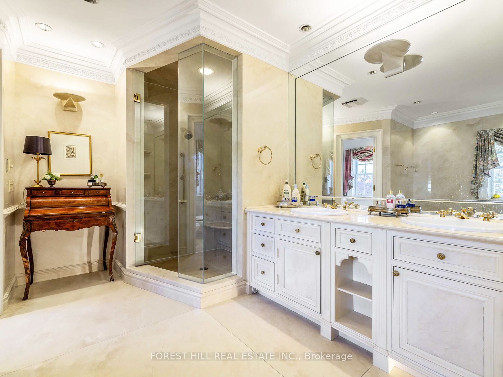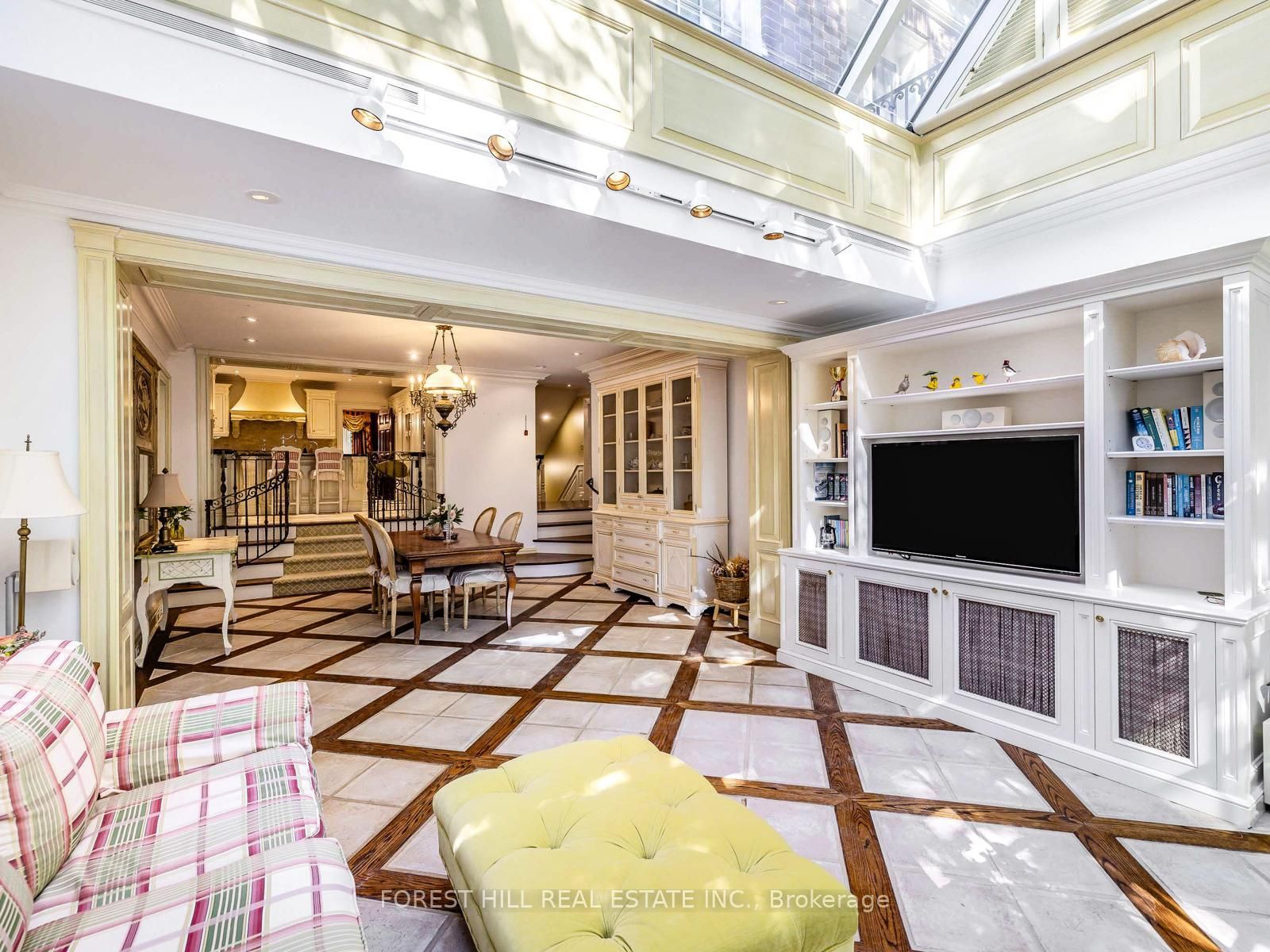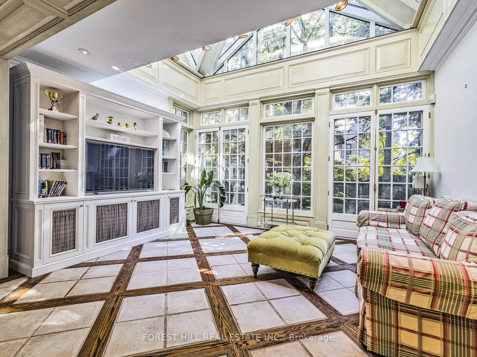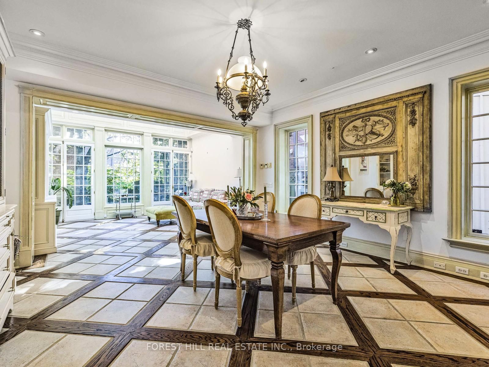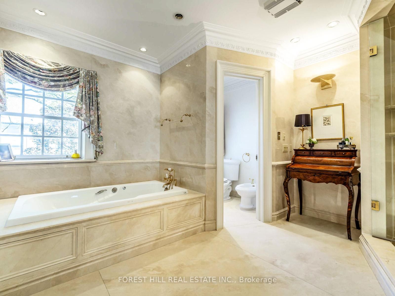 **captivating residence/exquisite estate--classic elegance--this magical home has been meticulously cared for, remodeled/upgraded, and maintained by its owners--classic/charm centre hall design offers spaces of refined and elegant comfort--5,511 sq. Ft (3 storey) + 1,007 sq. Ft (basement)---total 6,518 sq. Ft of luxurious--where every impeccable detail has been carefully crafted and preserved. The grand principal rooms are designed for both elegance and comfort, a formal dining room and a living room with marble mantle fireplace. The functional gourmet kitchen is equipped with built-in appliances (sub-zero/wolf brand), custom cabinetry & granite countertops. The adjoining family/sun room features a heated limestone floor and 16 ft high glass ceilings, allowing natural sunlight and french doors walkout to south exposure private garden. Upstairs, the hand-carved antique pine paneled library elaborates a story of this home, perfect for versatile use such as 2nd family room and adjoining a mahogany paneled office for a private space. The primary bedroom offers a dressing room, 6 pcs ensuite. The family gym on 2nd floor offers a 18 ft high ceiling with skylights for convenience and comfort. On 3rd floor, the additional all 3 bedrooms provide their own private ensuites, closets, and feature a 3rd furnace and 2nd laundry area. The lower level offers an entertainment room, music and studio room, wine cellar with climate control. Outside, the landscaped lush garden features cheerful trees for privacy and relaxation, and a heated driveway for 5 vehicles, and 2 cars in garage. Surrounded by top ranking private and public schools-ucc/bss/havergal college/forest hill junior & senior ps & forest hill ci. A short walk brings you to forest hill village with shops, restaurants & cafes, minutes to sunway station, hwys & more!