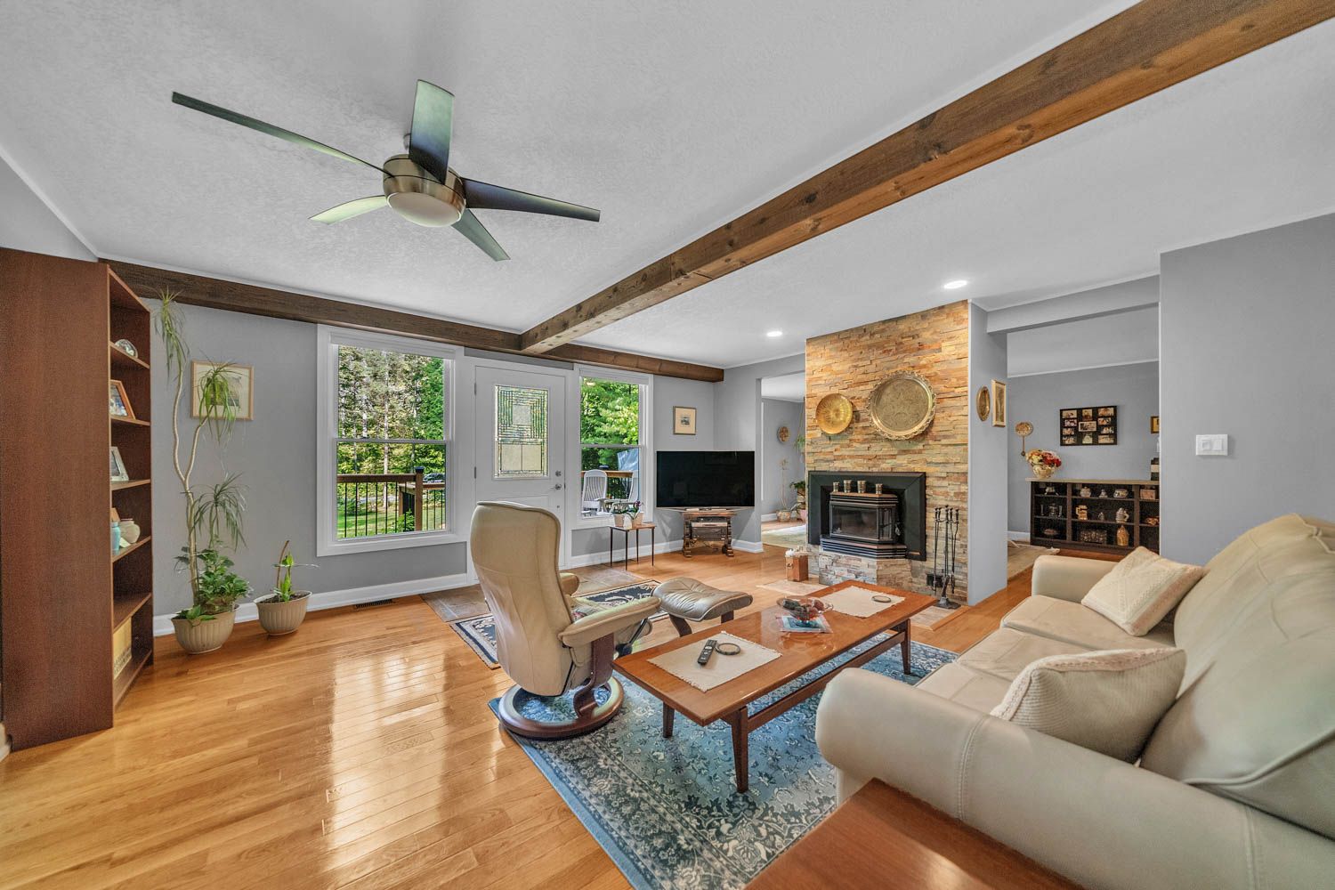 Discover this meticulously renovated 4-bedroom, 2-bathroom raised bungalow at 11 duquette court, tiny, located on a quiet cul-de-sac. The exterior exudes charm with new wood board and batten siding, fresh paint, and aluminum soffit, fascia, and eavestroughs. A resurfaced concrete front deck with new railings and led landscape lighting enhances curb appeal, while a regraded lot with new landscaping and driveway ensures functionality. A 12x28 ft prefab garage with a metal roof and a fire pit area adds versatility. Step inside the main floor, where oak hardwood floors and fresh paint create a warm ambiance. The expanded kitchen, renovated, boasts stainless steel appliances, ample counter space, a gas stove, plenty of storage, and a walkout to the side deck. The living room, with a wett-certified wood-burning insert with blower and new slate tile surround, offers comfort. Large windows (2015) flood the space with light, showcasing new solid wood interior doors, trim, and rubbermaid closet organizers. The primary bedroom features ample space and a newly finished 3-piece ensuite, accompanied by two additional bedrooms and a fully renovated 4-piece bathroom with an 8 jet jacuzzi. New insulation in exterior walls and r-70 attic insulation ensures energy efficiency. Upgraded electrical panel/wiring throughout the home. Fully renovated basement offering additional living space, laundry, and lots of storage space. New custom stairs with carpet and oak handrails lead to a spacious recreation room with newly insulated walls and floor joists to ensure comfort. A fourth bedroom with an egress window extends the living space. New abs drains, pex water lines, and a new 100-amp electrical panel with whole-house surge protection ensure reliability. New hvac system optimizes wood stove heating, complemented by a new septic pump in the pump chamber, sump pump with battery backup, and an inspected septic system. Minutes from georgian bay.