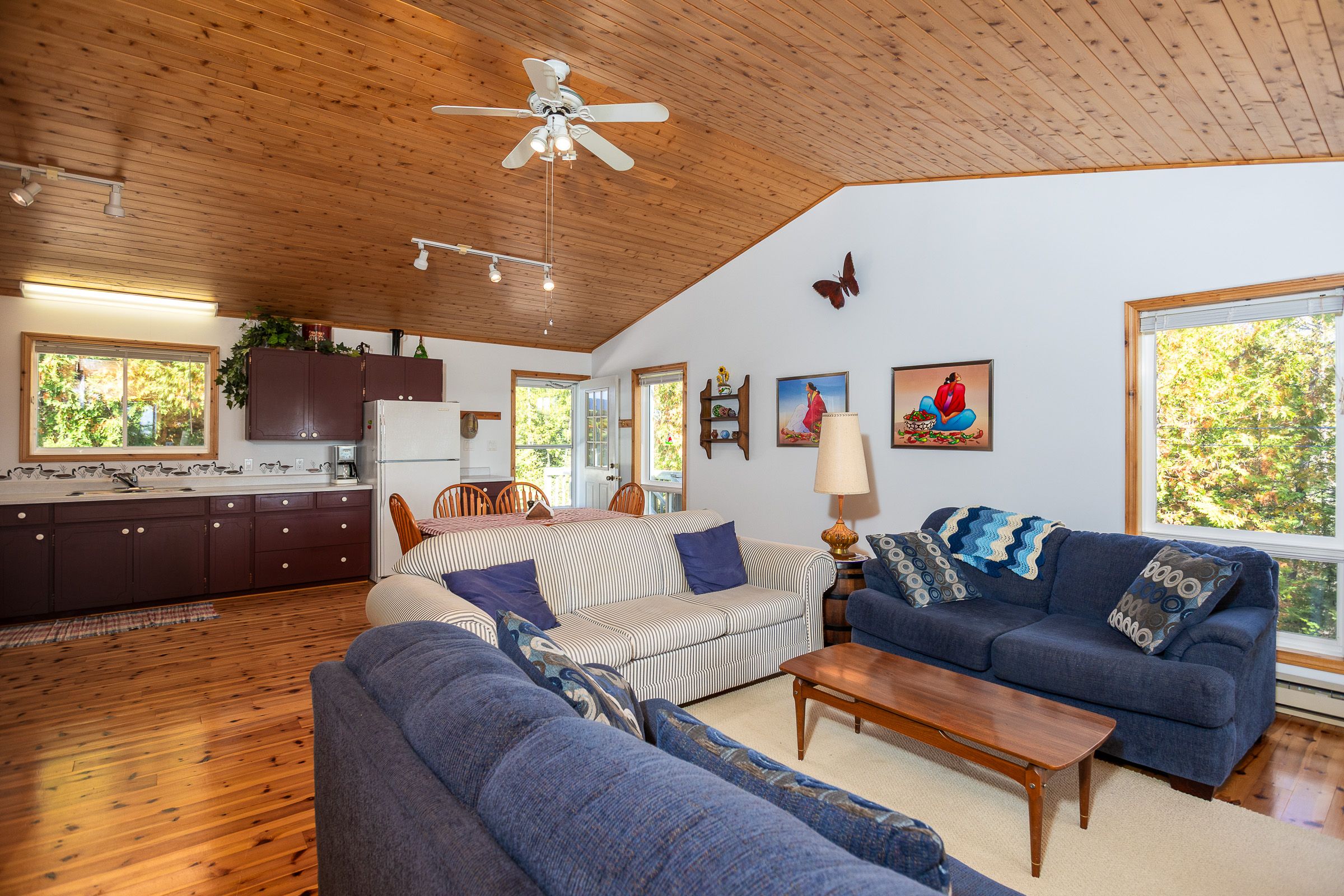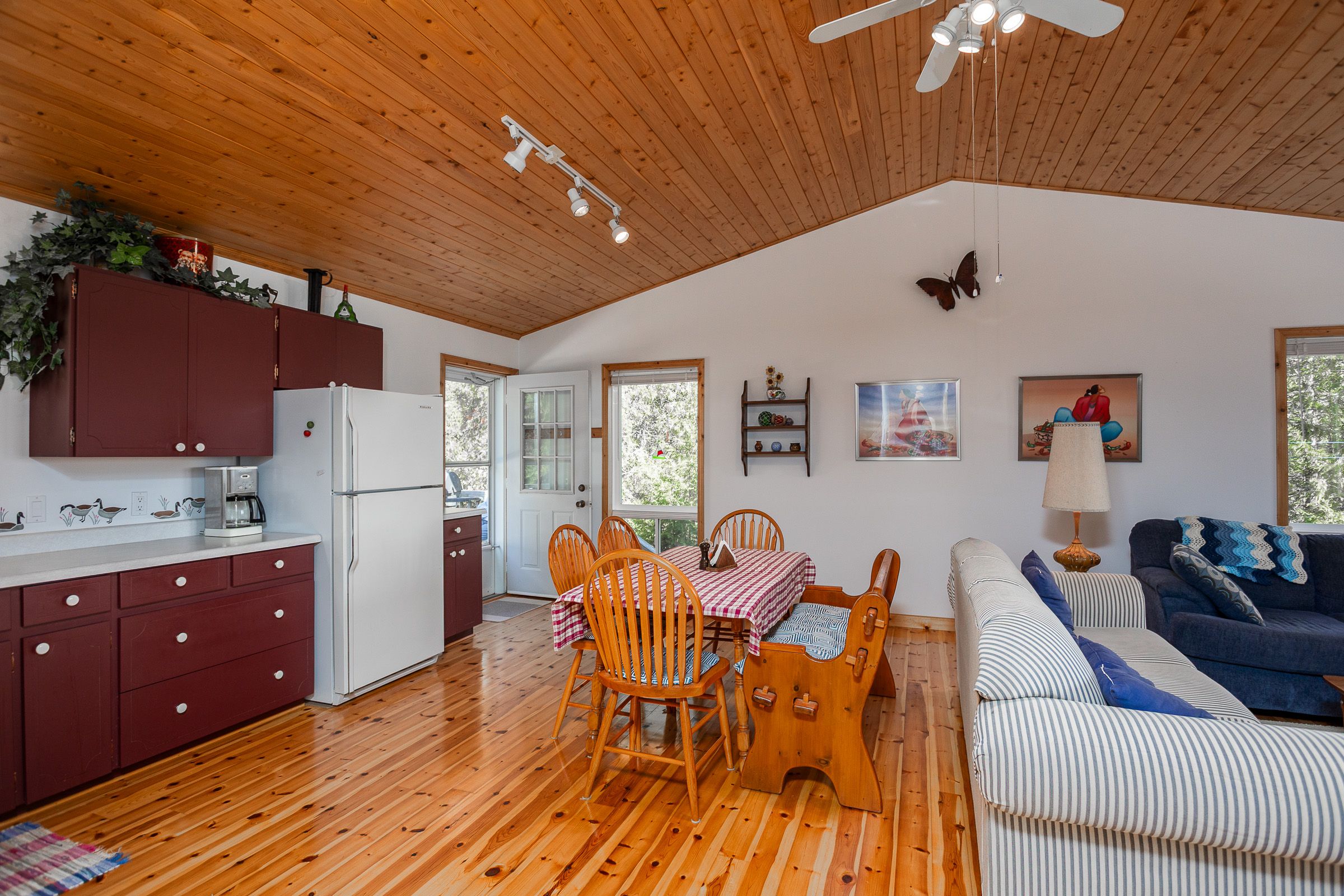 Experience exceptional privacy and natural beauty at this inviting waterfront home or cottage set on an extra-wide lot with desirable southern exposure near tobermory. Lovingly maintained by the original owner, this turnkey property is being offered with most furnishings included, making it ready to enjoy from day one. Inside, the bright open-concept design is filled with natural light and showcases captivating lake views from the principal living spaces. The spacious kitchen features modern appliances and generous counter space, flowing effortlessly into the dining and living areas-an ideal setting for entertaining or relaxed everyday living. Three comfortable bedrooms and a well-appointed 4-piece bathroom with convenient laundry provide easy one-level living, while warm pine and cedar finishes add a timeless cottage character throughout. Step outside to the impressive 335 sq. Ft. Covered waterside deck, a perfect extension of the living space where you can unwind with a book, relax in a hammock, or entertain while taking in the sparkling water views. A dry crawl space beneath the home provides excellent storage for kayaks, bicycles, and outdoor equipment. The property also offers ample parking with space available should a future detached garage be desired. The expansive lot features several tranquil spots to enjoy nature, birdwatch, or simply soak up the sun. The shoreline offers easy, gradual water access ideal for swimming or launching kayaks. Located close to singing sands beach and within easy reach of tobermory's shops, marina, and amenities, this exceptional property offers a rare opportunity to own a move-in ready waterfront retreat in one of the bruce peninsula's most desirable areas.