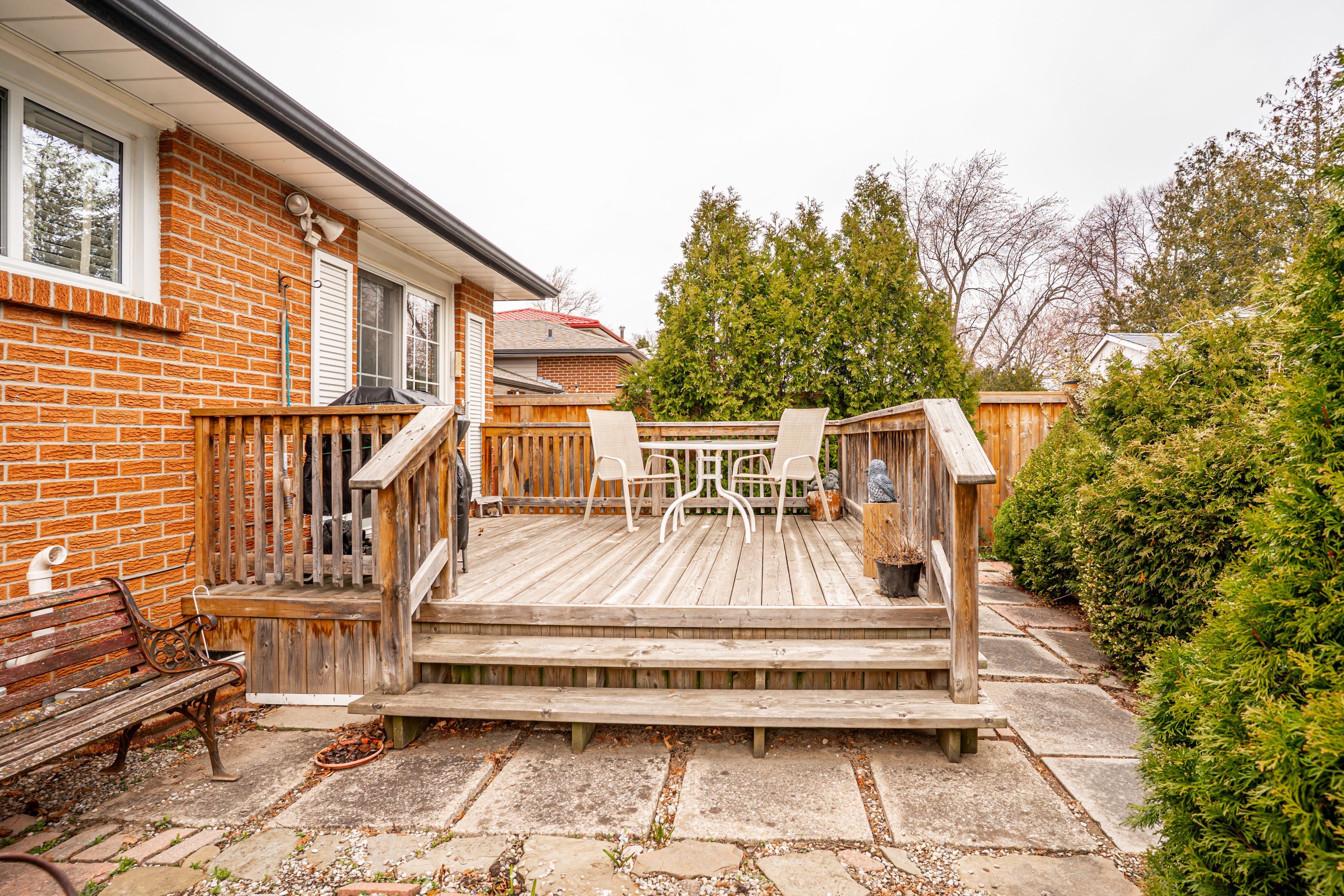 • Well-maintained raised bungalow on a deep lot surrounded by mature trees.
