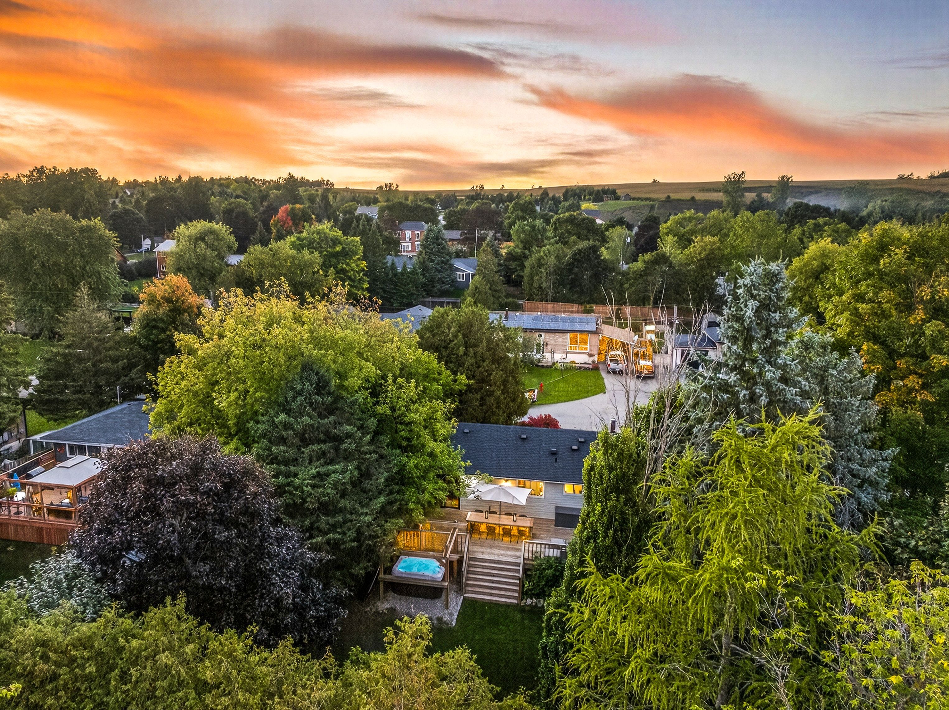 Pride of ownership! Beautifully maintained raised bungalow nestled on large 75 x 125 ft extremely private lot in the heart of hillsburgh! New garage (2022) with extension creates 2 tandem parking spaces, fully heated & insulted, with full drive-thru to backyard & side entrance! Fully renovated with over 2,200+ sqft of total living space, welcoming foyer leads to open concept main level with hardwood flooring throughout. Spacious living room boasts pot lights & large window allowing natural sunlight to pour in. Formal dining area with walk-out to the massive backyard wood deck, & private fully fenced backyard oasis, perfect for hosting friends & family for any occasion! Spacious kitchen features stainless steel appliances including gas stove, stylish subway tile backsplash, laminate countertops, & full floor to ceiling cabinetry providing lots of storage space! 3 spacious bedroom complete the main floor, primary bedroom boasts double closets & large windows. Plus 2 additional bedrooms each with closet space are perfect for family or guests to stay! Newly renovated (2023) 5 piece bathroom with granite counters, double sinks, & shower/tub combo with waterfall shower head! Brand new fully finished basement with laminate flooring throughout, features spacious rec room with fireplace insert, perfect for an additional living space or children's area! Plus an additional bedroom with closet space & 2 piece bathroom, plus lower level laundry & ample storage space. Private backyard oasis with 8-seater hot tub, fire pit, garden shed, & tons of greenspace is the perfect summer hangout spot. Stunning curb appeal boasts lush gardens & mature trees in front & back yards & 4 car driveway with no sidewalk for ample parking! Ideal location nestled close to schools, groceries, hillsburgh park, & erin heights golf course! Recent upgrades include: garage & redone exterior (2022), new front door (2021), both bathooms updated, roof (2021).