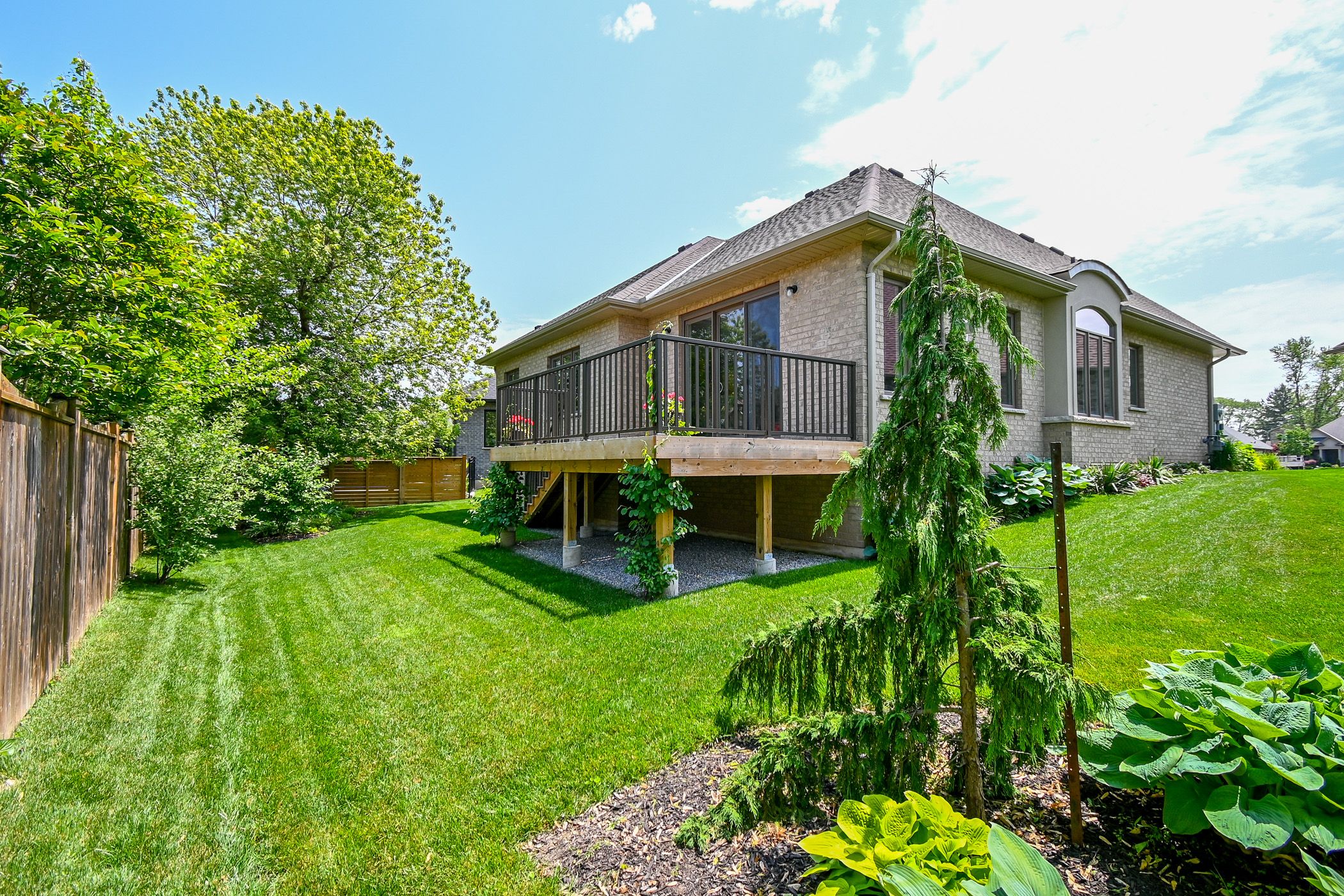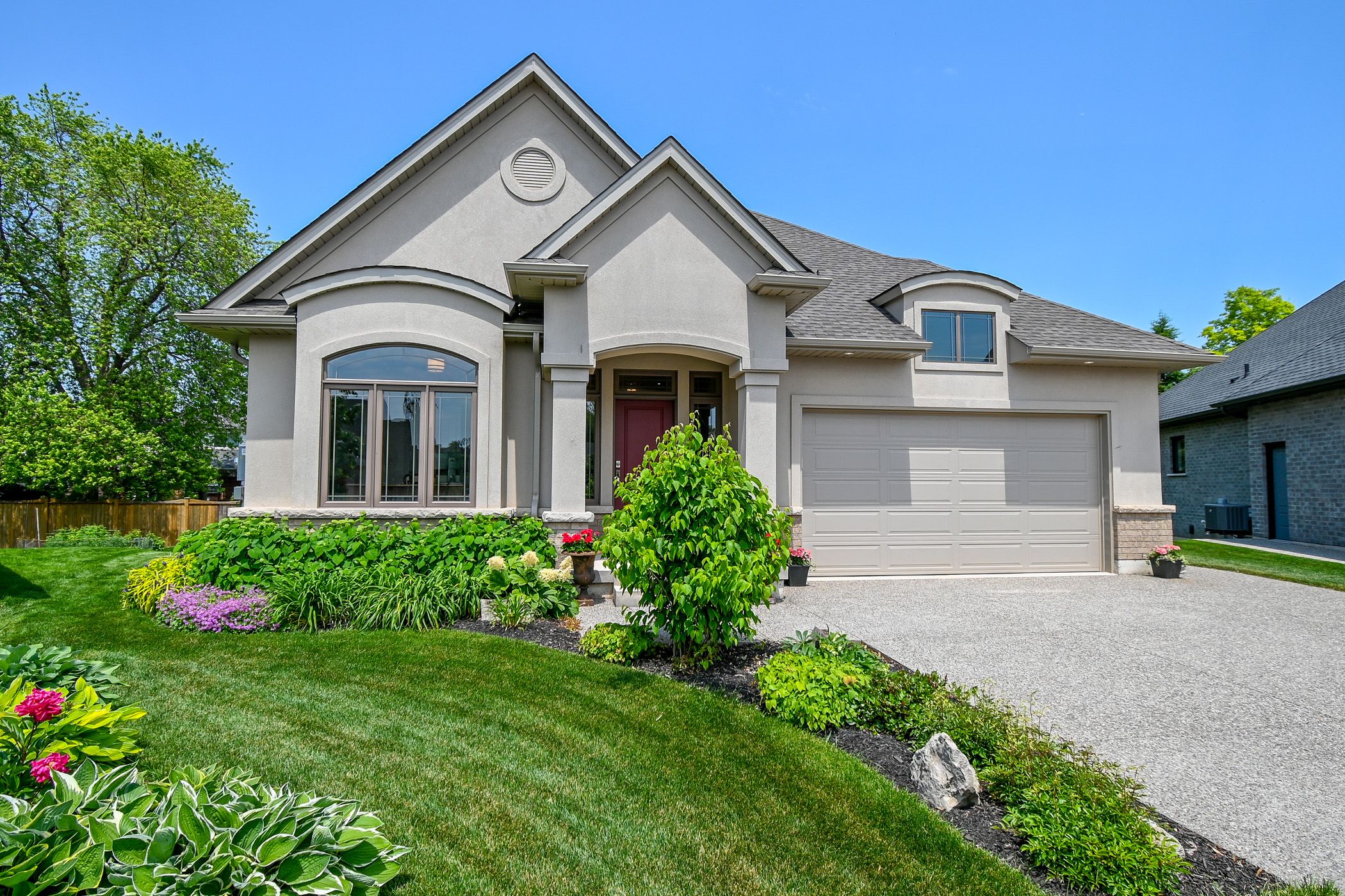 Fonthill location on a private cul-de-sac. Quality built by lucchetta homes, a spacious pie shape lot. Open concept plan 2-bedroom, 2-bathroom bungalow, elegance, with a splash of modern charm. Spacious foyer with a front den/bedroom with double doors, white oak stairs with glass railings. Modern gourmet kitchen design including glass doors, under cabinet led lighting, kitchen pantry. Living room with 8' high sliding doors, extra tall windows, upgraded fireplace. Primary bedroom with ensuite bathroom with a floating modern style cabinet, two sinks, oversize window. Many upgrades throughout including upgraded lighting, main bathtub/ tiled shower. All quartz counters including tiled backsplashes in the kitchen and laundry. Laundry room with custom laundry cabinets. Beautiful tiled and engineered wood flooring throughout. Basement features cold cellar, 5' wide concrete stairs walk-up from the basement with a wide 42" door. Upgraded 38" x 69 1/2" large basement windows for future bedroom or rec room. Double car garage with man door entrance, exposed aggregate double concrete driveway. 17' 3" x 10' 8" pressure treated deck with stairs to the back yard. Walking distance to the steve bauer trail, minutes to town, schools, close to parks and easy access to highway 20 and the qew. 30 minutes to st. Catharines or niagara falls, enjoy our best golf courses and niagara's finest wineries. Flexible closing date available! Come and see for yourself!