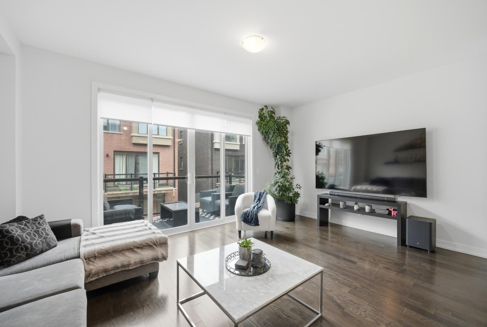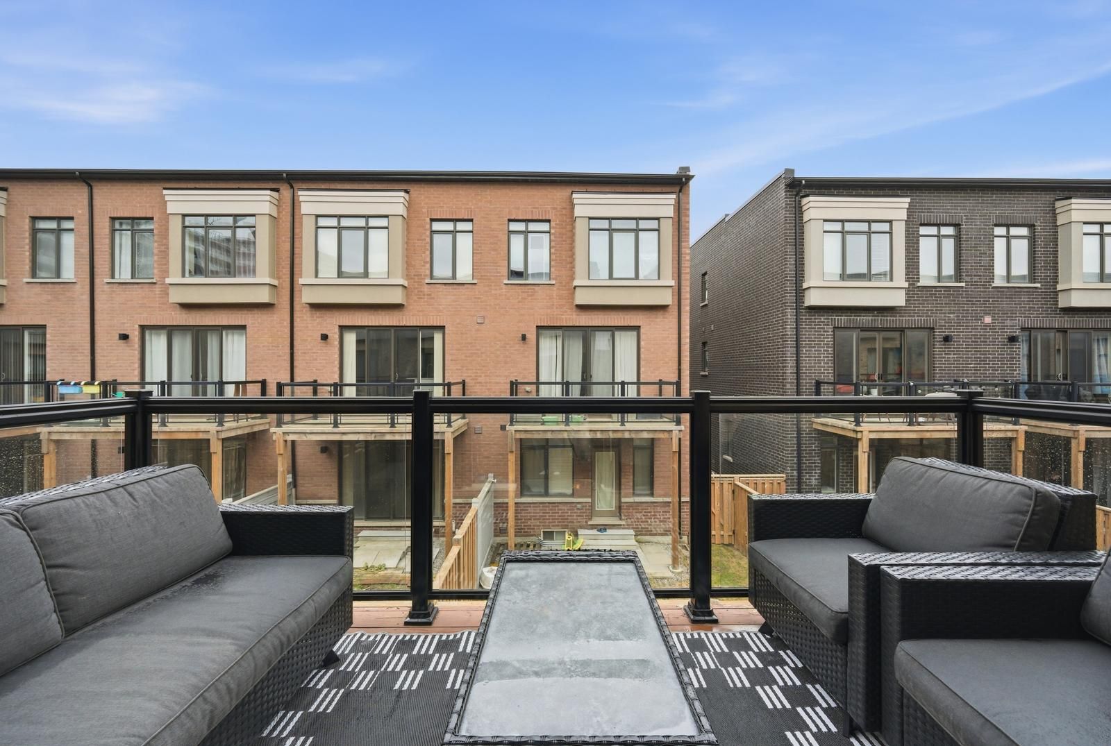 Rarely offered luxurious showstopper end-unit townhouse (feels like a semi) with no monthly fees (freehold), one of the largest models offering approximately 2,378 sq ft (as per floor plan) plus an unfinished basement, ideally situated on a quiet, family-friendly street facing a beautiful park with unobstructed views. Proudly owned by the original owner, this home reflects true pride of ownership and has been meticulously maintained throughout. Featuring a modern exterior with a sleek glass garage door and loaded with upgrades, this move-in ready home boasts high smooth ceilings, 4 spacious bedrooms and 4 bathrooms, including a convenient ground-level bedroom with a 3-piece bath, perfect for guests or extended family. The main floor also includes a private office with pocket doors. Enjoy a modern open-concept layout with extensive tasteful upgrades, including a large center island, pantry cabinetry, and stainless steel appliances. The functional floor plan is complemented by upgraded hardwood floors throughout, generously sized bedrooms, convenient upper floor laundry, and a luxurious primary suite featuring a large walk-in closet with custom organizers, a glass shower, and a freestanding soaker tub. Additional features include a sprinkler system, upgraded garage floors, and ample outdoor space with multiple balconies and a walkout to a backyard deck, perfect for relaxing & entertaining. Located in an excellent central area in the heart of maple close to all amenities, just minutes from maple go station, walmart, shops, parks, and the library, this is truly a must-see home.