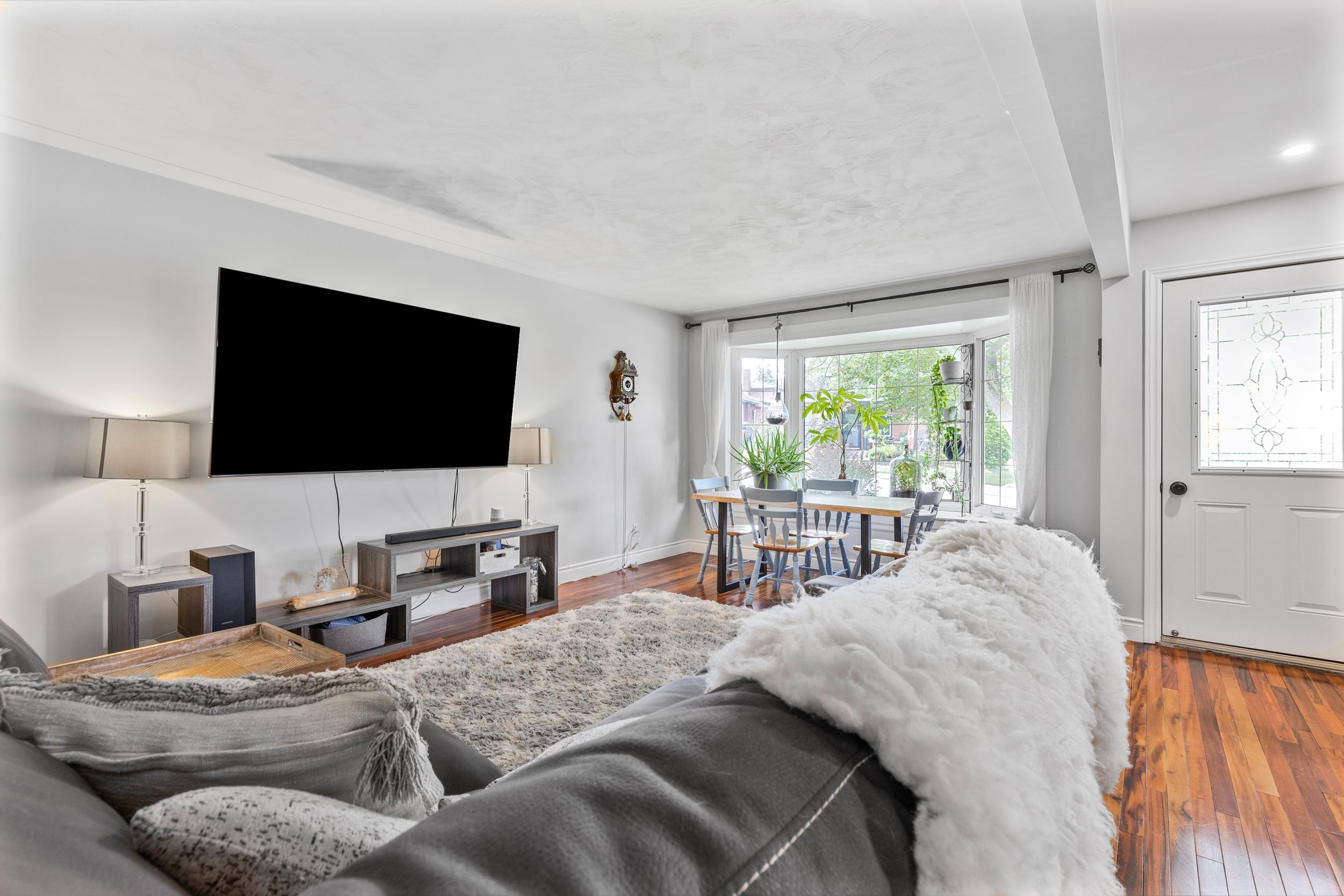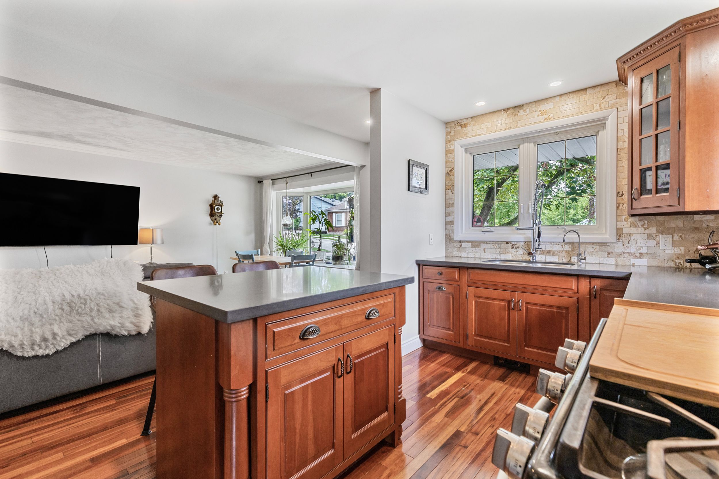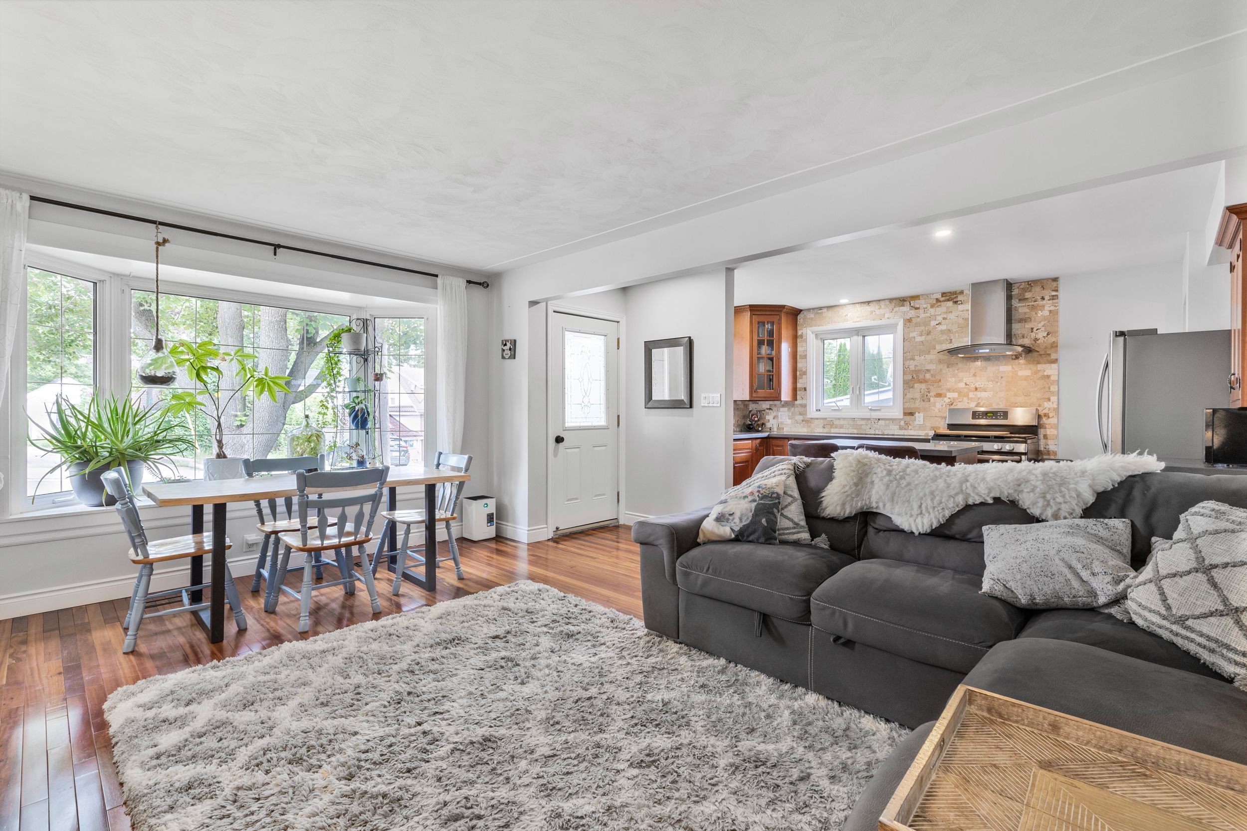 • Open-concept main floor featuring a sunlit bay window and updated kitchen.