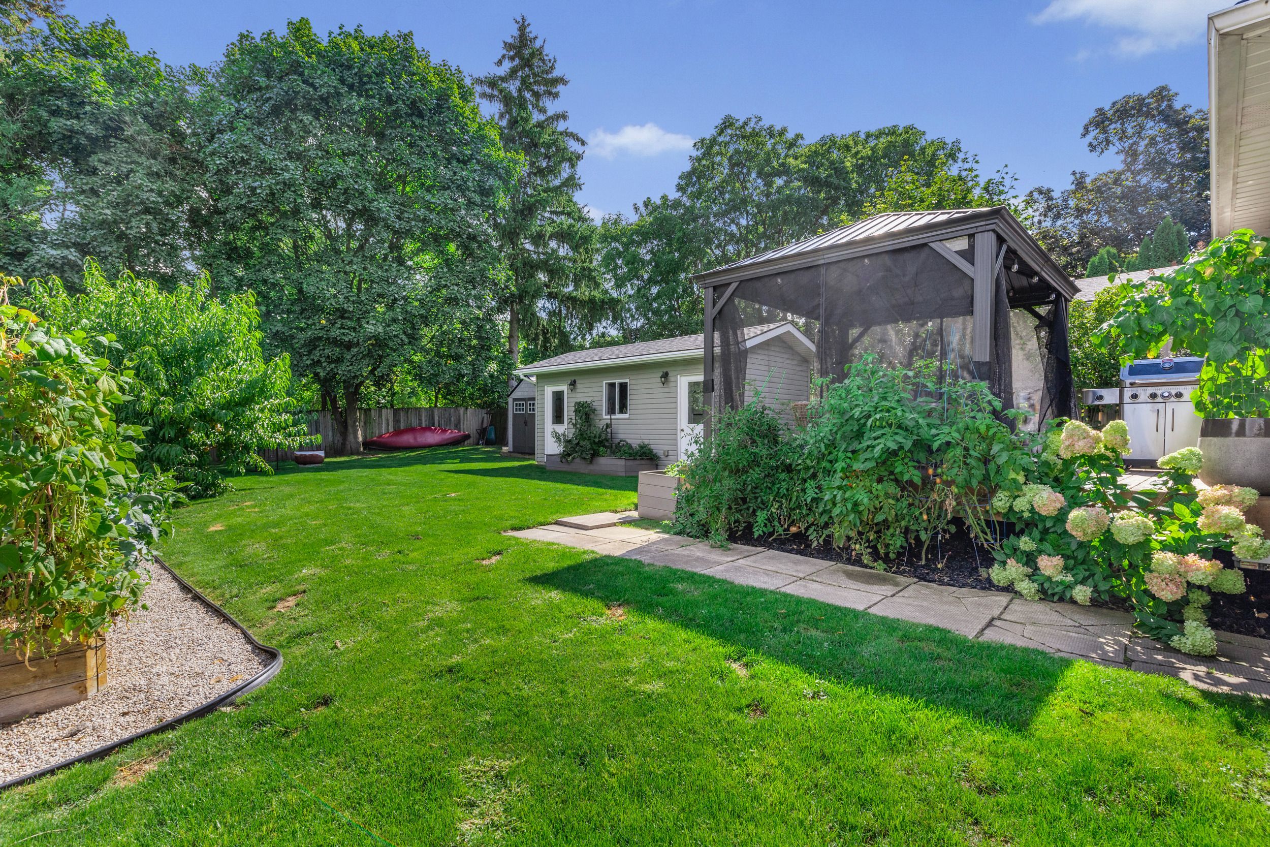 This isn't just a home, it's a lifestyle. Tucked away in one of hespeler's most sought-after pockets, this super-cute bungalow makes a big impression with smart use of space and an outdoor setup that's every gardener's dream. Inside, you'll love the open-concept main floor with a sunlit bay window, updated kitchen, and a perfect blend of classic comfort and modern updates. Two bedrooms and a beautifully updated bathroom with heated floors. Downstairs, the fully finished basement adds room to spread out-with rec room, loads of storage, laundry, and a second bathroom (also with heated floors). Step outside and prepare to fall in love: a newer deck perfect for entertaining, greenhouse, raised garden beds, and a heated, powered shed that's ready for your hobbies or tools. Imagine spending your summer with in this yard? And the location? Unbeatable. Walk to downtown hespeler for shopping, coffee, dinner, or drinks. Stroll along the river or hit the nearby trails with your four-legged friend. It's all right here.