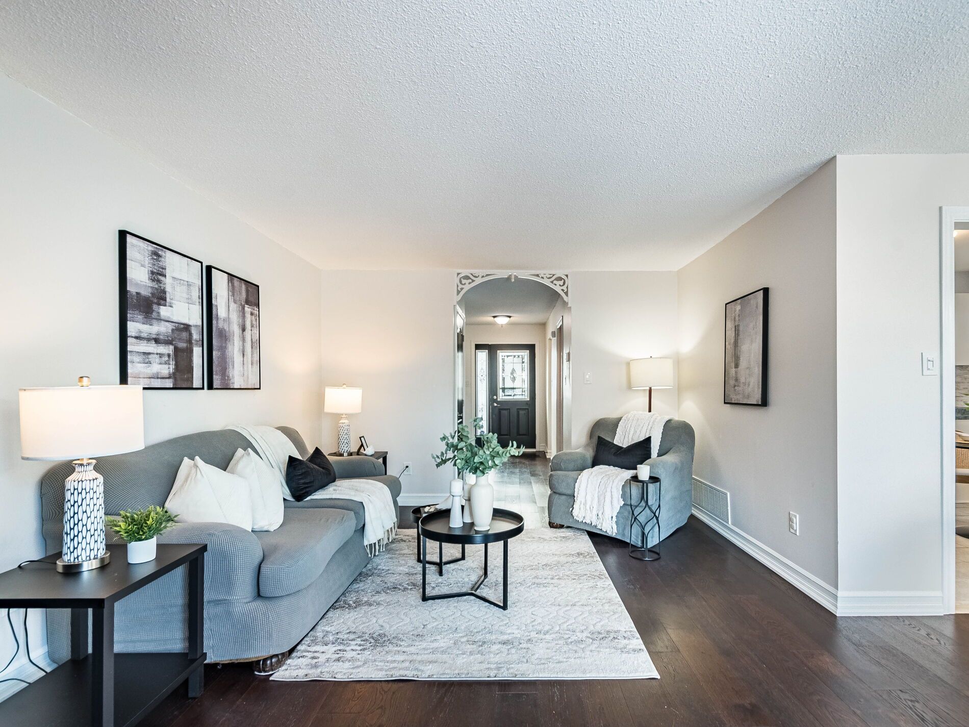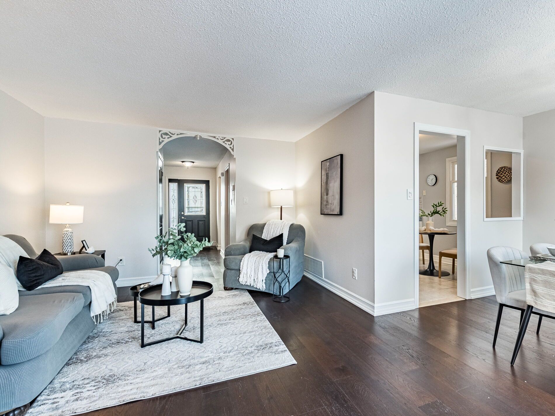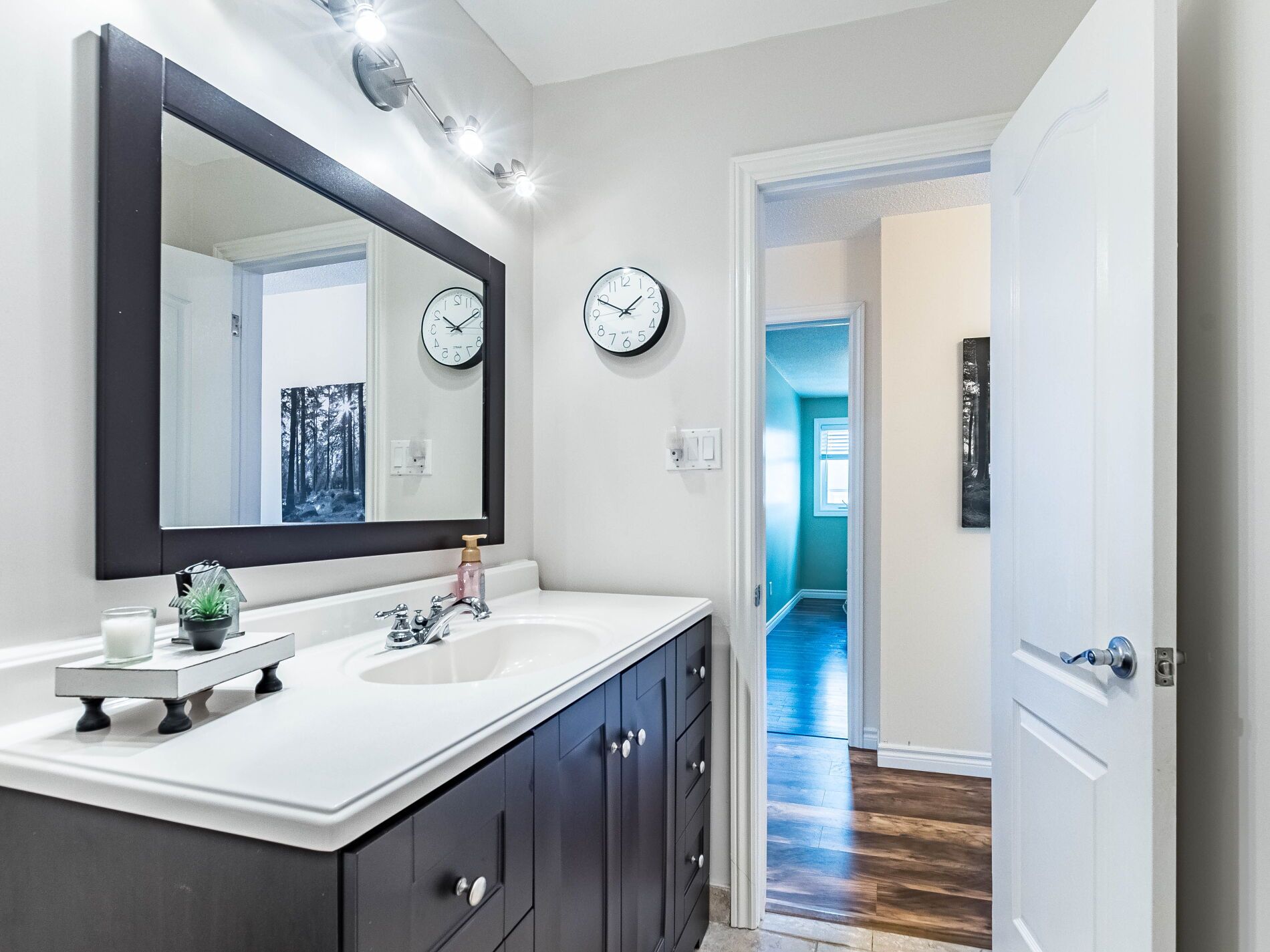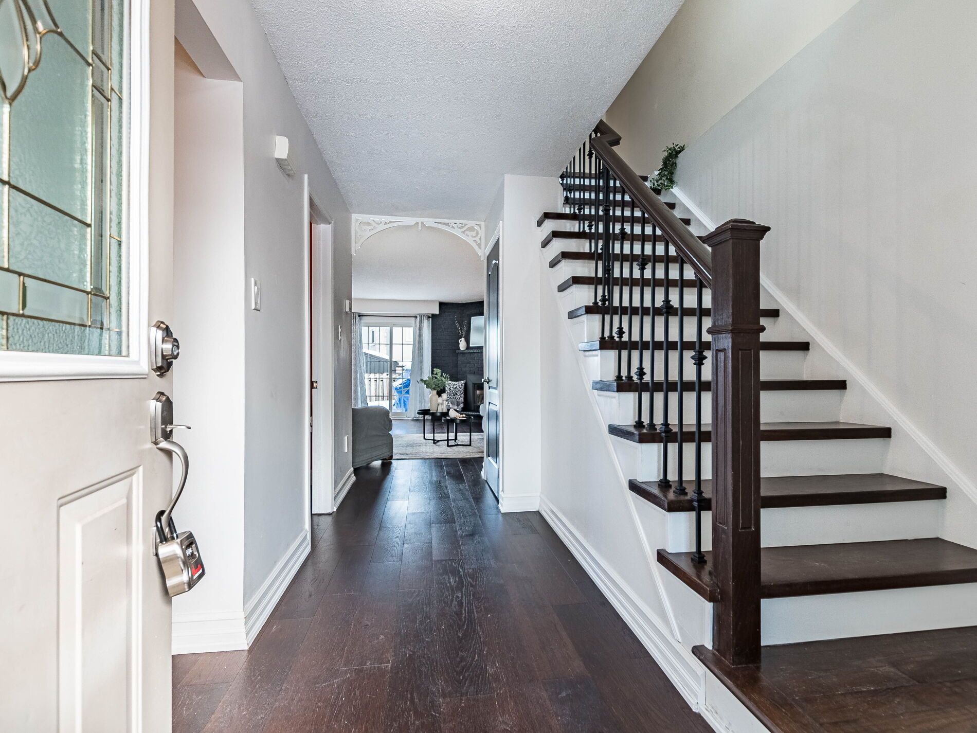 Welcome to 11 foxacre row, nestled in one of brampton's most sought-after, family-friendly communities. This beautifully maintained 3-bedroom detached home sits on a quiet street, offering the perfect blend of comfort, space, and convenience for growing families. The main floor showcases a bright open-concept living and dining area featuring elegant engineered hardwood floors and a cozy gas fireplace - perfect for chilly winter evenings. The spacious kitchen offers ample cabinetry, additional storage, and a generous eat-in area ideal for everyday family meals. Step outside to a large deck, perfect for relaxing, summer bbqs, and entertaining guests. A convenient 2-piece powder room completes the main level. Upstairs, you'll find three generously sized bedrooms with large closets and a full 4-piece bathroom, providing comfortable, functional family living space. The main floor laundry adds everyday convenience and practicality, making household chores easier and more efficient. The finished basement adds valuable extra living space with an open-concept recreation area and an additional room ideal for a home office, gym, or guest suite. The extended driveway accommodates up to four vehicles, plus a 1. 5-car garage - and with no sidewalk to shovel, it's a rare and practical bonus. Ideally located close to schools, parks, shopping, transit, highways, and recreational amenities, this move-in-ready home in a prime brampton neighbourhood is a fantastic opportunity. A true must-see.