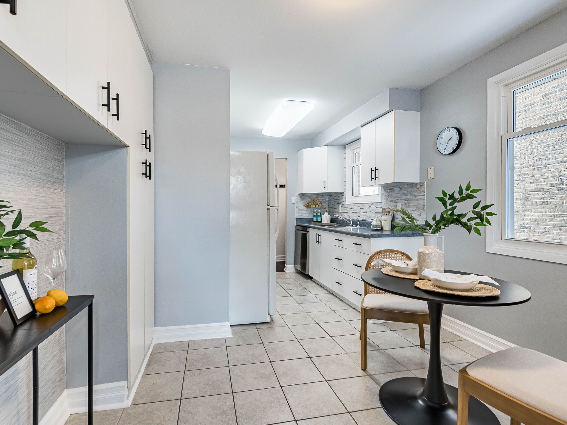 • Spacious kitchen with ample cabinetry and eat-in area for family meals.