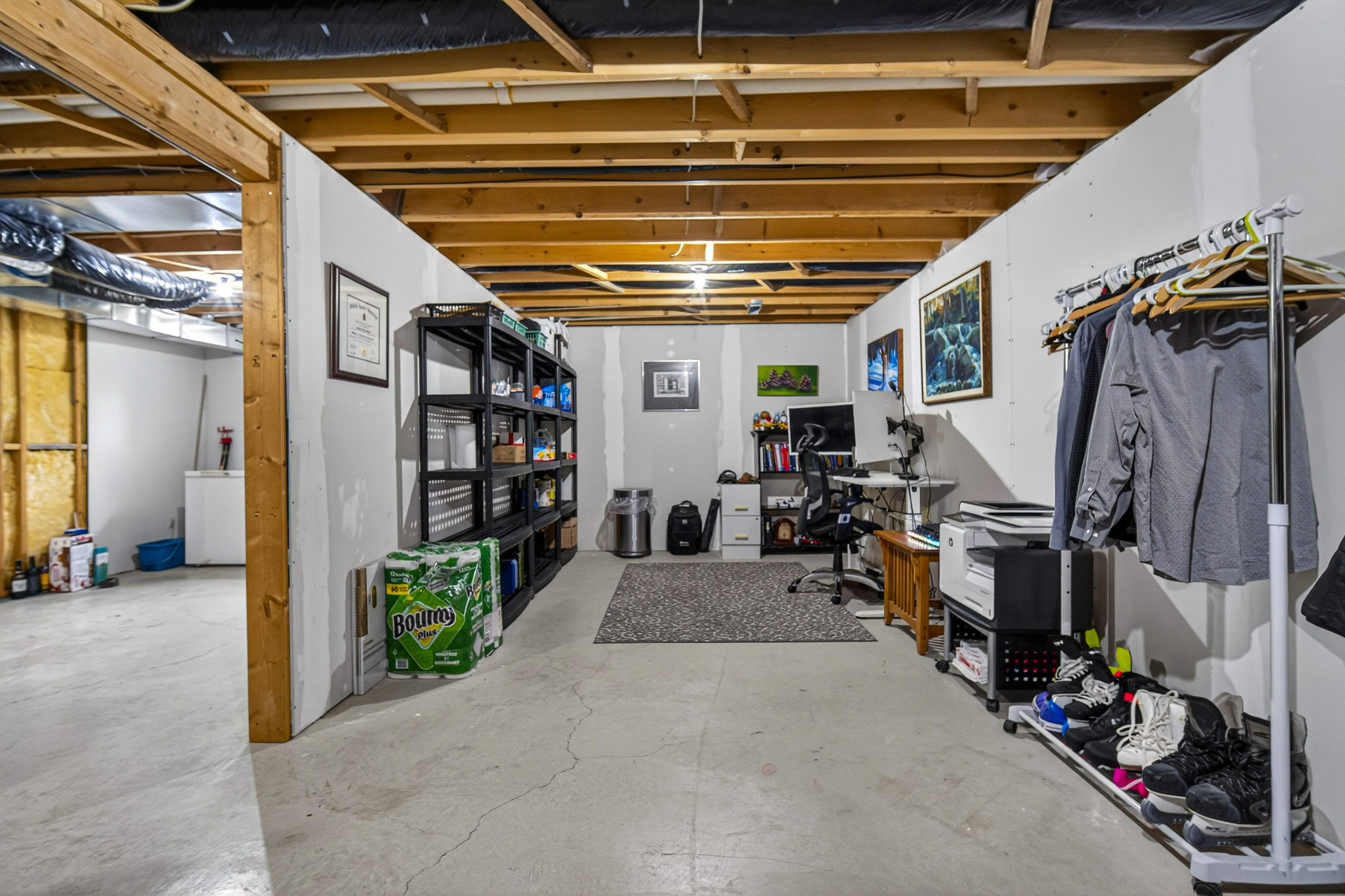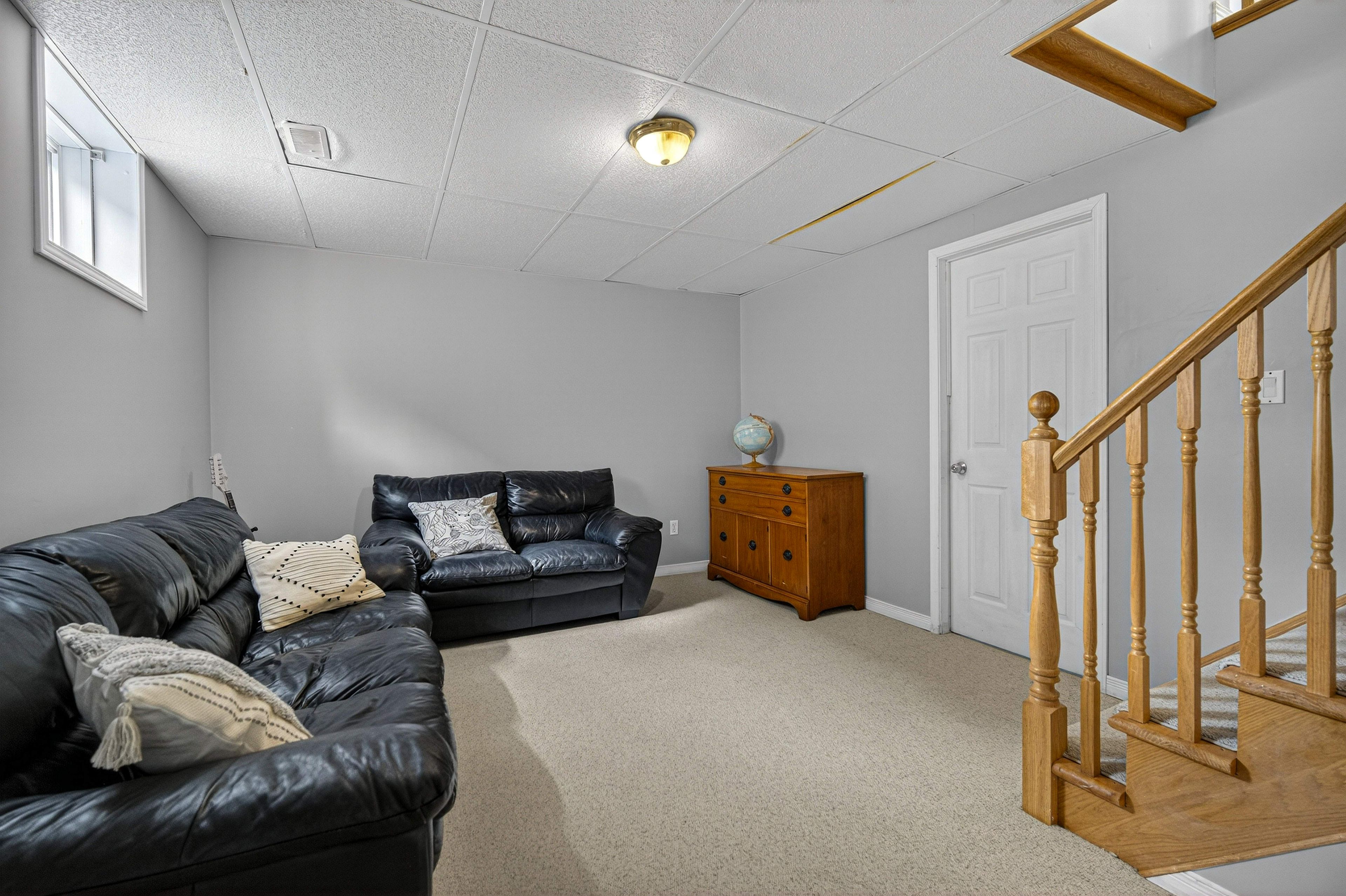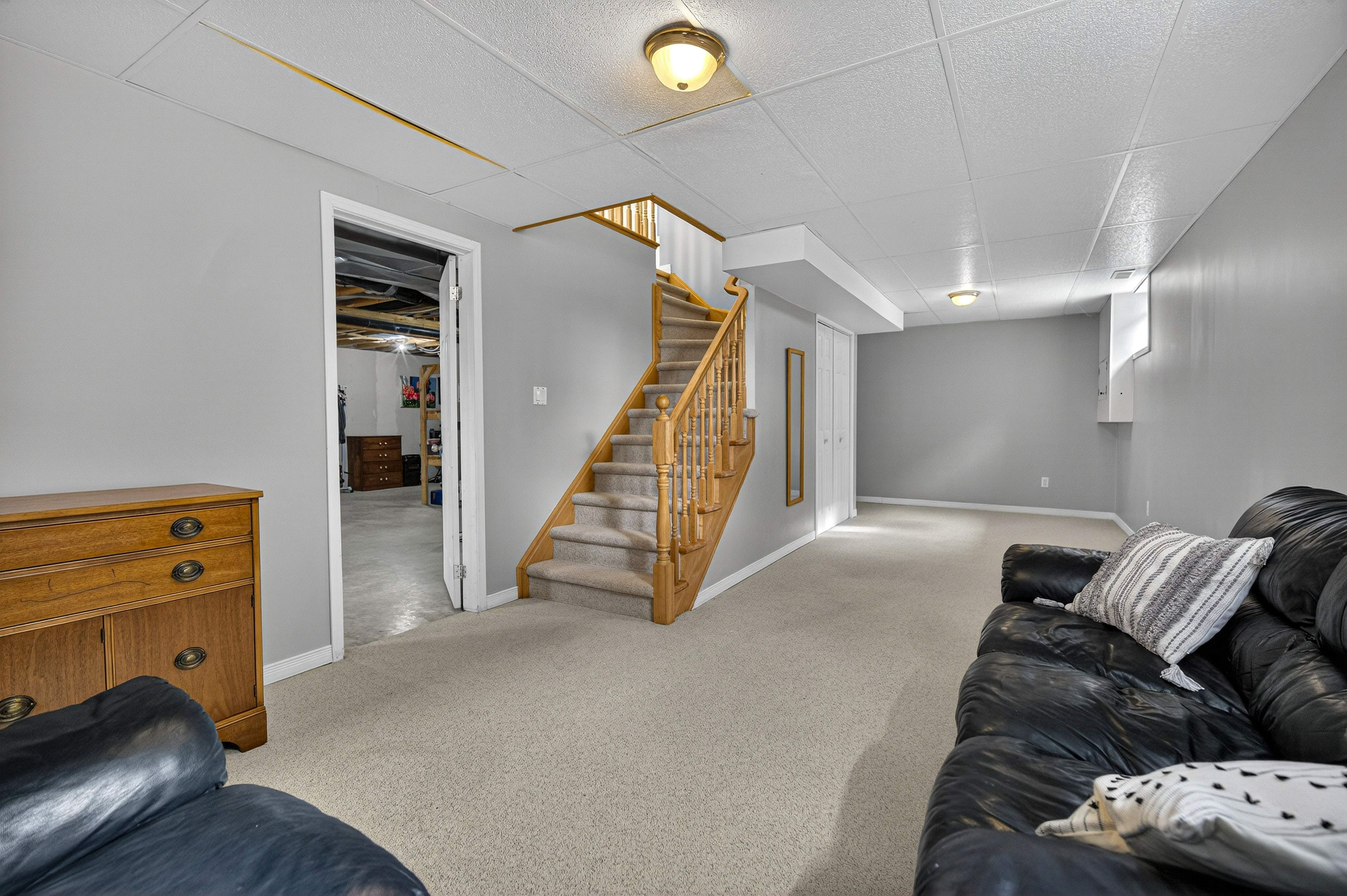 • Spacious finished family room with potential for additional bathroom and customization.