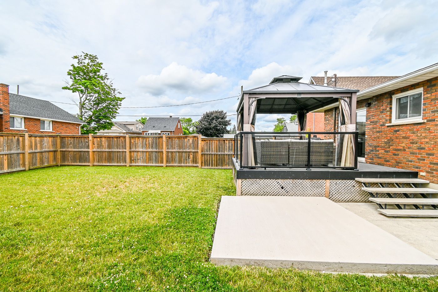 Two-story, renovated home in the heart of thorold. This 3+2 bed, 2-bath property features a main-floor primary bedroom, a bright open-concept kitchen, and a finished basement with two additional bedrooms and a separate side entrance-ideal for an in-law suite or rental income. Walk to schools, parks, and shopping; minutes to brock university and pen centre. Recent updates include furnace, water heater, and a/c (6 years), plus windows and roof (8 years). Private patio off the kitchen with gazebo, fully fenced yard, hot tub pad, and a double-wide driveway with a large garage. Zoned r3 with 1,483 sq ft above grade plus 998 sq ft finished basement. Move-in ready and versatile for families, first-time buyers, or investors.