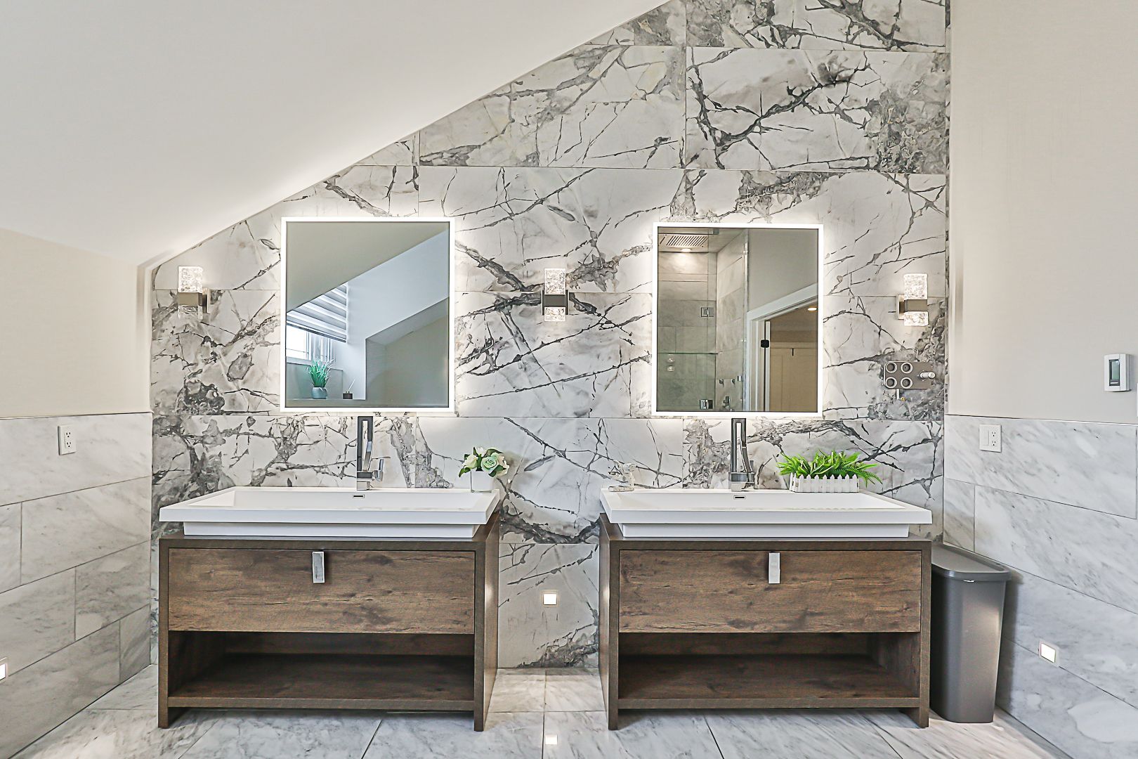 • Luxurious primary ensuite featuring marble finishes and heated floors.