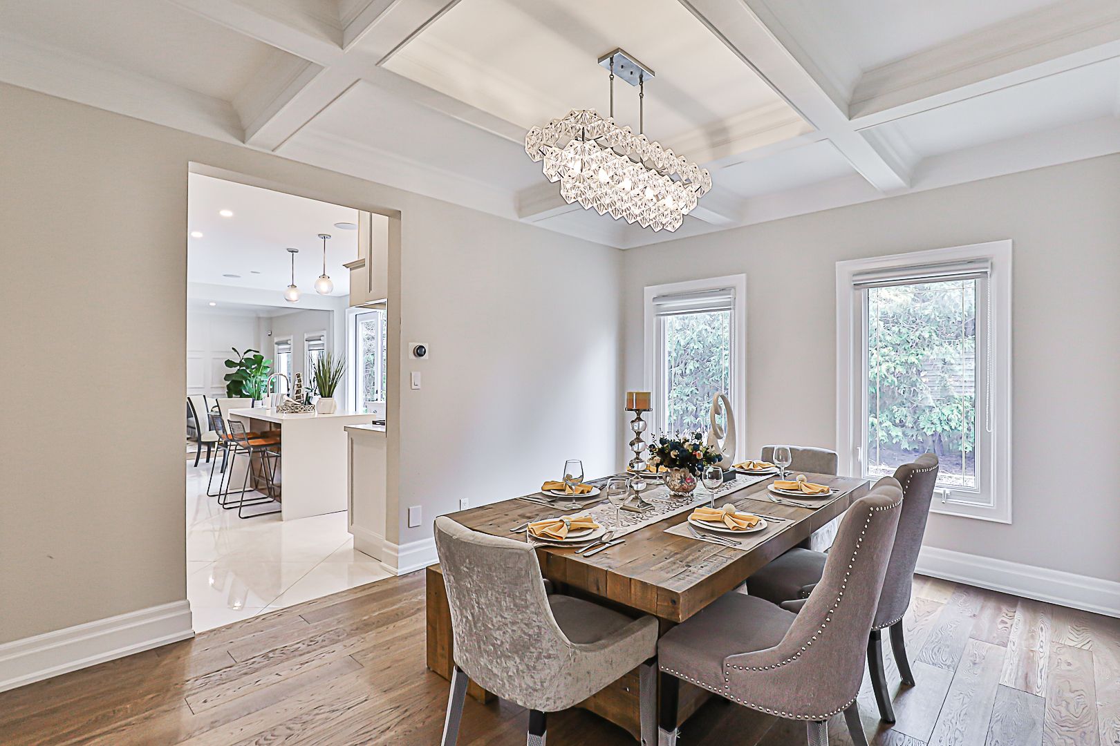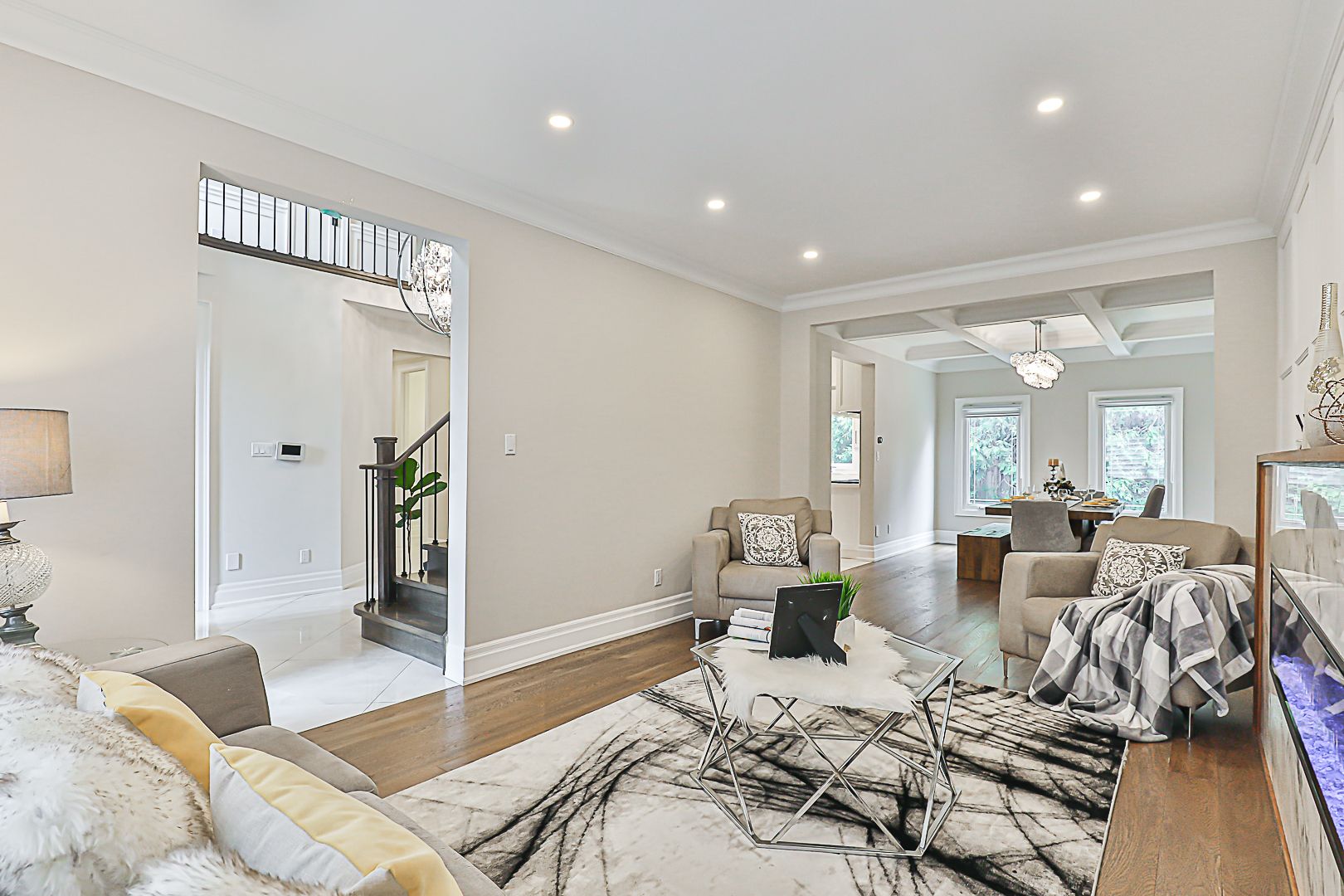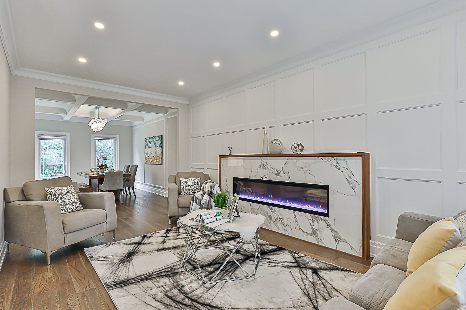 High-end renovated home! Stunning modern chef's kitchen with miele appliances, quartz countertops & premium finishes. Features hardwood floors, coffered ceilings, crown moulding, oak staircase w/ iron pickets & elegant wainscoting. Smooth 9 feet ceilings, solid doors, custom entry, oversized trim & led pot lights throughout. Luxurious primary ensuite with marble finishes, 10-ft glass shower & heated floors. Includes custom wine rack & private sauna. A true turnkey luxury home!