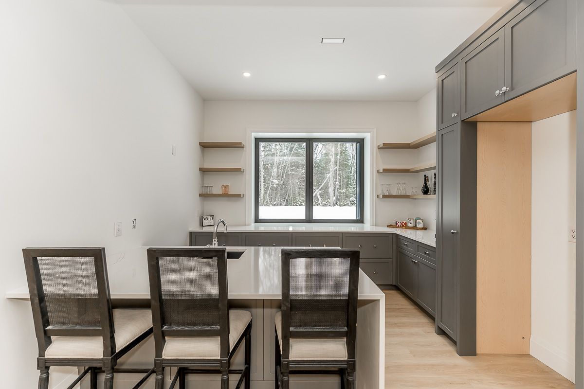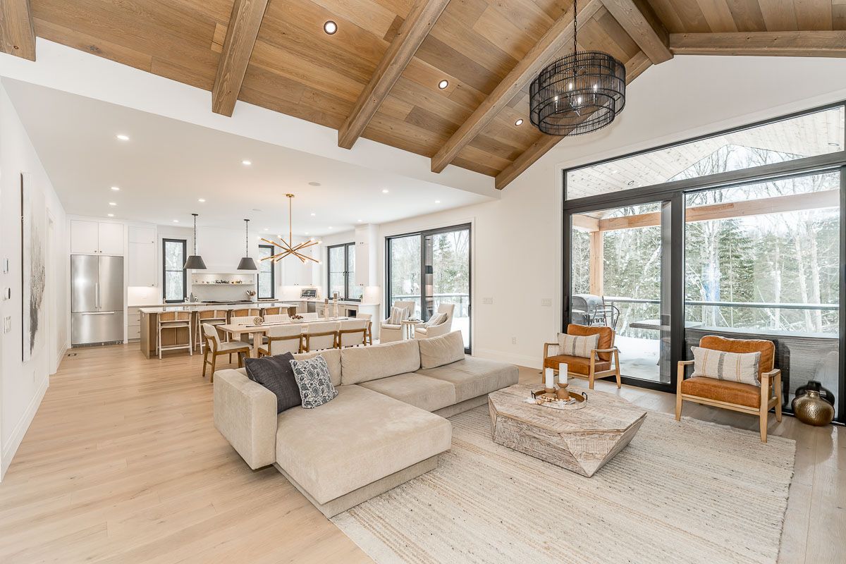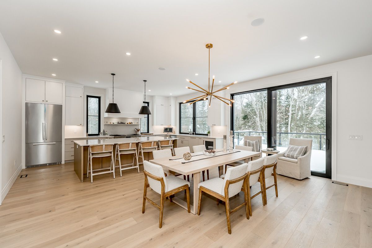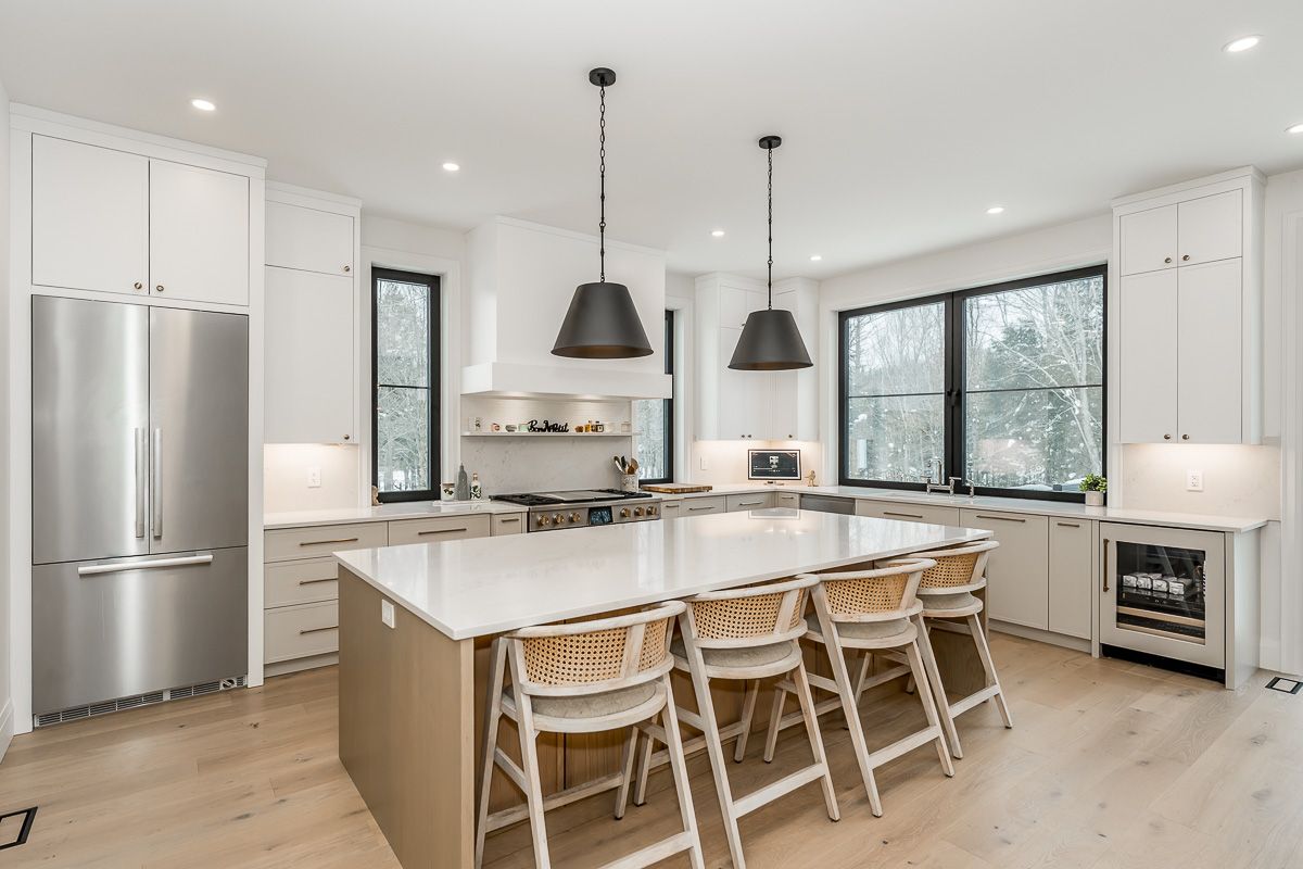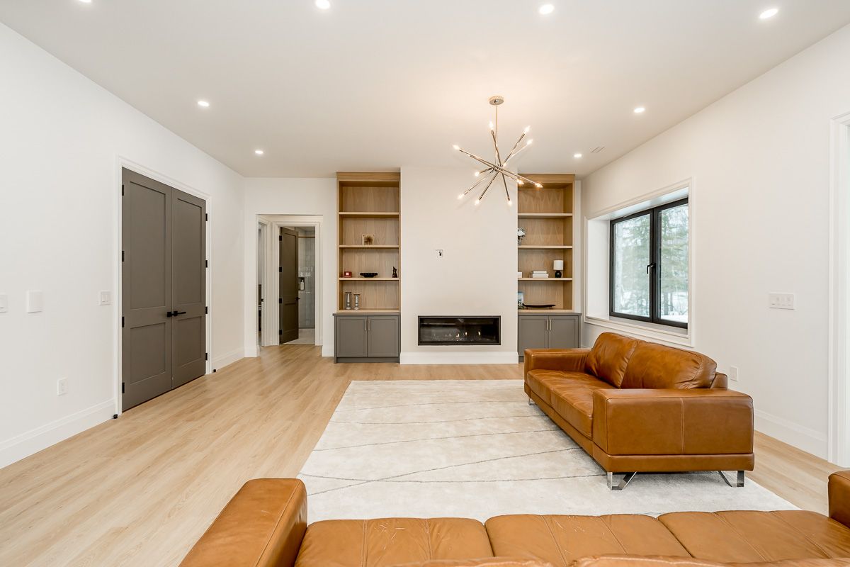 Set against the fairways of the prestigious deerhurst golf course, this newly built residence is a striking expression of modern luxury and thoughtfully functional living. Offering 5,000 + sqft, the home features 5 spacious bedrooms and 4. 5 spa-inspired baths. From the moment you step through the grand front door, you are greeted by the great room with vaulted wood ceilings, custom stone fireplace, seamlessly opening into the dining area and kitchen. Expansive 9-ft triple-glazed aluminum sliding doors create seamless indoor-outdoor flow. The kitchen is a true statement, outfitted with monogram, miele, and fisher & paykel appliances; it showcases sleek custom cabinetry, quartz surfaces, a generous island, and a walk in pantry. A striking custom glass wine display adds a sophisticated focal point, while the engineered white oak flooring, 10-ft ceilings, and integrated built-in speakers elevate the space throughout. The primary suite serves as a serene retreat, complete with ensuite showcasing a steam shower, double vanity, kohler fixtures, and a custom walk-in closet. Step directly onto a private deck from the bedroom, creating an elegant indoor-outdoor sanctuary. With 10-ft ceilings the basement is a luxuriously appointed space, offering 2 bedrooms and 2 bathrooms. A family room provides a relaxing setting while the wet bar allows ease of entertaining. The dedicated theatre room is great for movie nights. Walkout access to the backyard extends living outdoors. This exceptional home blends architectural sophistication with modern comfort. Complete with lp siding, trex decking, a triple garage with in-floor heating, and thoughtful details such as a mudroom with dog wash station. Every detail of this home reflects refined craftsmanship and sophisticated design, creating a truly exceptional residence on the deerhurst golf course.