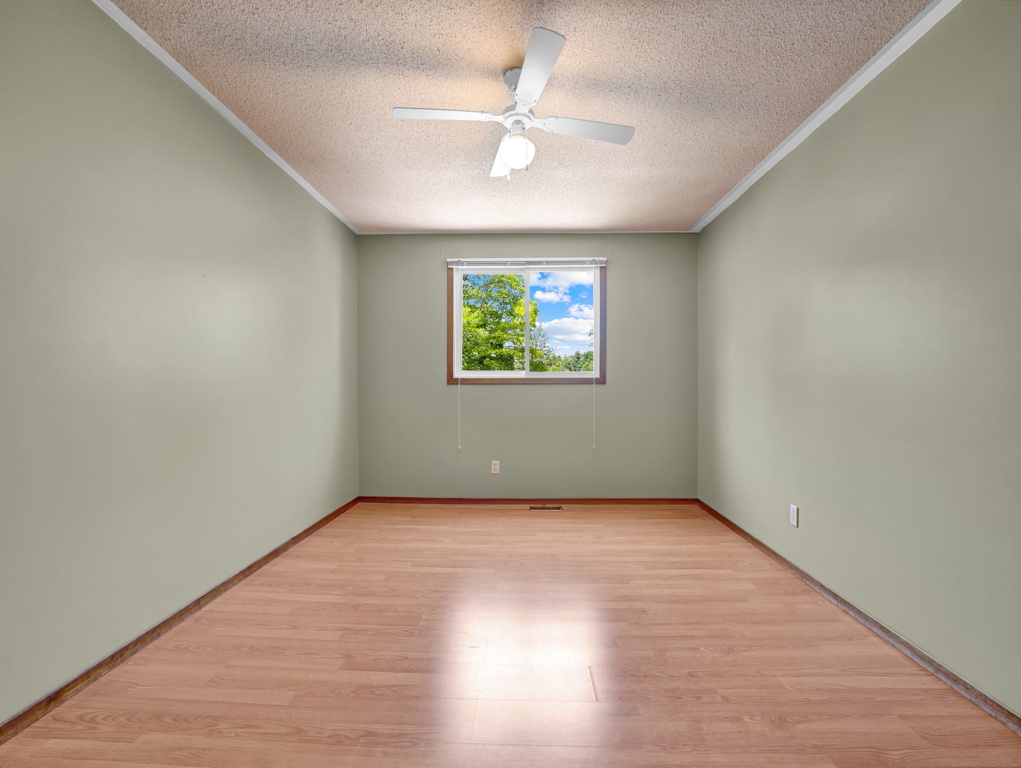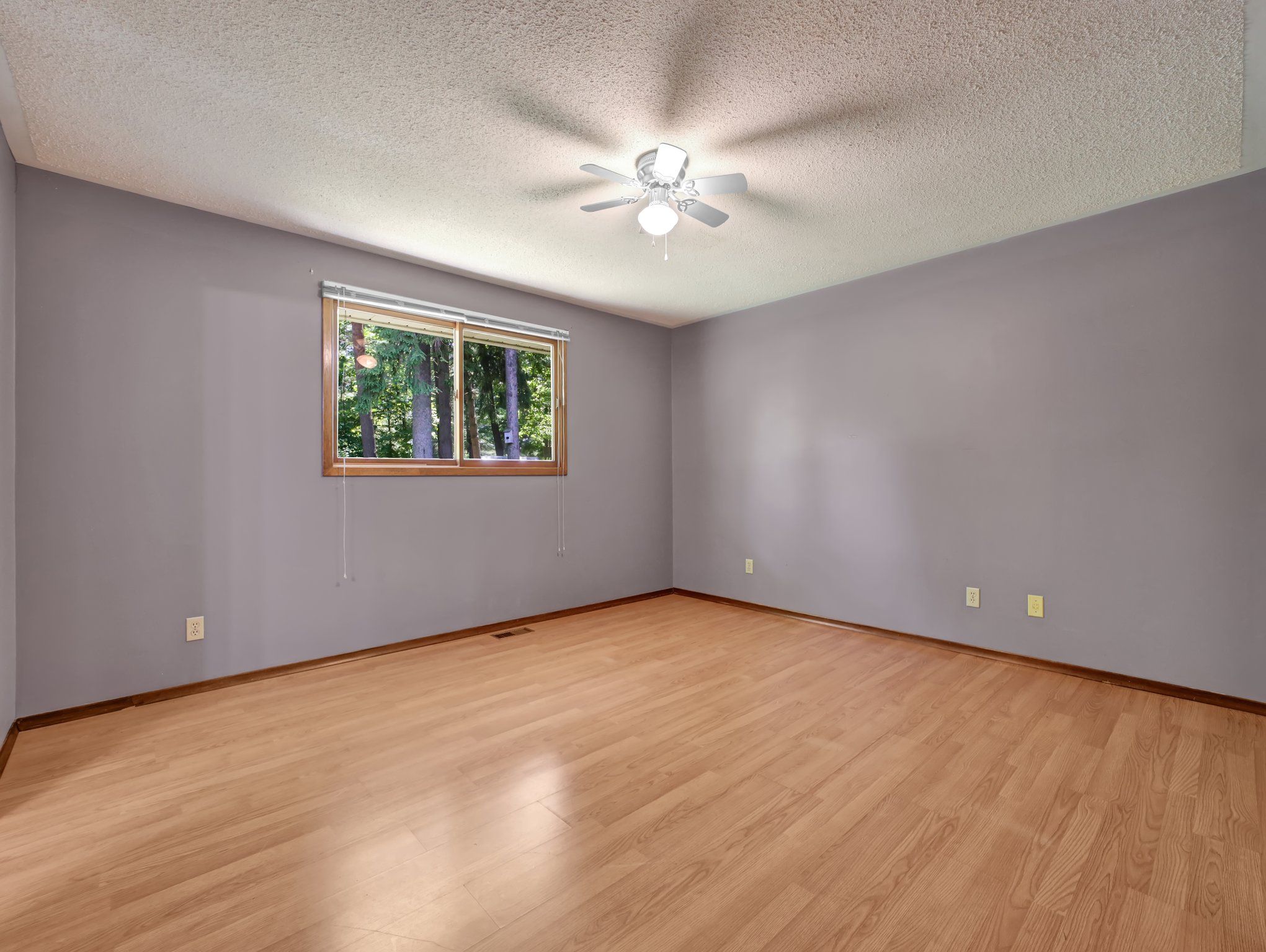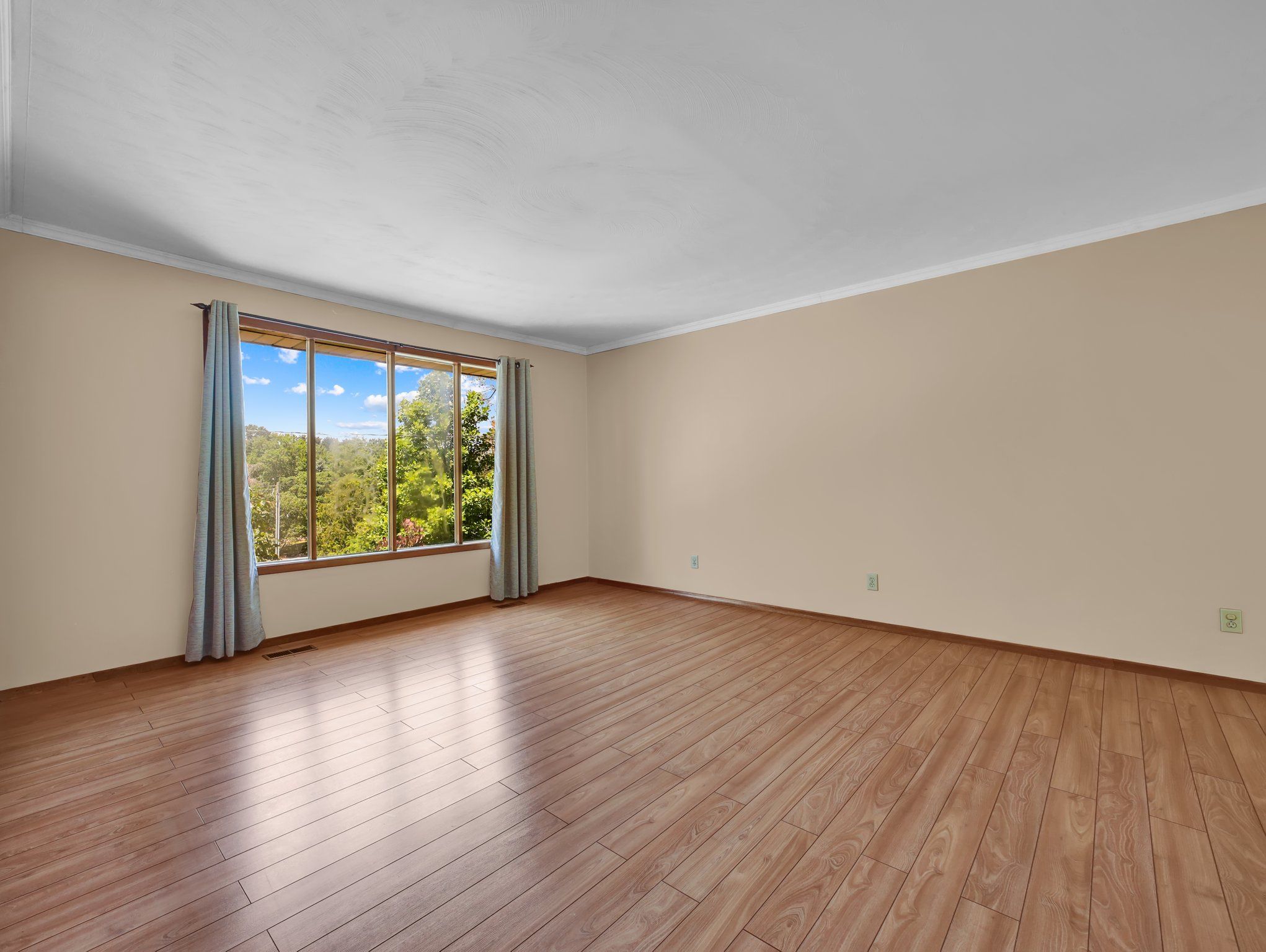 • Spacious pie-shaped lot with mature trees for added privacy.
