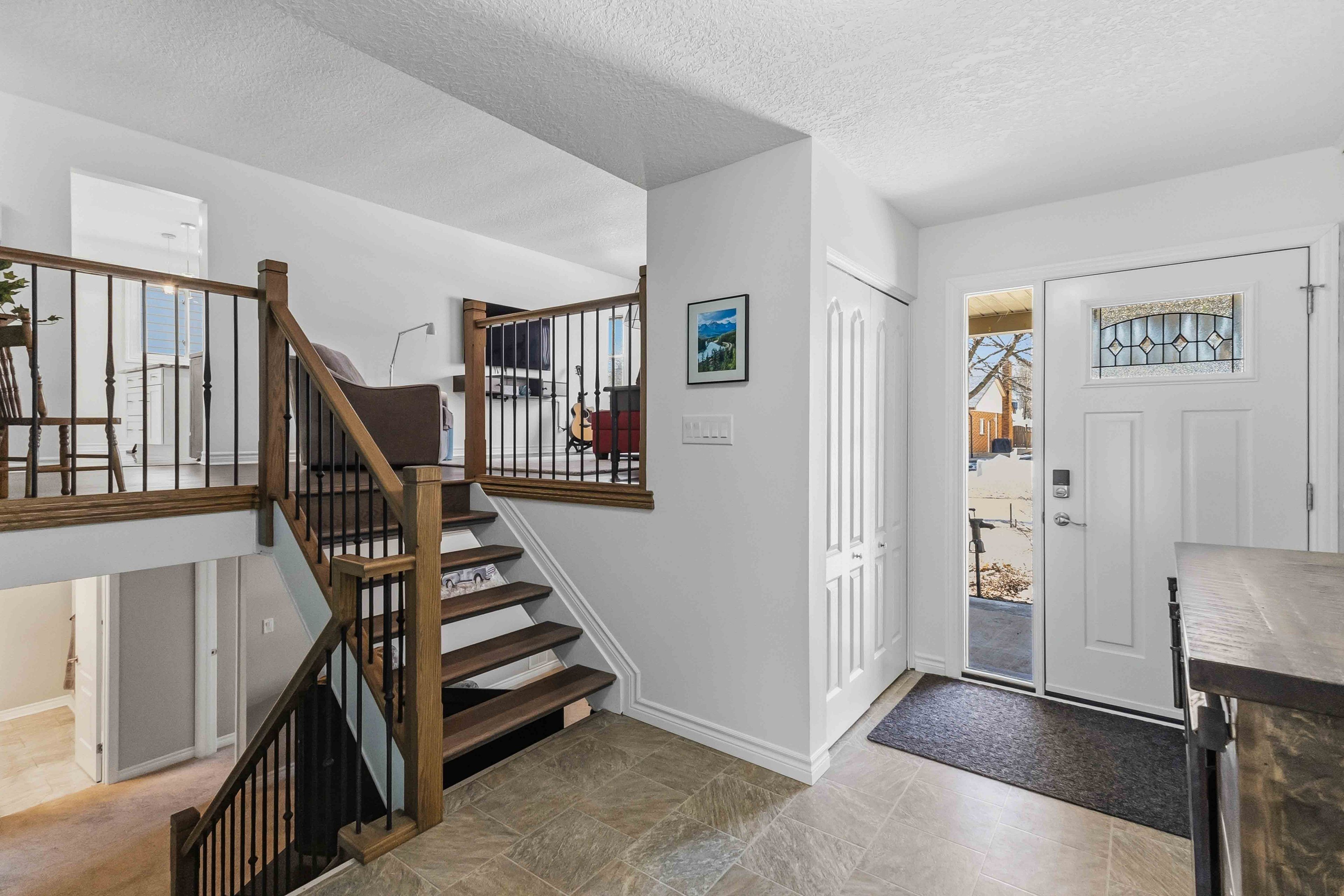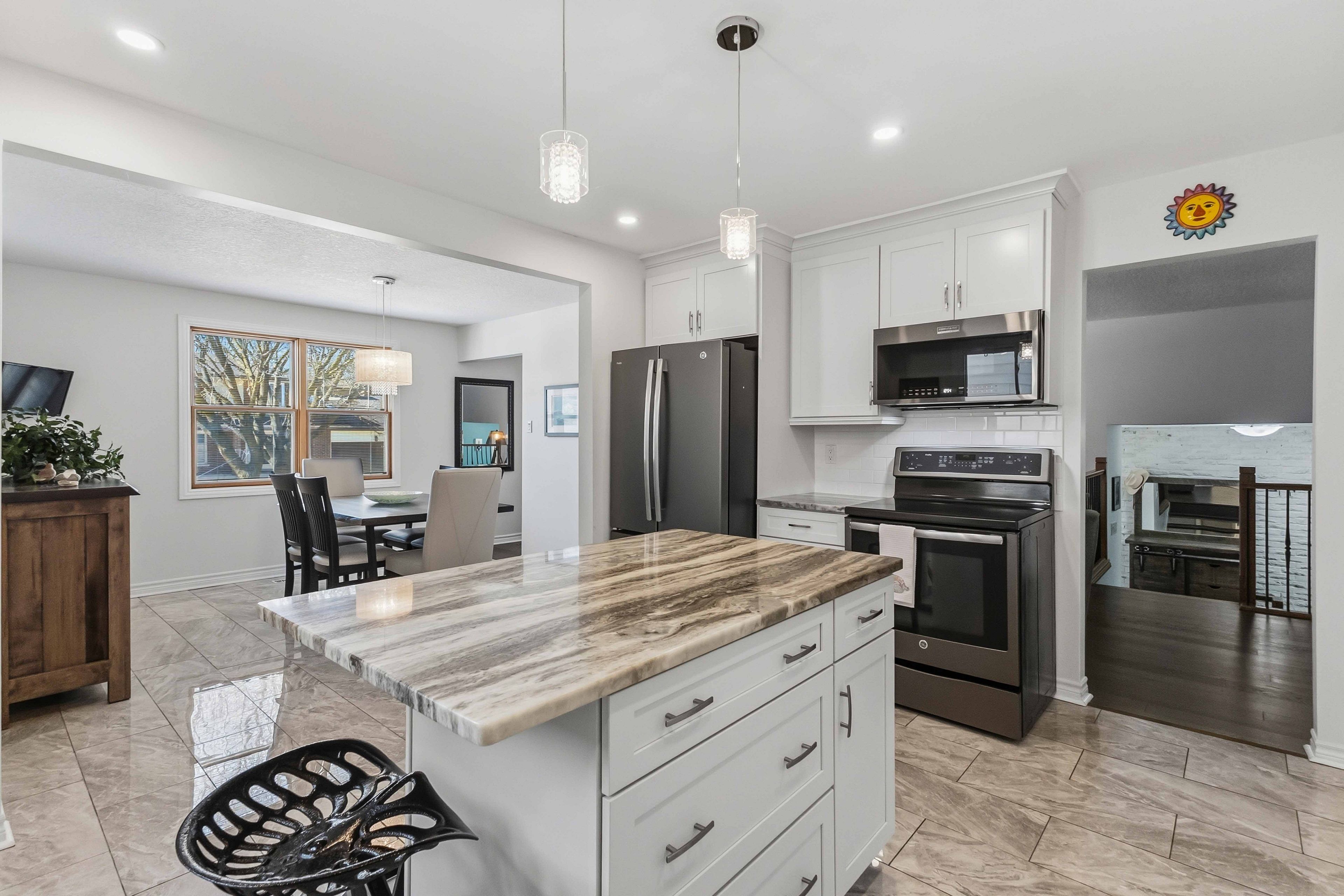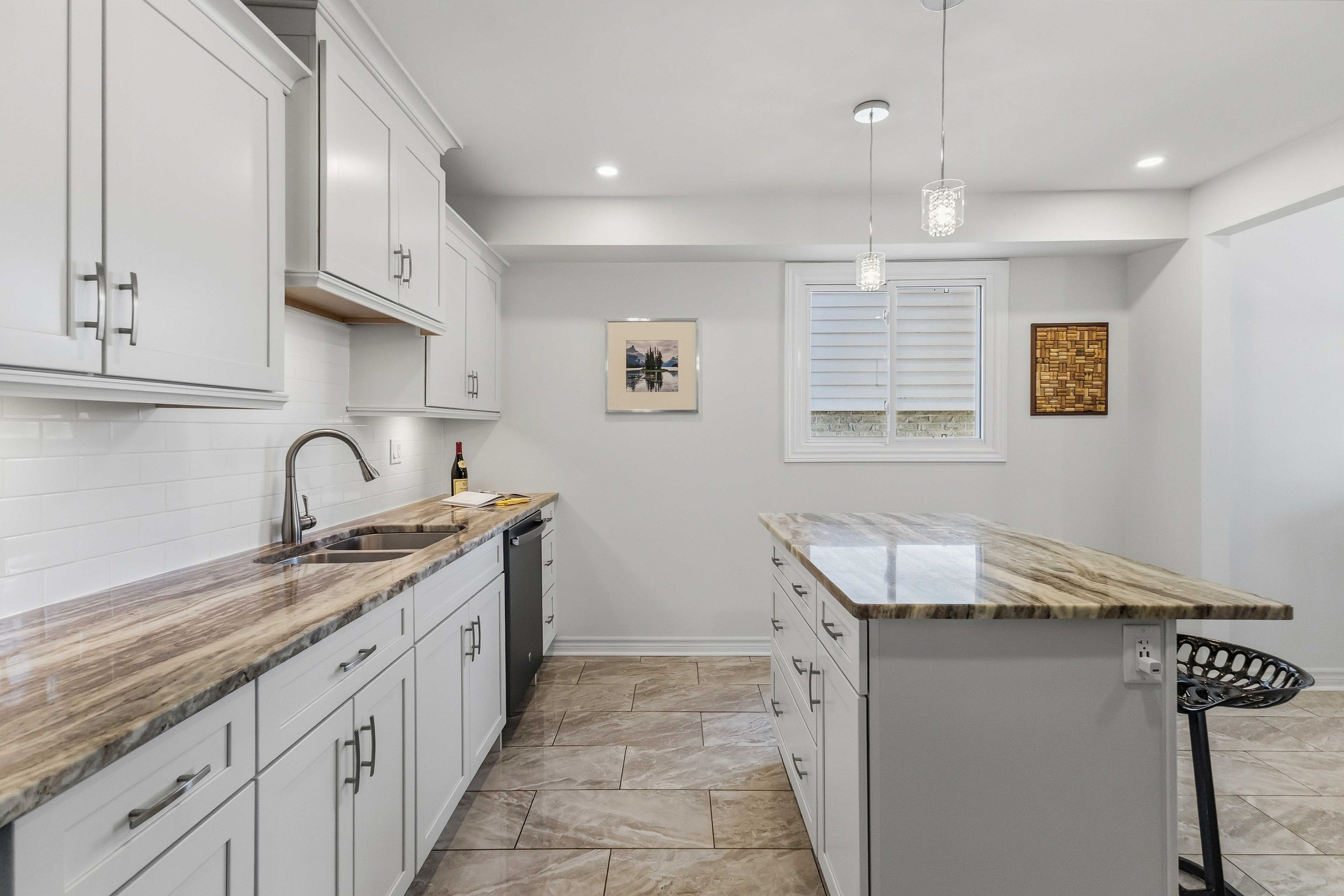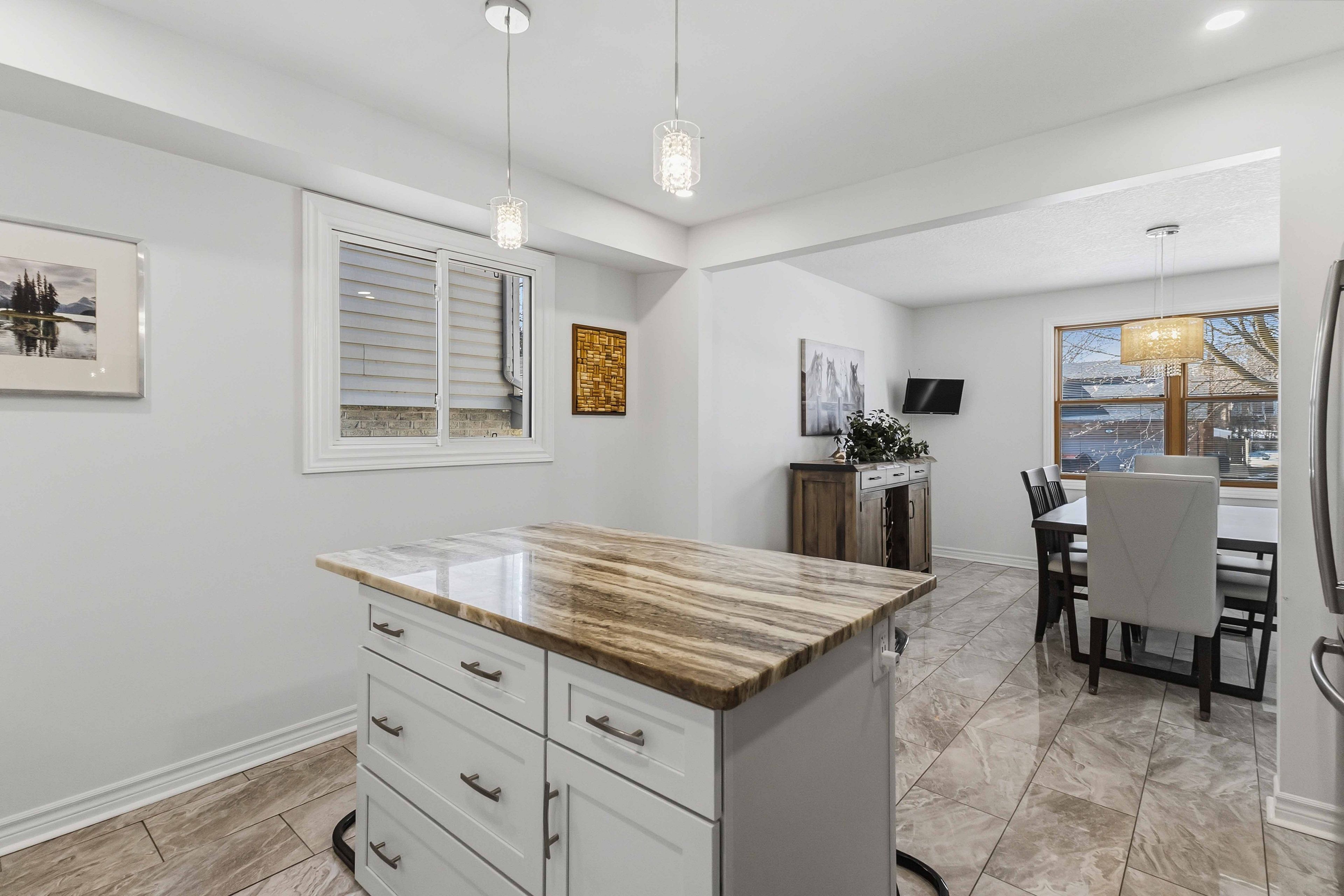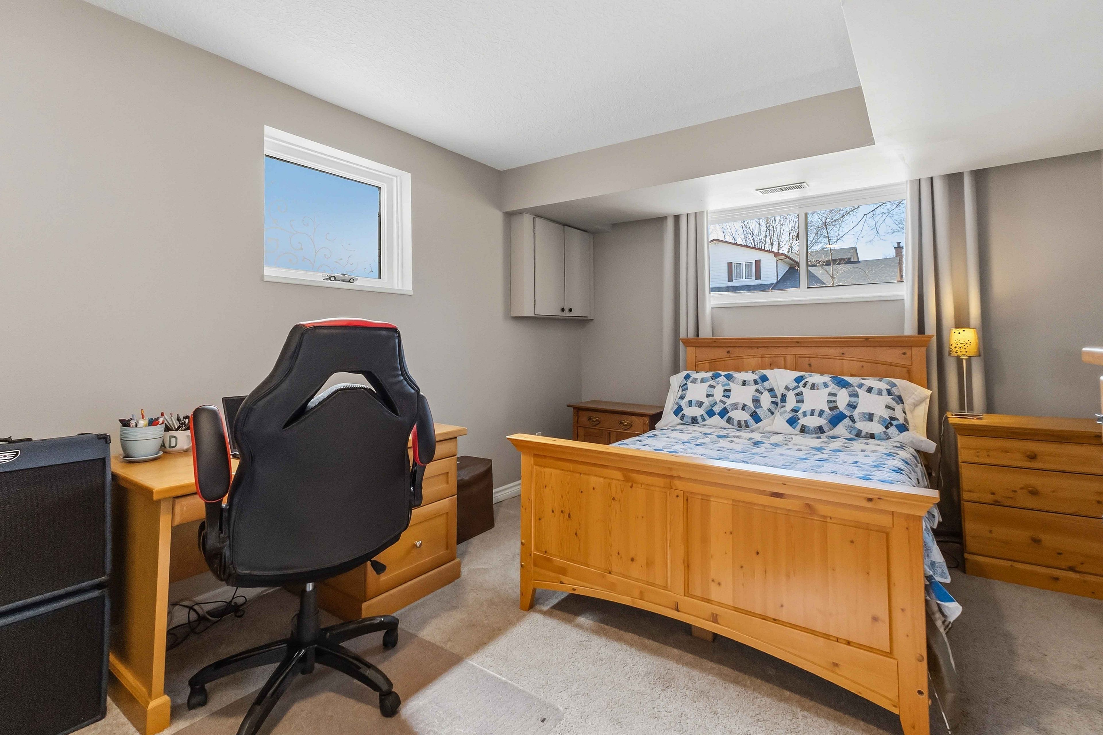 Nestled on a quiet, mature crescent in a highly desirable neighbourhood, this beautifully maintained 3+1 bedroom home offers exceptional comfort, versatility, and timeless appeal. Thoughtfully designed with family living in mind, this 3 level side-split features three well-appointed, updated bathrooms, updated flooring, and a stylishly renovated kitchen with granite counter tops and an island. The fully finished lower level includes a family room with a gas fireplace, a private in-law suite, ideal for extended family, guests, or potential rental income and ample storage along with an updated laundry. Outdoors, the property truly shines with award-winning gardens and a charming covered rear concrete patio, creating a serene setting perfect for relaxing or entertaining. An attached garage adds everyday convenience, while the meticulously cared-for home reflects true pride of ownership throughout. Ideally located within walking distance to westmount mall, cineplex, restaurants, and everyday amenities, this is a wonderful opportunity to enjoy a vibrant lifestyle in a place you'll be proud to call home. Further updates include new wiring, all interior doors replaced, bbq gas line, concrete driveway/sidewalk, 8 low e basement windows, exterior doors replaced, lawn sprinkler, leaf filter system, updated orange peel ceilings and a backyard pergola.