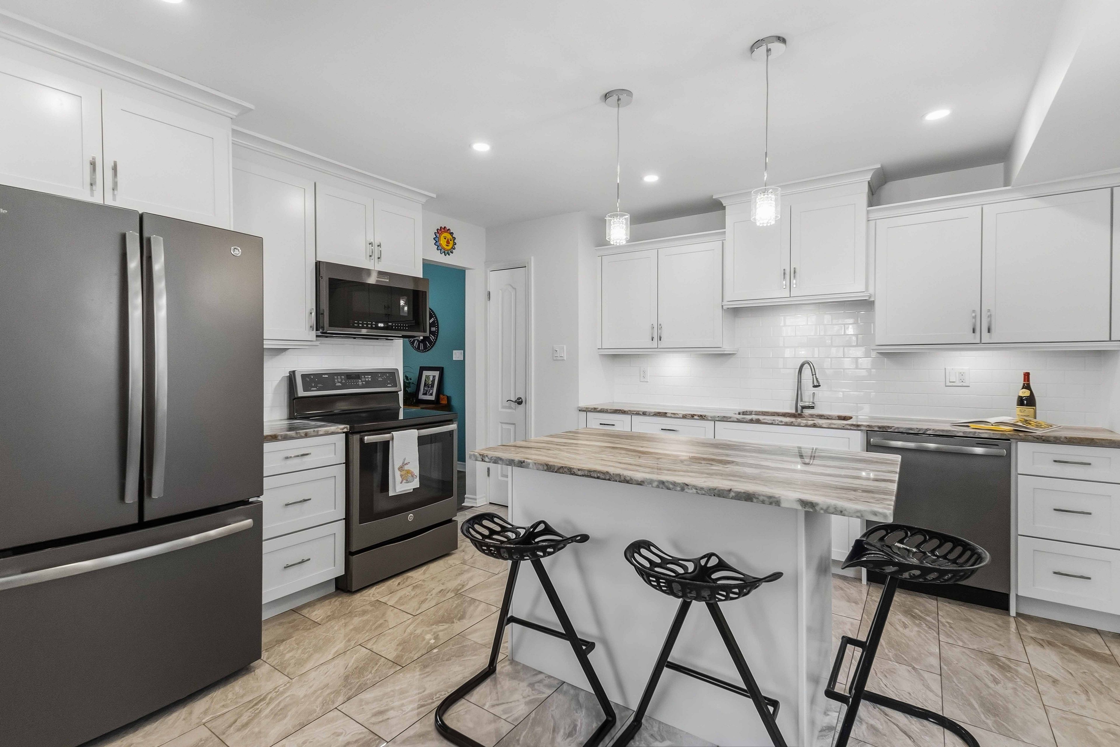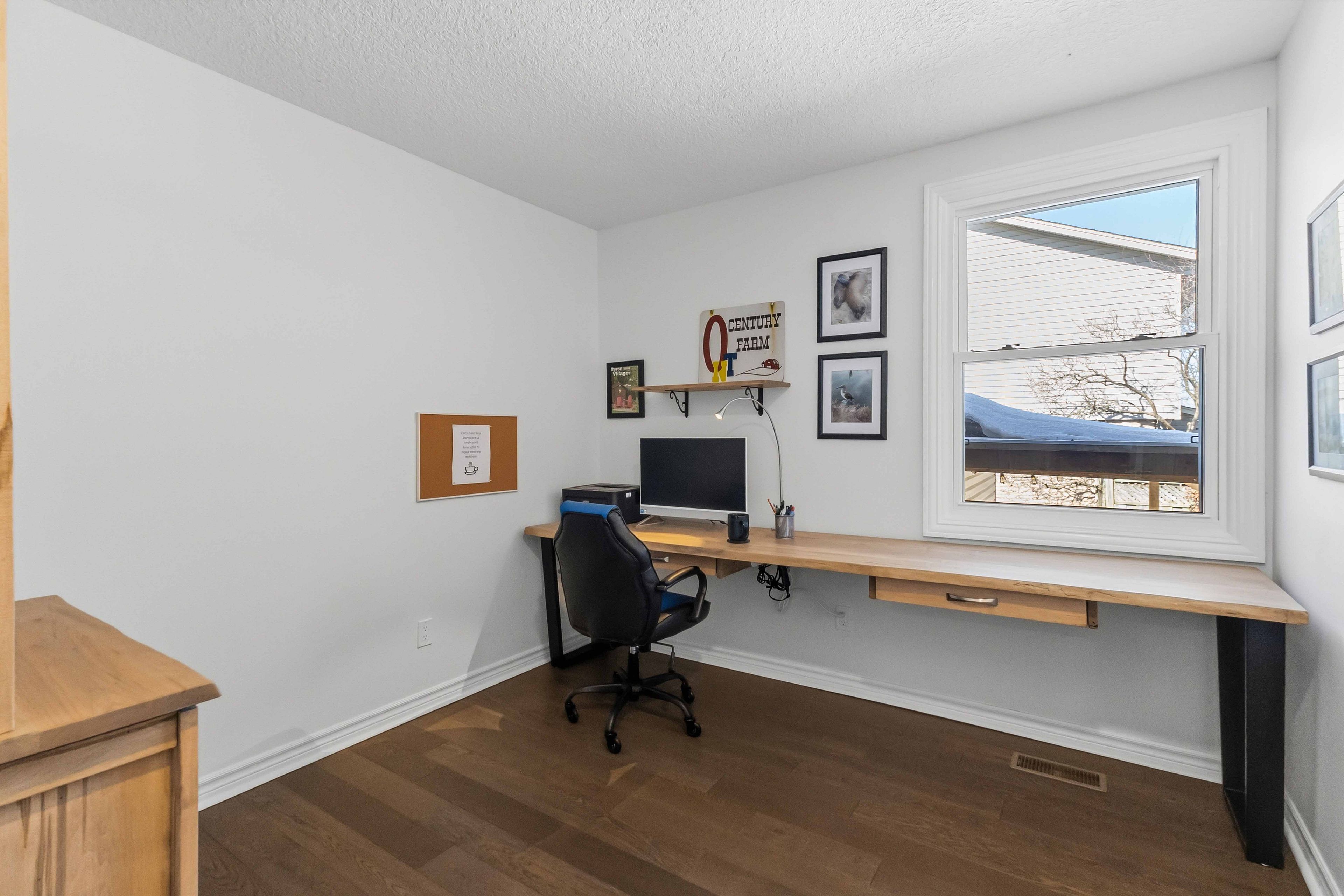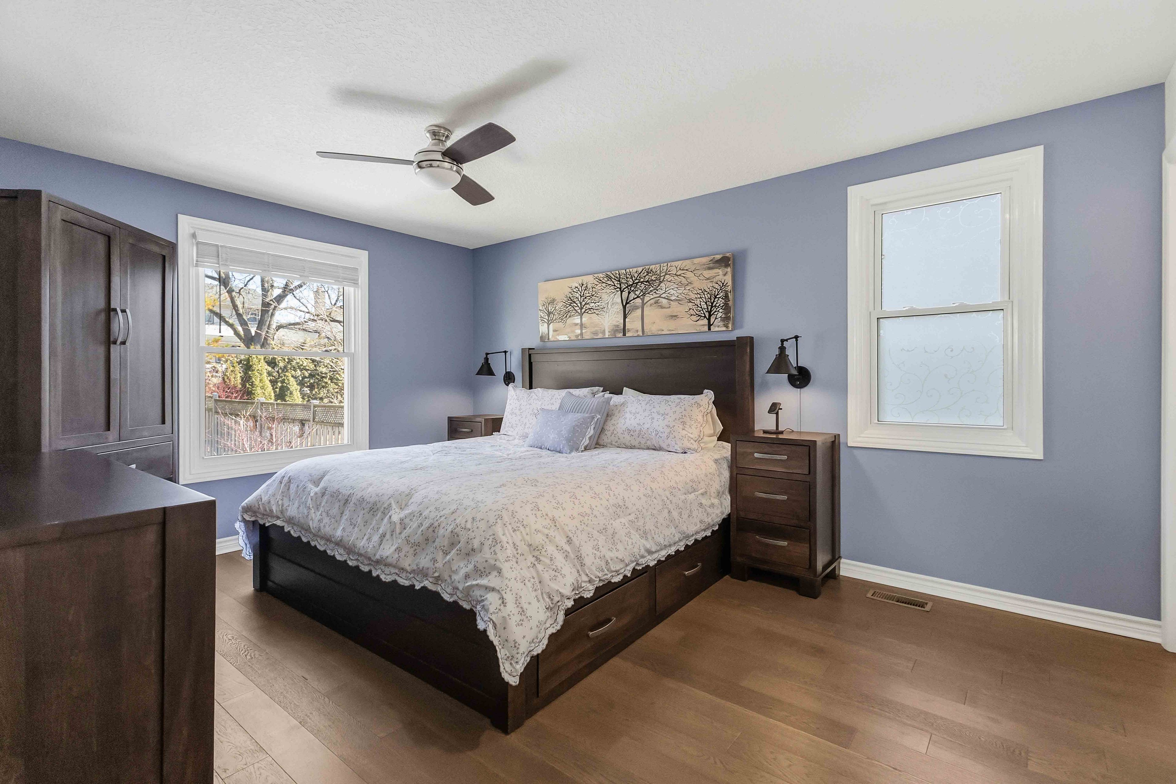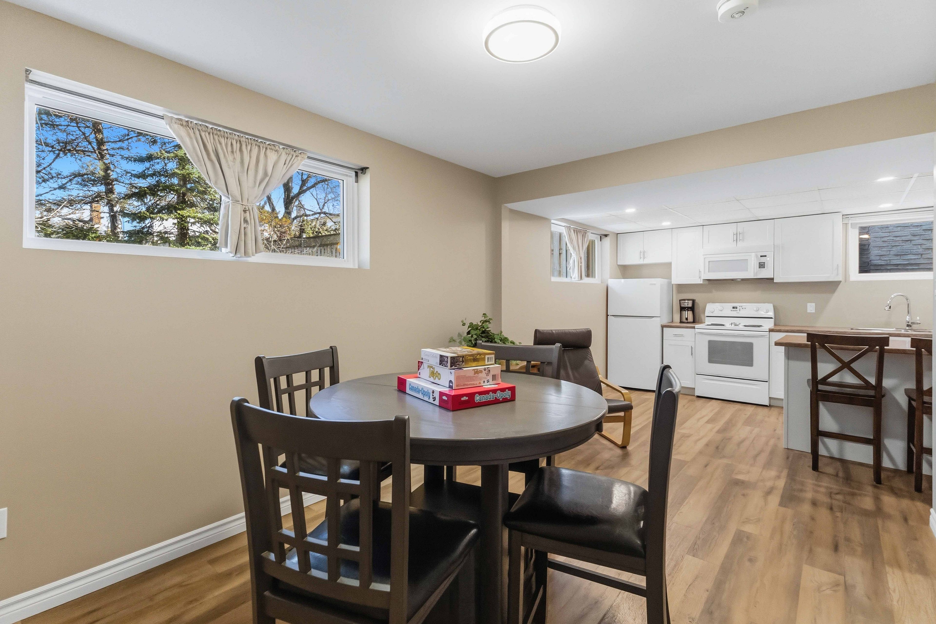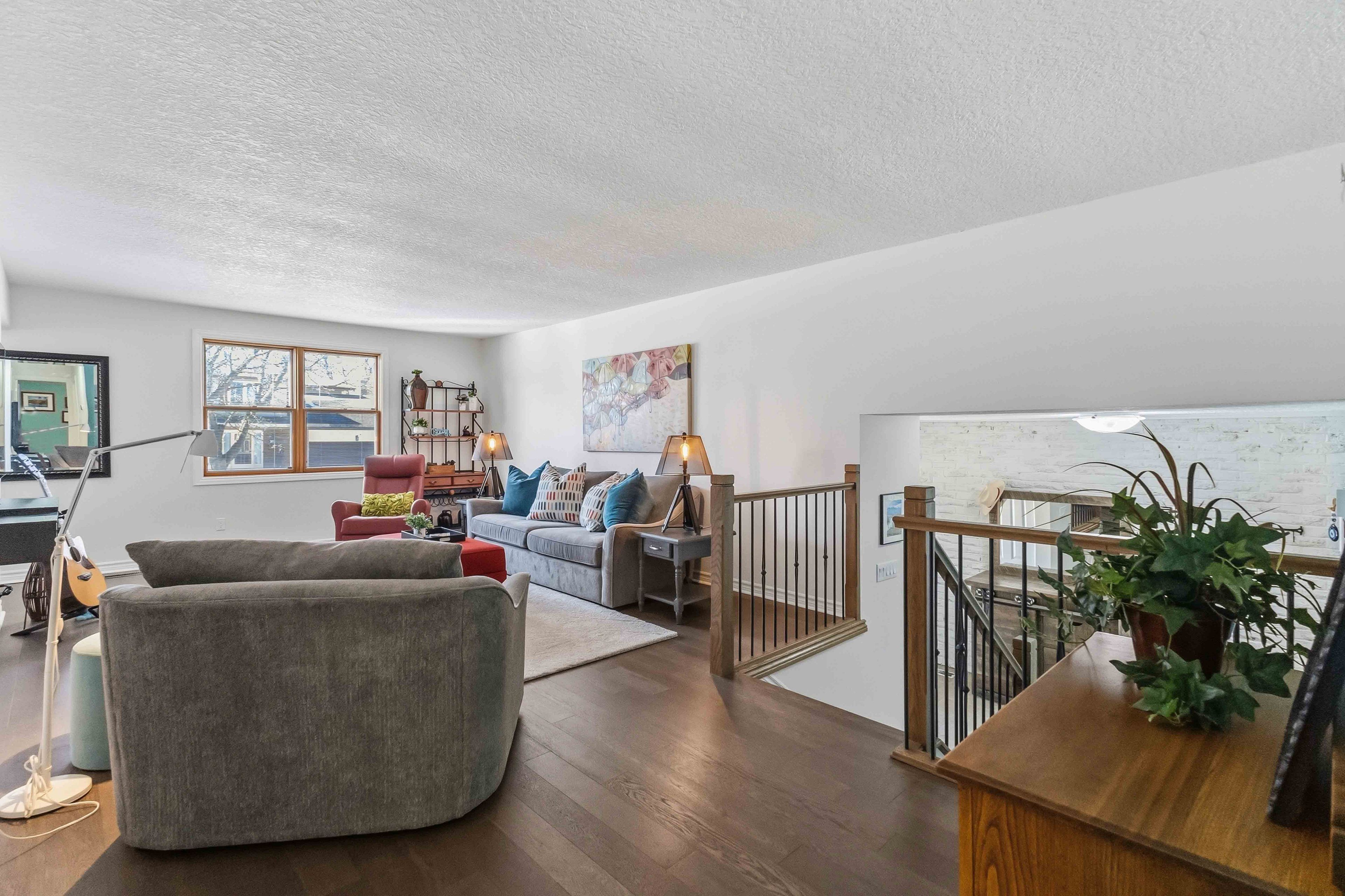 Nestled on a quiet, mature crescent in a highly desirable neighbourhood, this beautifully maintained 3+1 bedroom home offers exceptional comfort, versatility, and timeless appeal. Thoughtfully designed with family living in mind, this 3 level side-split features three well-appointed, updated bathrooms, updated flooring, and a stylishly renovated kitchen with granite counter tops and an island. The fully finished lower level includes a family room with a gas fireplace, a private in-law suite, ideal for extended family, guests, or potential rental income and ample storage along with an updated laundry. Outdoors, the property truly shines with award-winning gardens and a charming covered rear concrete patio, creating a serene setting perfect for relaxing or entertaining. An attached garage adds everyday convenience, while the meticulously cared-for home reflects true pride of ownership throughout. Ideally located within walking distance to westmount mall, cineplex, restaurants, and everyday amenities, this is a wonderful opportunity to enjoy a vibrant lifestyle in a place you'll be proud to call home. Further updates include new wiring, all interior doors replaced, bbq gas line, concrete driveway/sidewalk, 8 low e basement windows, exterior doors replaced, lawn sprinkler, leaf filter system, updated orange peel ceilings and a backyard pergola.