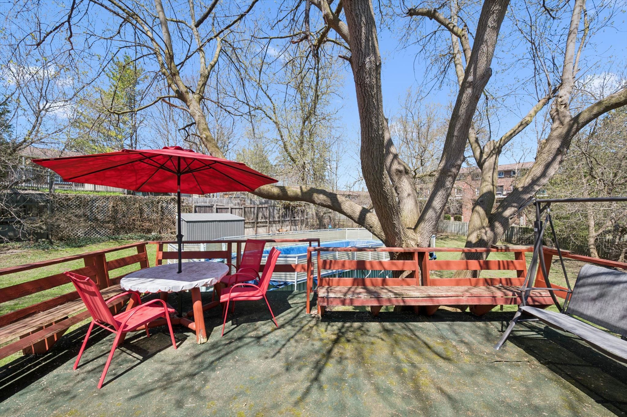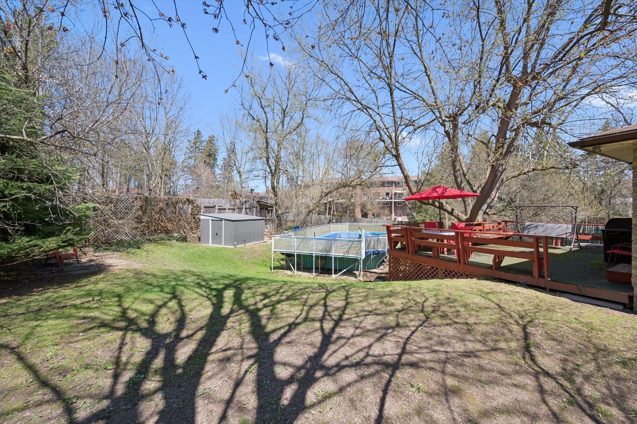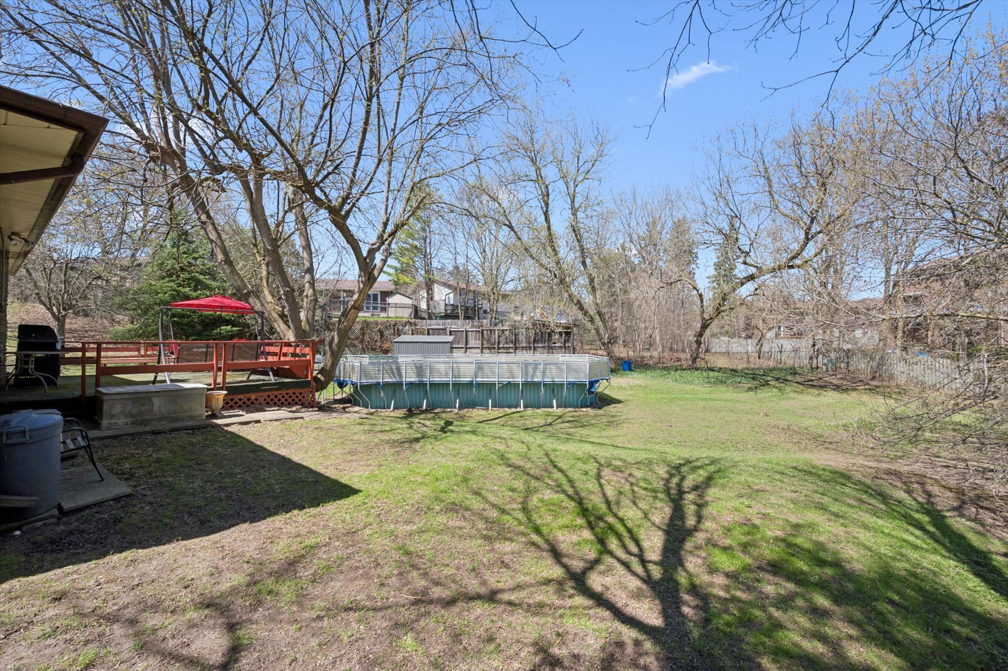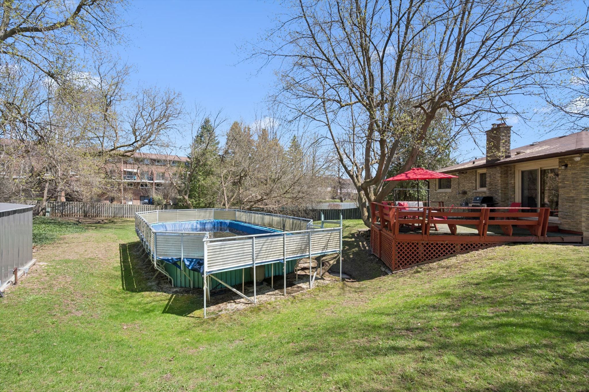• Large above-ground pool ready for summer fun and relaxation.