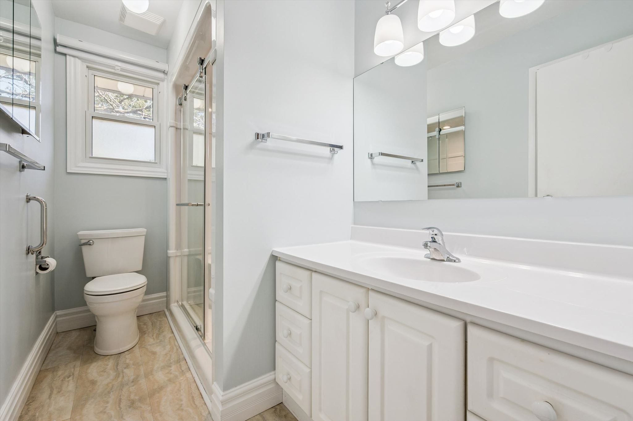 • Three bedrooms and two baths provide ample space for everyone.