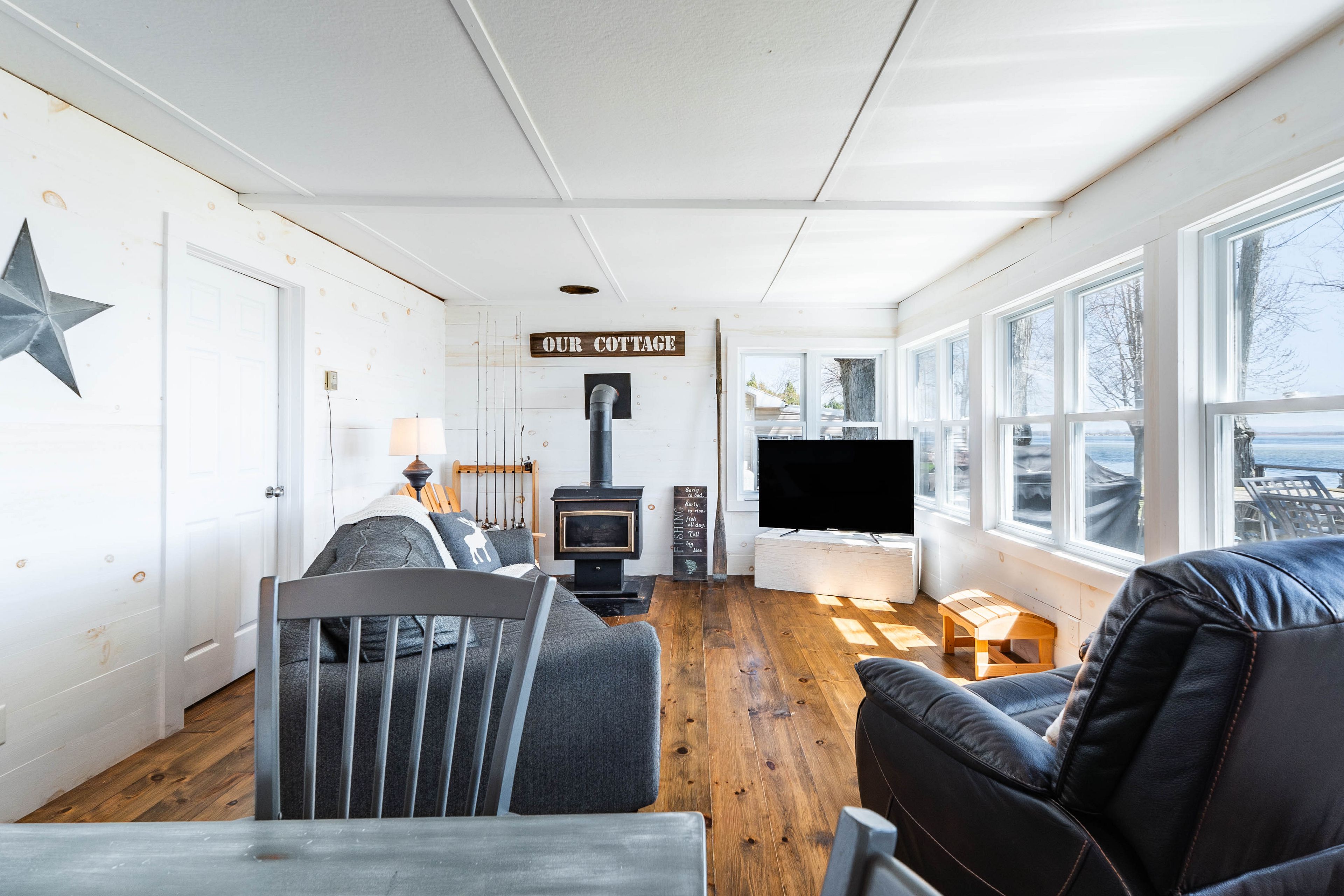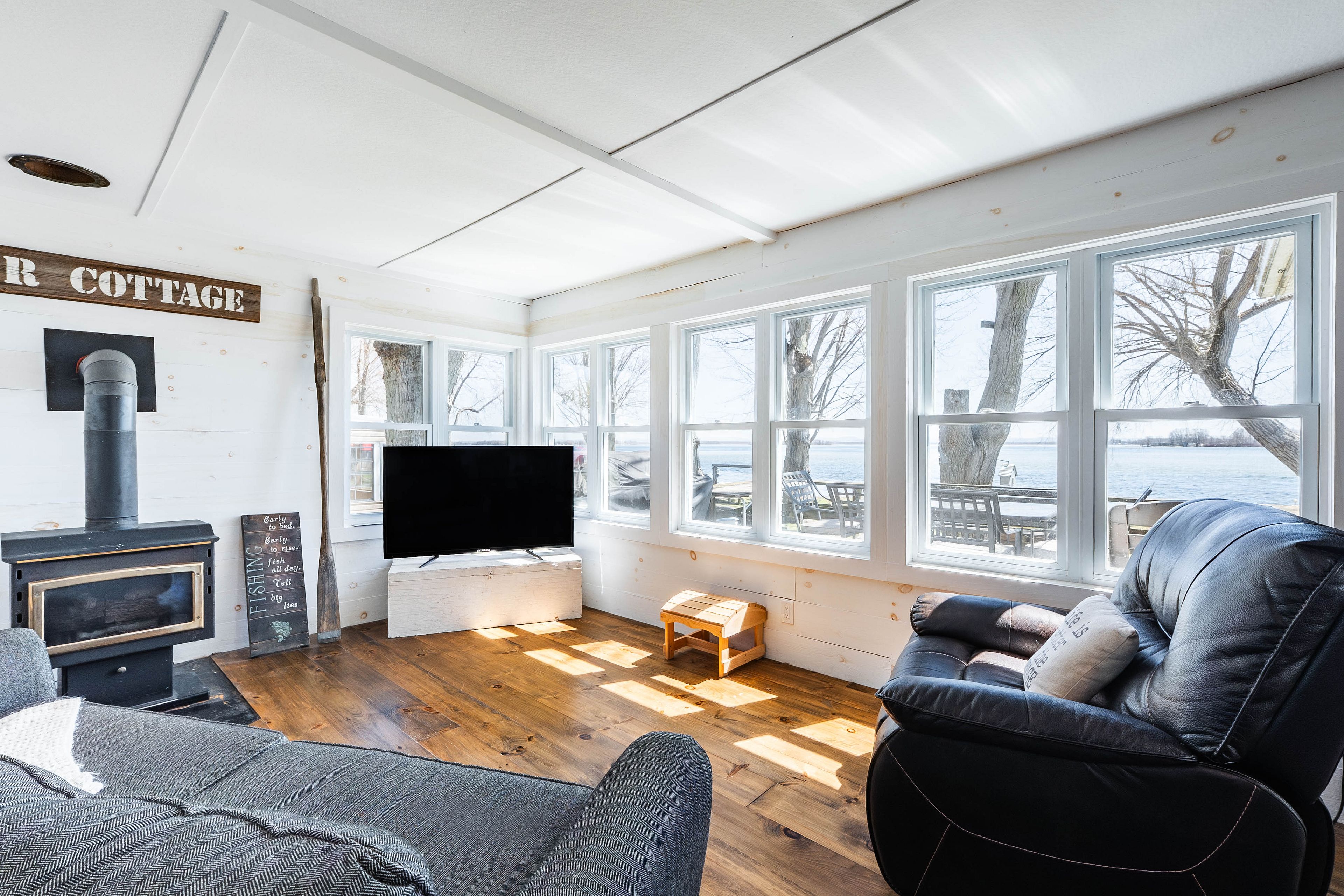 Welcome to your family's perfect getaway on beautiful hamilton island-a place where lifelong memories are made. With stunning south-facing views of the adirondack mountains and breathtaking sunsets over the st. Lawrence river, every evening becomes a moment to gather and unwind together. This warm and inviting cottage is designed with family living in mind. Whether it's summer adventures on the water or cozy evenings around the fire, there's space for everyone to relax, reconnect, and enjoy quality time-all just a short trip from the mainland for easy access. Offering approximately 1,358 square feet of fully furnished living space, the cottage features three bedrooms, a bright and functional bathroom, and an open-concept living and dining area that brings everyone together. The updated kitchen makes family meals simple and enjoyable, while the sun-filled sunroom-with its wraparound windows-creates the perfect spot for morning coffee, board games, or watching the kids play as the river glistens outside. Beautiful pine finishes throughout add warmth and character, and large windows frame peaceful waterfront views, creating a safe, welcoming environment for all ages. Whether it's swimming, boating, evening campfires, or simply enjoying time away from busy schedules, this cottage offers the ideal setting for families to slow down and truly connect.