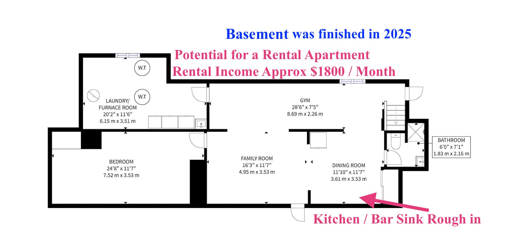 • Includes a renovated basement apartment with rental income potential.