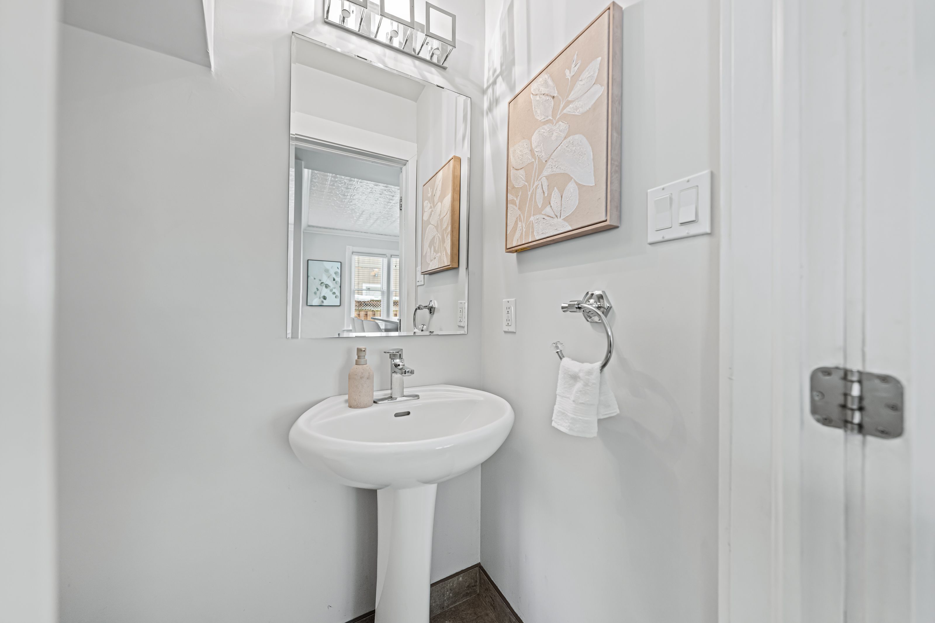 • Updated kitchen featuring quartz countertops and stainless steel appliances.
