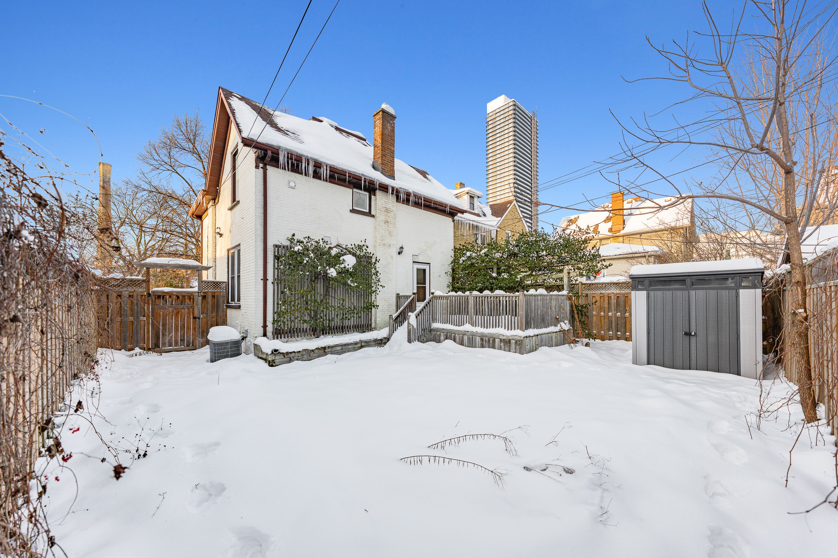 • Spacious backyard with deck and shed for outdoor activities.