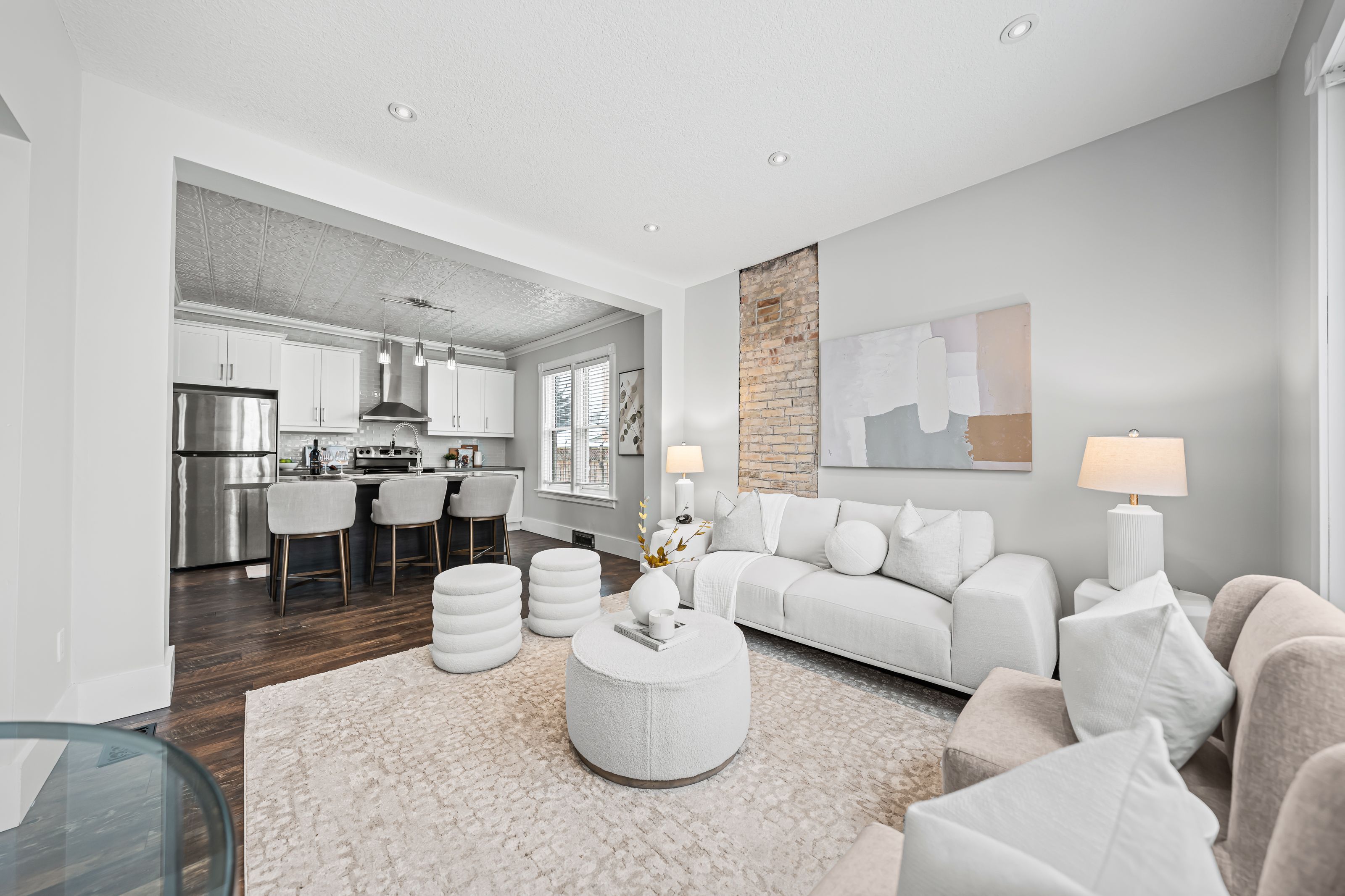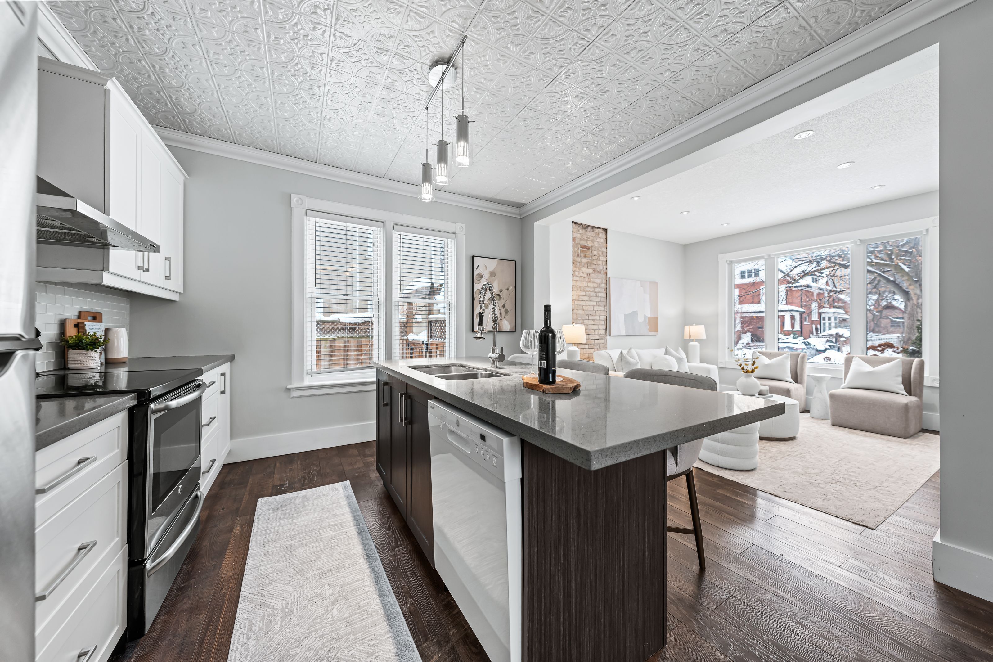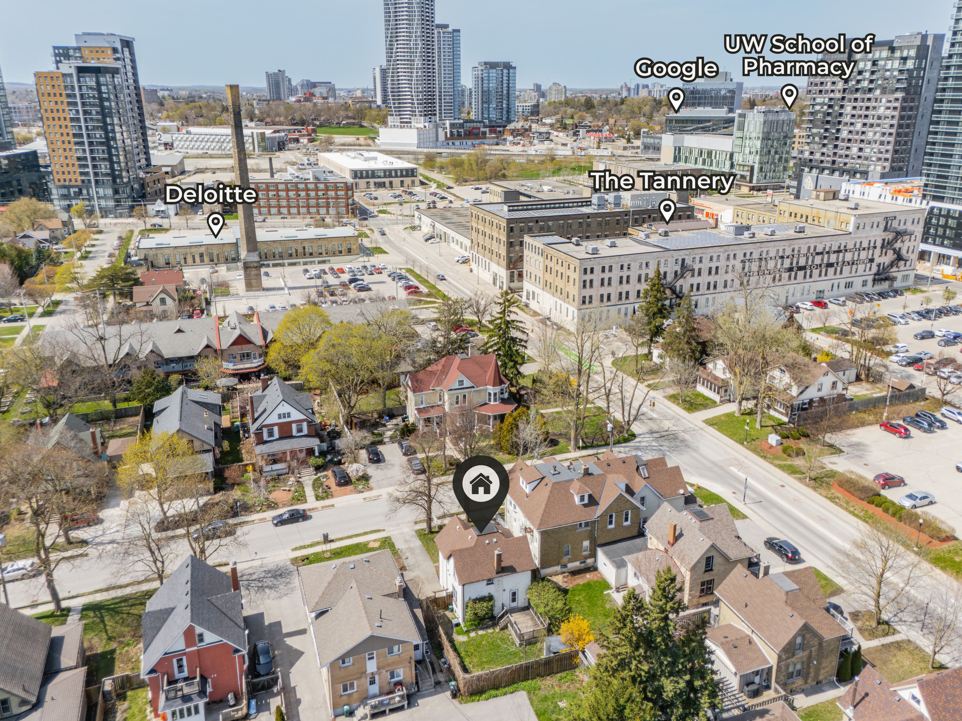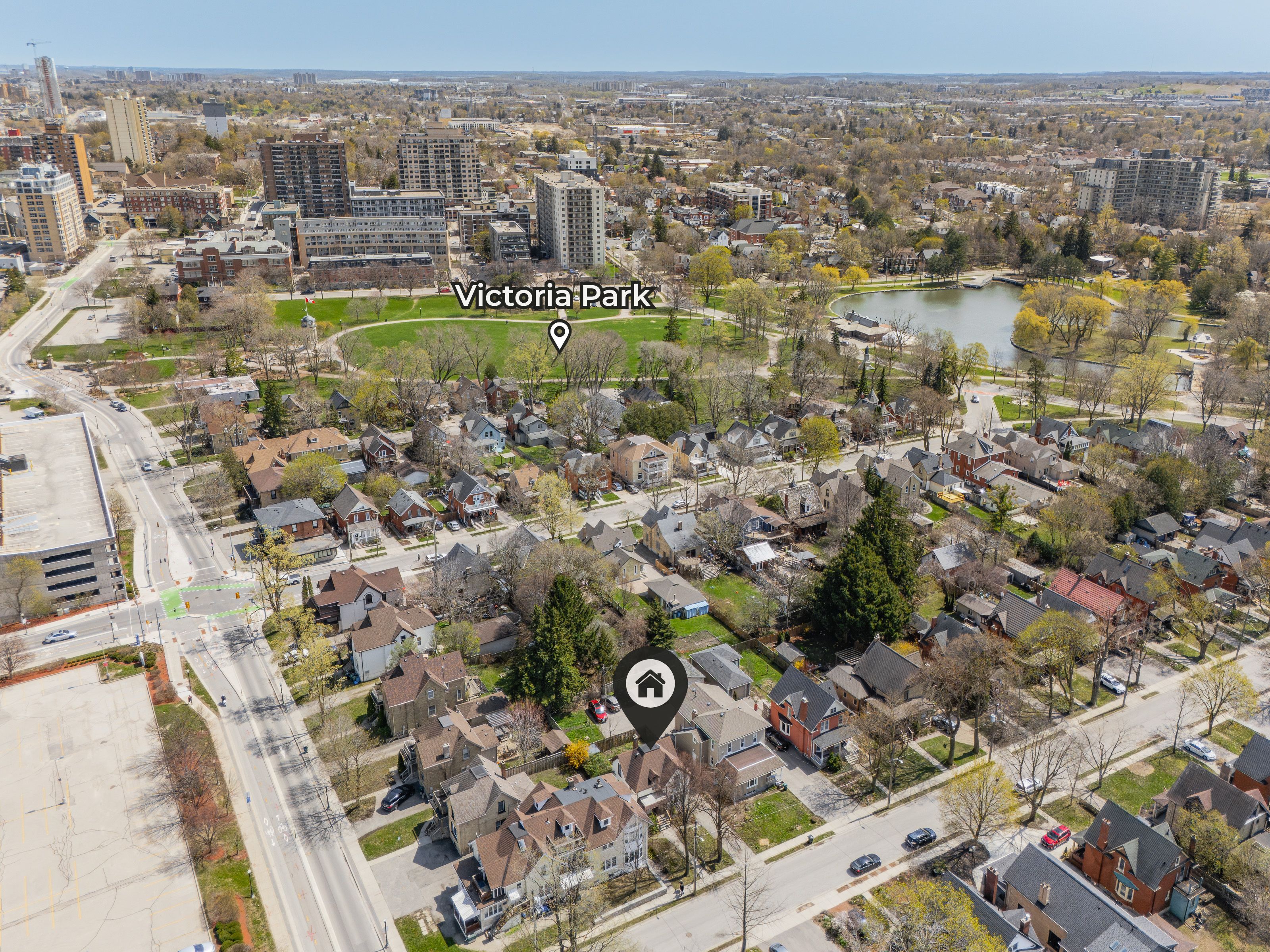 A rare opportunity in kitchener's historic victoria park neighbourhood-this beautifully restored century home has been fully updated from top to bottom while preserving the charm and character the area is known for. Located in the heart of the innovation district, this home offers modern finishes, thoughtful design, and an exceptional walkable lifestyle. The open-concept main floor features 9-foot ceilings, laminate flooring throughout, and a bright living room highlighted by an exposed brick feature wall. The updated eat-in kitchen offers quartz countertops, a large centre island, stainless steel appliances, tile backsplash, and a spacious integrated dining area, making it ideal for both everyday living and entertaining. A convenient 2-piece powder room completes the main level. The upper level includes a versatile media nook or home office area, two spacious bedrooms, and a spa-like 4-piece bathroom with a separate soaking tub, tiled glass shower enclosure, and rain shower fixture. The primary bedroom features dual closets, including a walk-in with custom built-ins and a sliding barn door. Outside, the fully fenced backyard offers a large deck and shed, providing functional outdoor space. Additional highlights include 2 parking spaces and sga-1 zoning, offering added flexibility for future use. Unbeatable location-minutes to the victoria park ion lrt station and downtown kitchener. Walk to victoria park, google, the tannery, university of waterloo health sciences campus, school of pharmacy, d2l, deloitte, restaurants, cafés, shopping, and transit. Close to grand river hospital, st. Mary's hospital, and the kitchener go station, with easy access to festivals, cultural events, and everything downtown kitchener has to offer. A rare blend of historic charm and modern living in one of kitchener's most sought-after neighbourhoods. An excellent opportunity to live-in or invest-perfect for owner-occupiers/those seeking a well-located property in the innovation district.