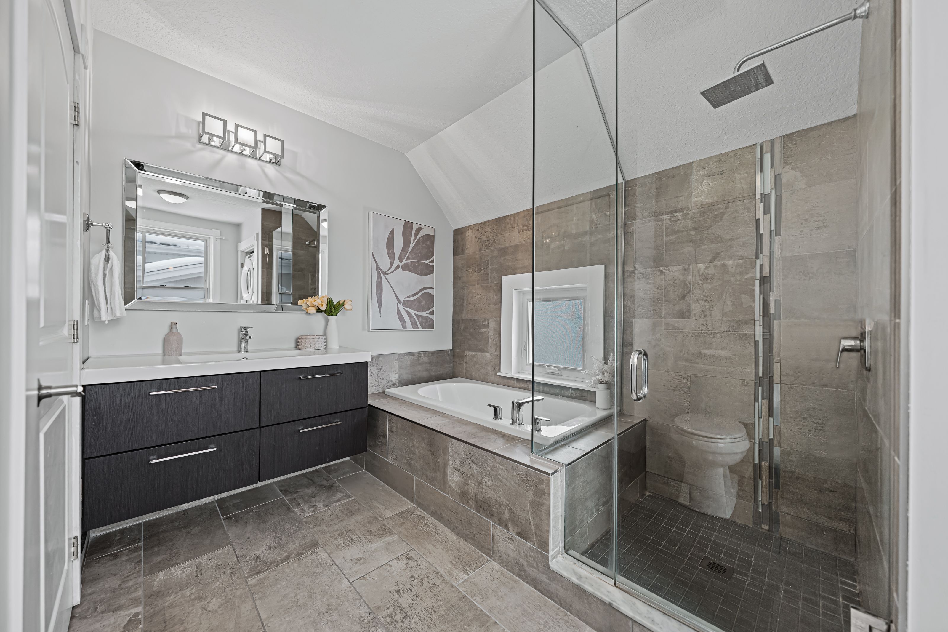 • Updated kitchen with quartz countertops and spacious dining area for entertaining.