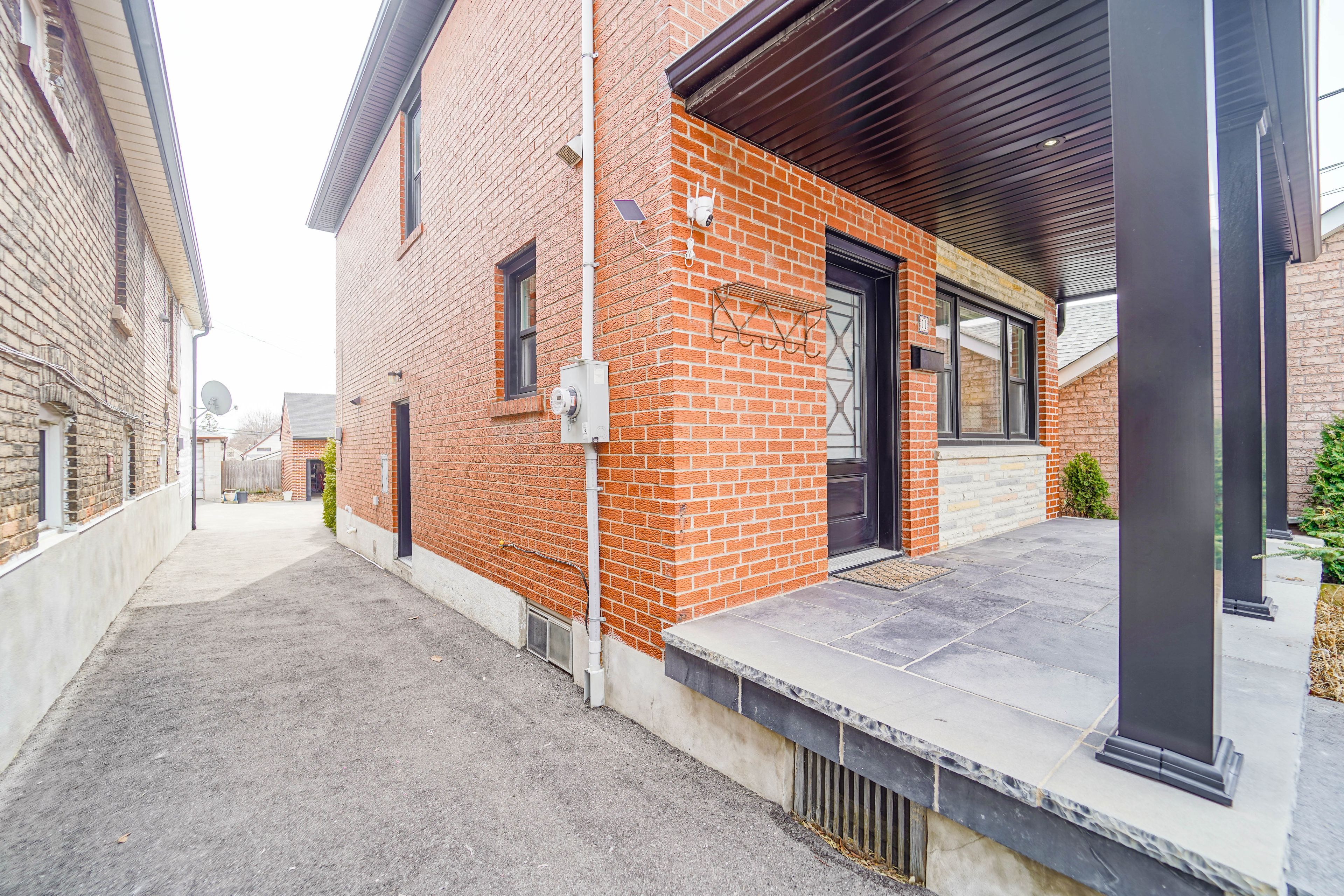 Welcome to 11 helen ave! A beautiful detached home on an impressive 141 foot deep lot, showcasing significant investment in exterior upgrades and offering outstanding curb appeal and long-term value! Featuring a newer detached garage with a second level presenting excellent potential for a future garden suite and ideal for generating additional income or creating a private workspace! The expansive covered front porch finished with stone flooring is a true standout! Thousands spent on improvements including furnace, air conditioner, eavestroughs, soffits, fascia, brick tuckpointing, retaining walls, interlock walkway, a new front door and new porch, and electrical upgrades to the garage, all completed approximately in 2024. Bright, open-concept living and dining areas with large windows, hardwood floors, crown moulding, and pot lights. Spacious eat-in kitchen features double doors leading to the deck and backyard, creating convenient indoor-outdoor living. The second level includes three generously sized bedrooms and an updated bathroom with marble finishes. The basement, with a separate entrance, is partially finished and features large above-grade windows and a fireplace which is perfect for additional family living space, a nanny suite, or potential conversion into an income-generating apartment. Situated on a quiet dead-end street with no sidewalk, this home is conveniently located close to public transit, restaurants, parks, schools, and all amenities. A rare opportunity combining thoughtful interior space with extensive exterior upgrades and extra income potential!