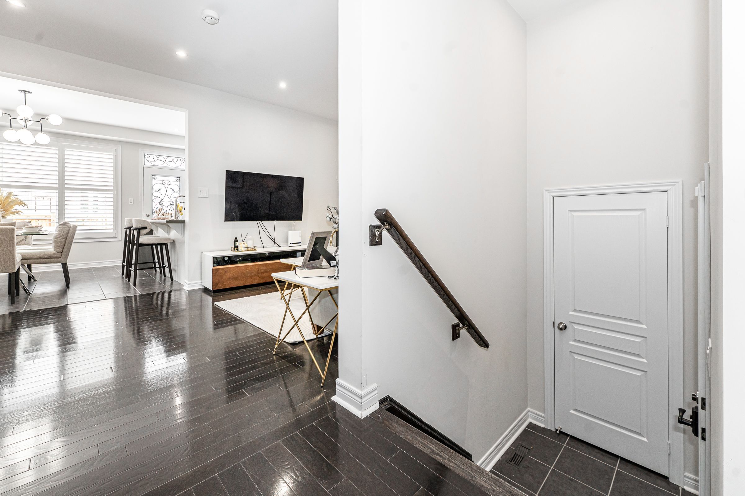 • Open-concept main level with hardwood floors and pot lights.