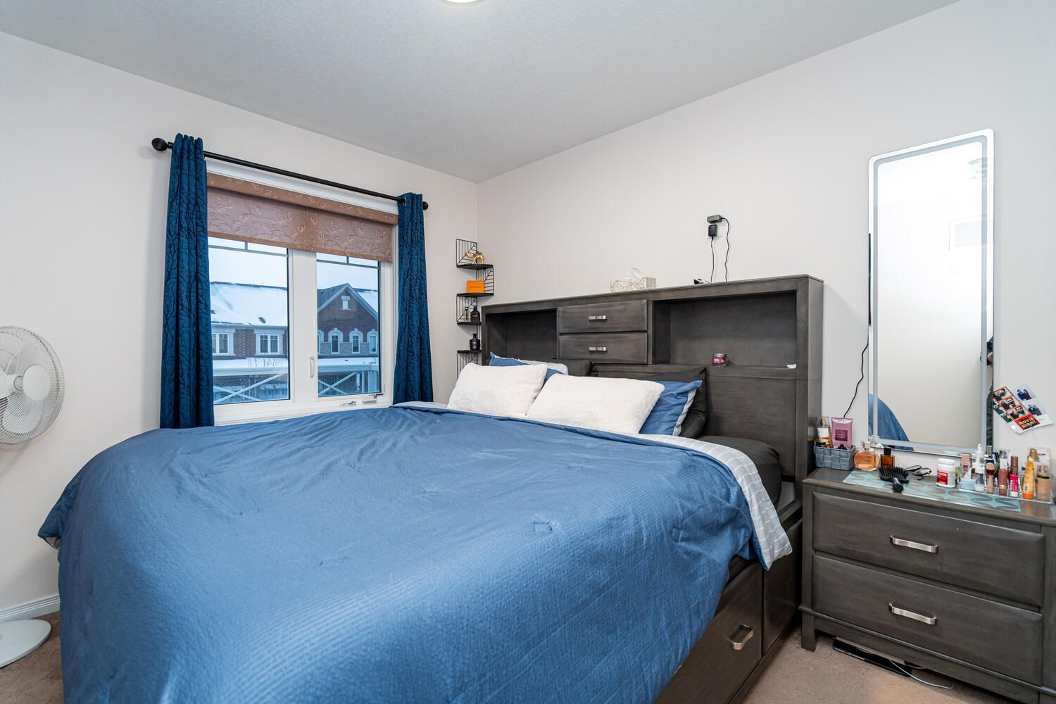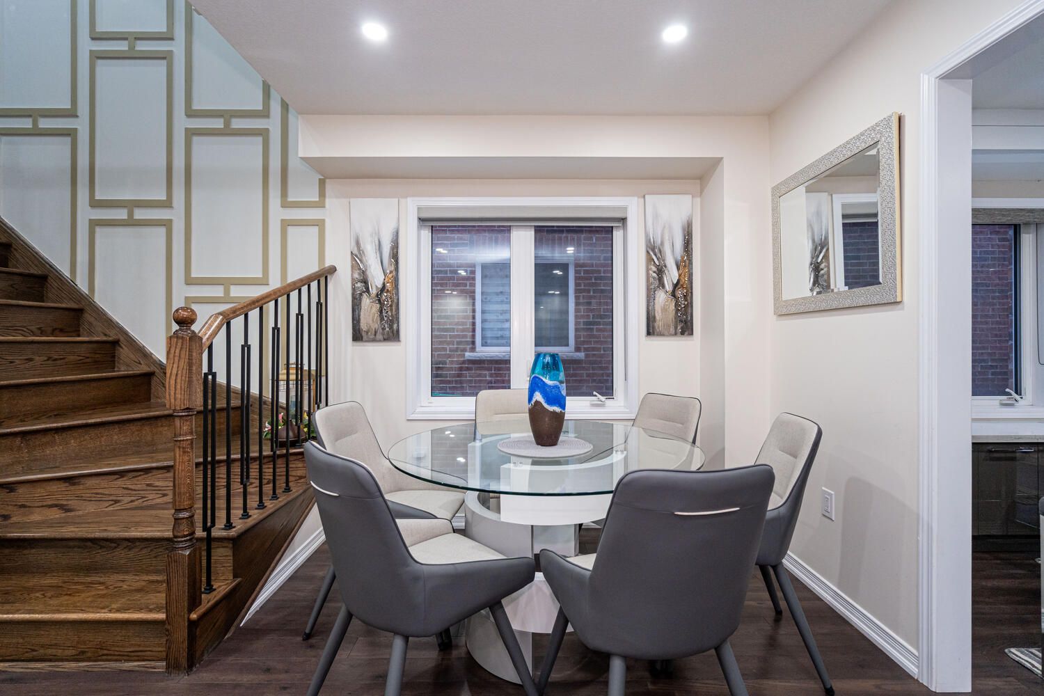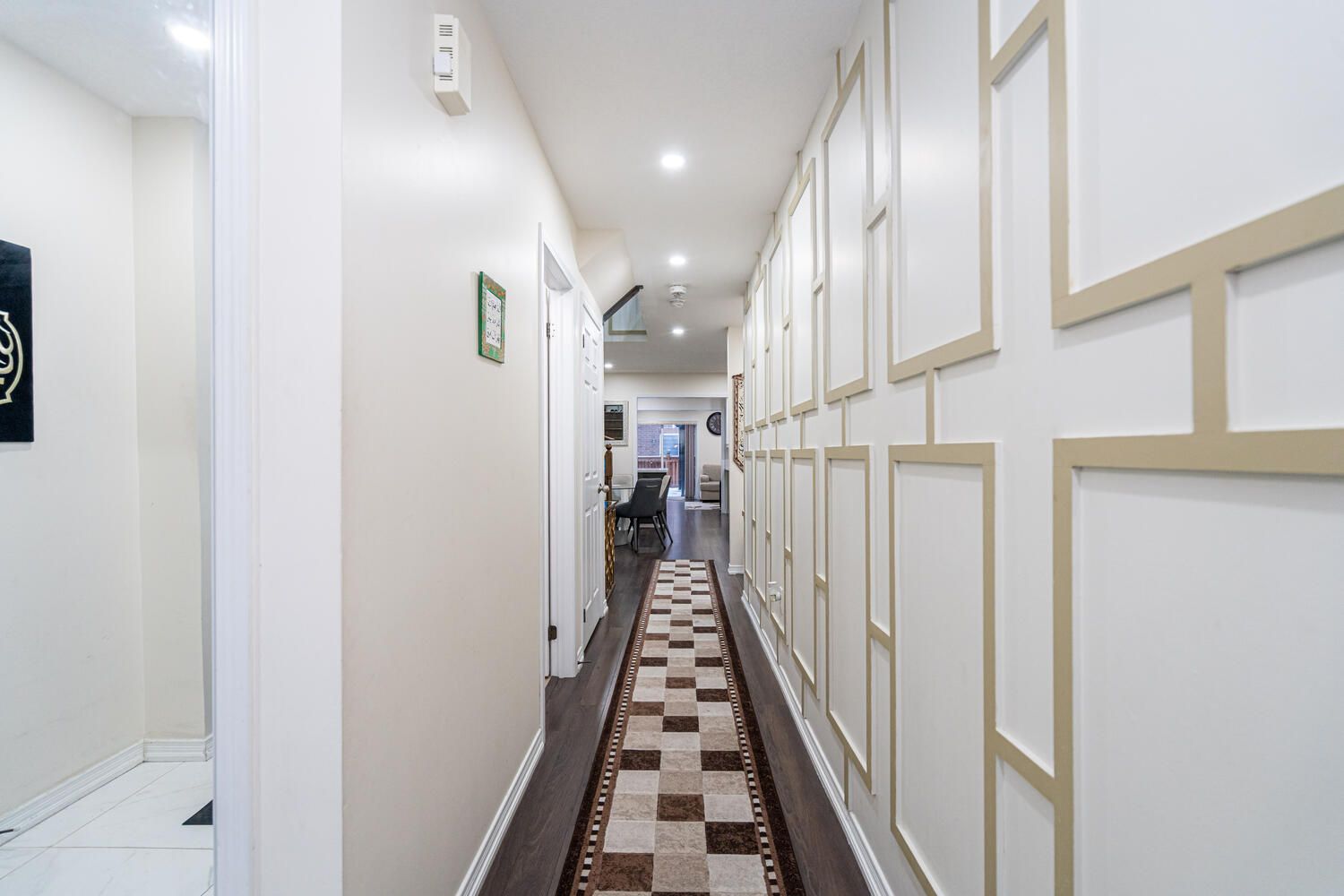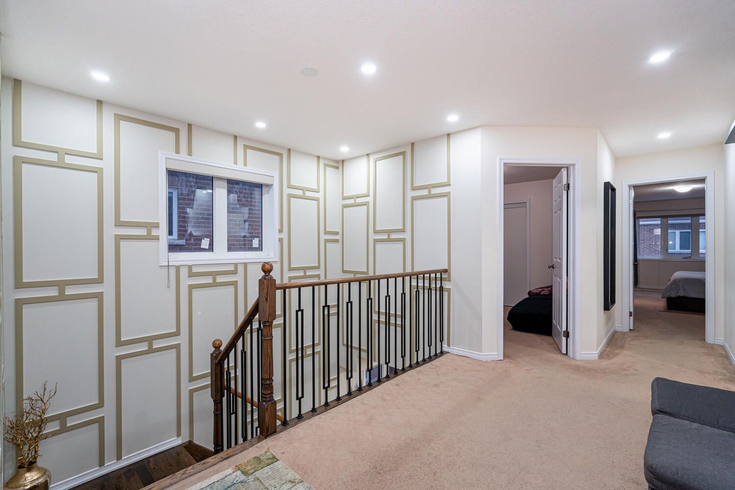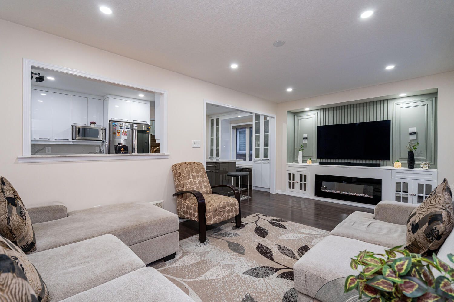 This absolutely gorgeous end-unit townhome offers over 2000 sq ft of beautifully finished living space and truly feels like a semi-detached, featuring a striking stone-and-brick exterior, exterior pot lights and a grand double-door entrance that makes an unforgettable first impression. The main floor is bright and inviting with laminate flooring, pot lights and both a separate living room and family room-perfect for families who want privacy and extra space. The stunning modern kitchen steals the show with high-end quartz countertops, a stylish backsplash, stainless steel appliances, glossy white cabinets and a functional island that adds both charm and convenience. The cozy family room is designed for comfort with a custom tv wall and added storage, while elegant wainscotting and upgraded oak stairs with iron spindles lead you to the second level, where you'll find four spacious bedrooms, two full bathrooms and a dedicated laundry room. The finished basement adds incredible value, ideal as an in-law suite or future rental potential, giving first-time buyers room to grow. The maintenance-free backyard with a massive deck and beautiful gazebo creates the perfect outdoor retreat. This home is truly a rare find-stylish, spacious and absolutely perfect for first-time buyers looking for comfort, luxury and long-term value.