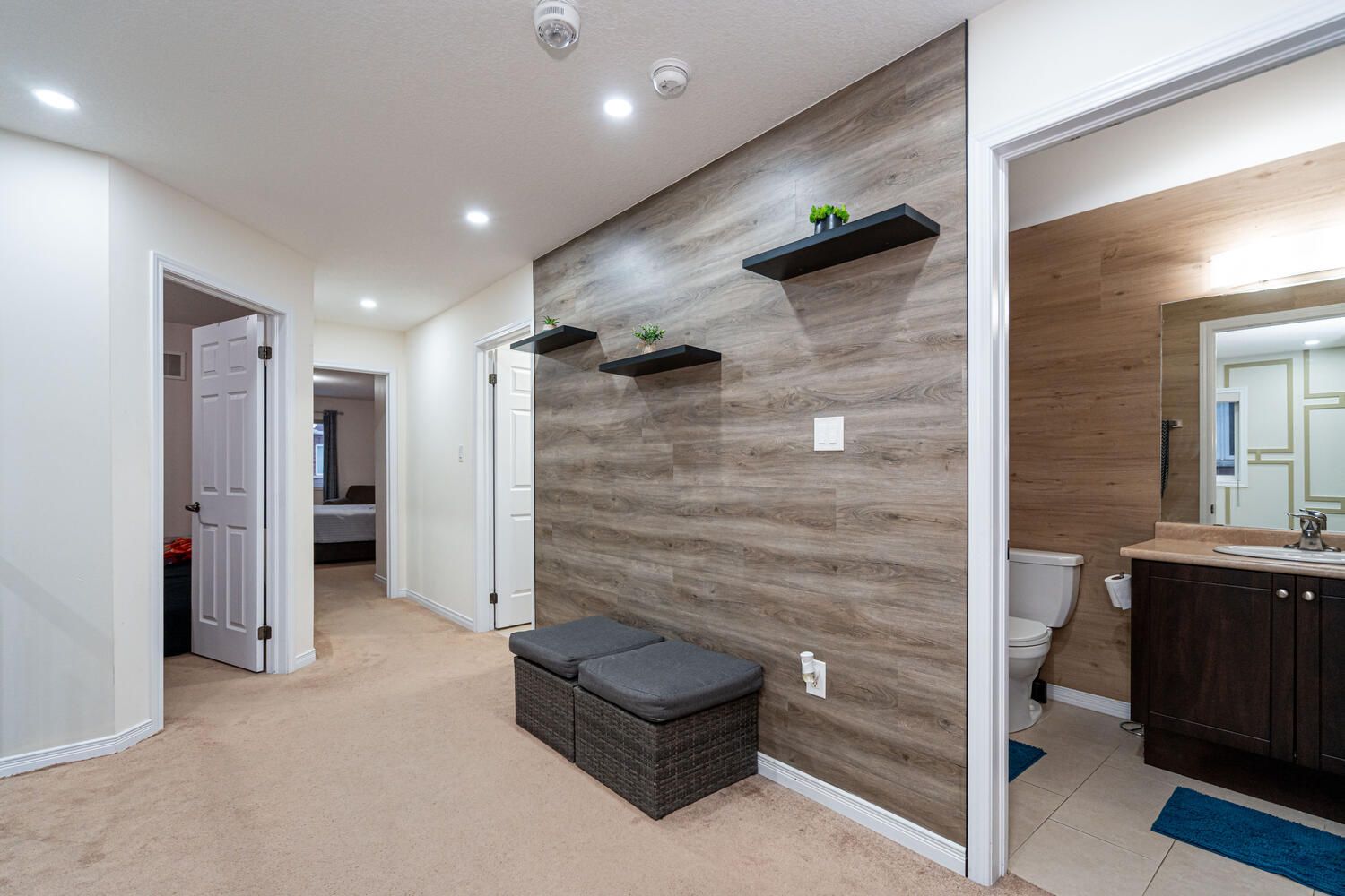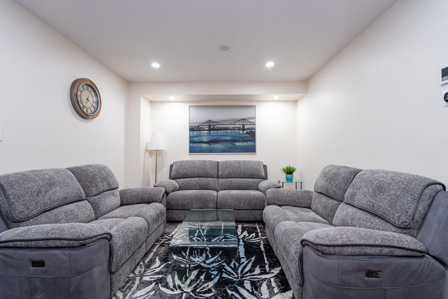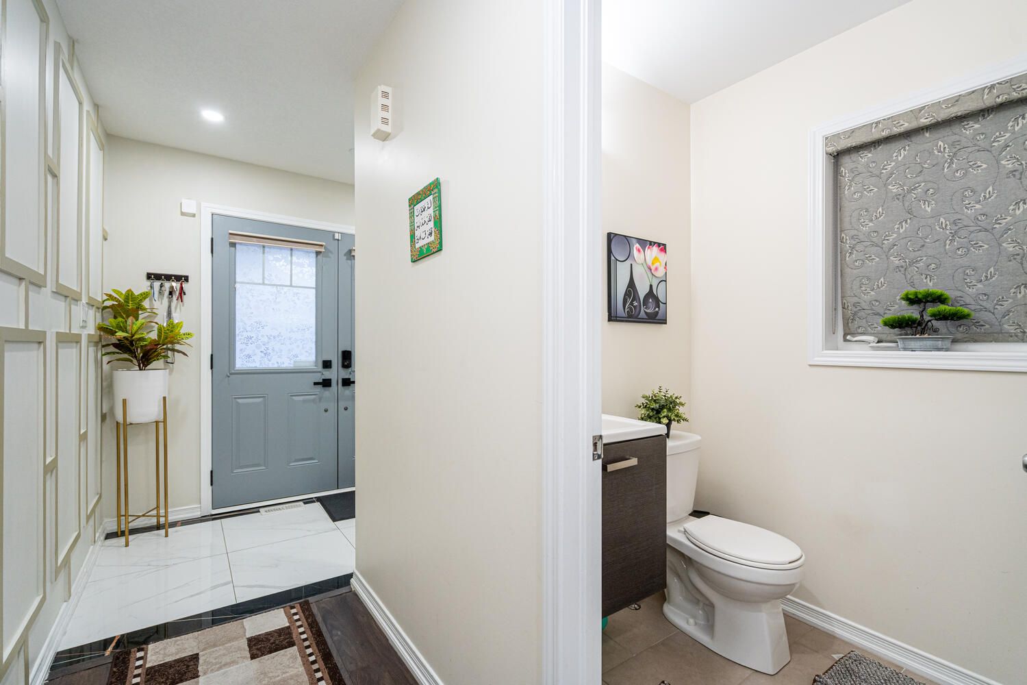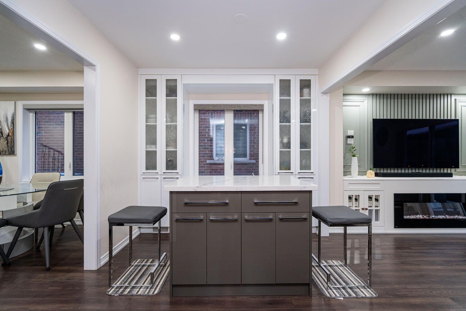 This absolutely gorgeous end-unit townhome offers over 2000 sq ft of beautifully finished living space and truly feels like a semi-detached, featuring a striking stone-and-brick exterior, exterior pot lights and a grand double-door entrance that makes an unforgettable first impression. The main floor is bright and inviting with laminate flooring, pot lights and both a separate living room and family room-perfect for families who want privacy and extra space. The stunning modern kitchen steals the show with high-end quartz countertops, a stylish backsplash, stainless steel appliances, glossy white cabinets and a functional island that adds both charm and convenience. The cozy family room is designed for comfort with a custom tv wall and added storage, while elegant wainscotting and upgraded oak stairs with iron spindles lead you to the second level, where you'll find four spacious bedrooms, two full bathrooms and a dedicated laundry room. The finished basement adds incredible value, ideal as an in-law suite or future rental potential, giving first-time buyers room to grow. The maintenance-free backyard with a massive deck and beautiful gazebo creates the perfect outdoor retreat. This home is truly a rare find-stylish, spacious and absolutely perfect for first-time buyers looking for comfort, luxury and long-term value.