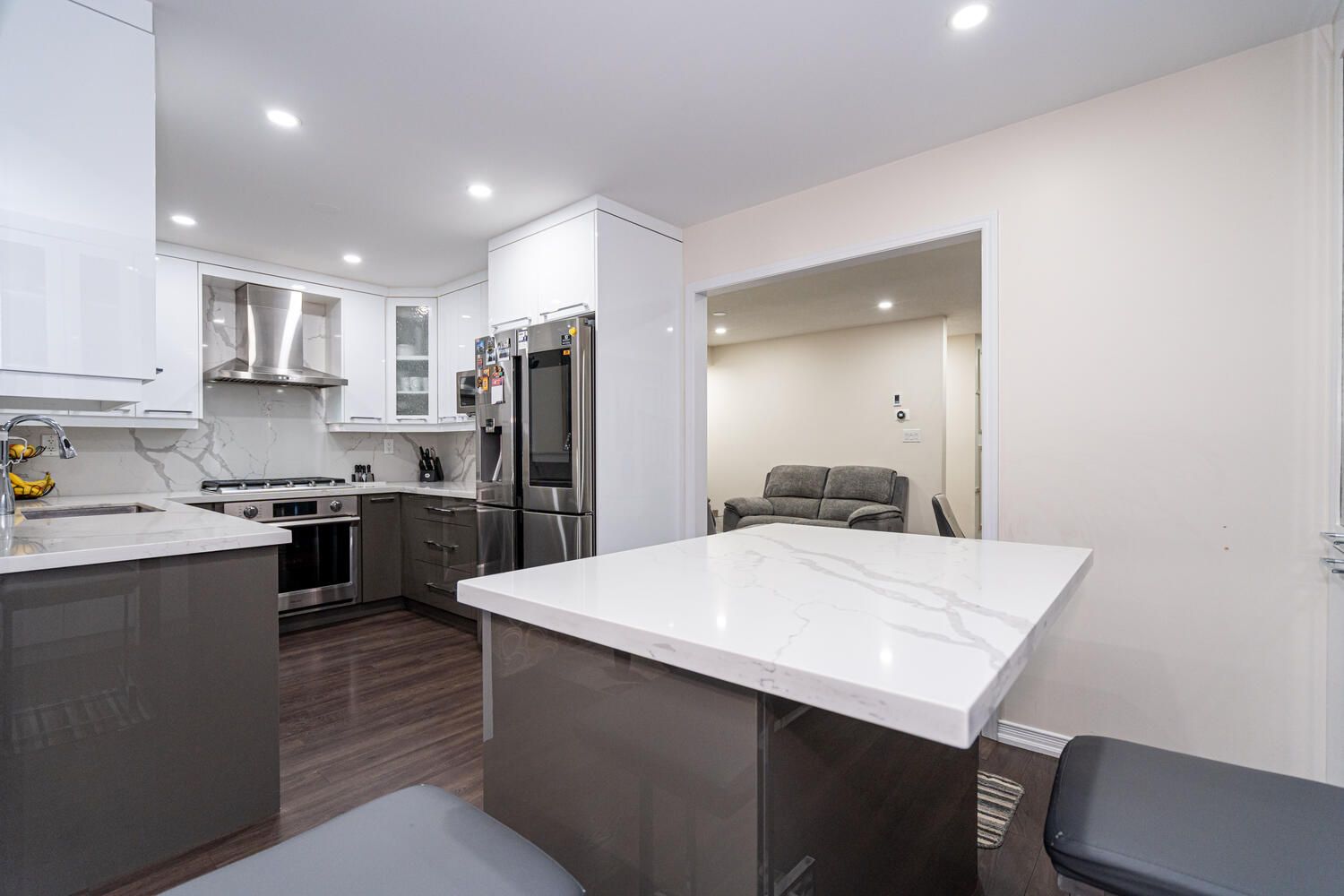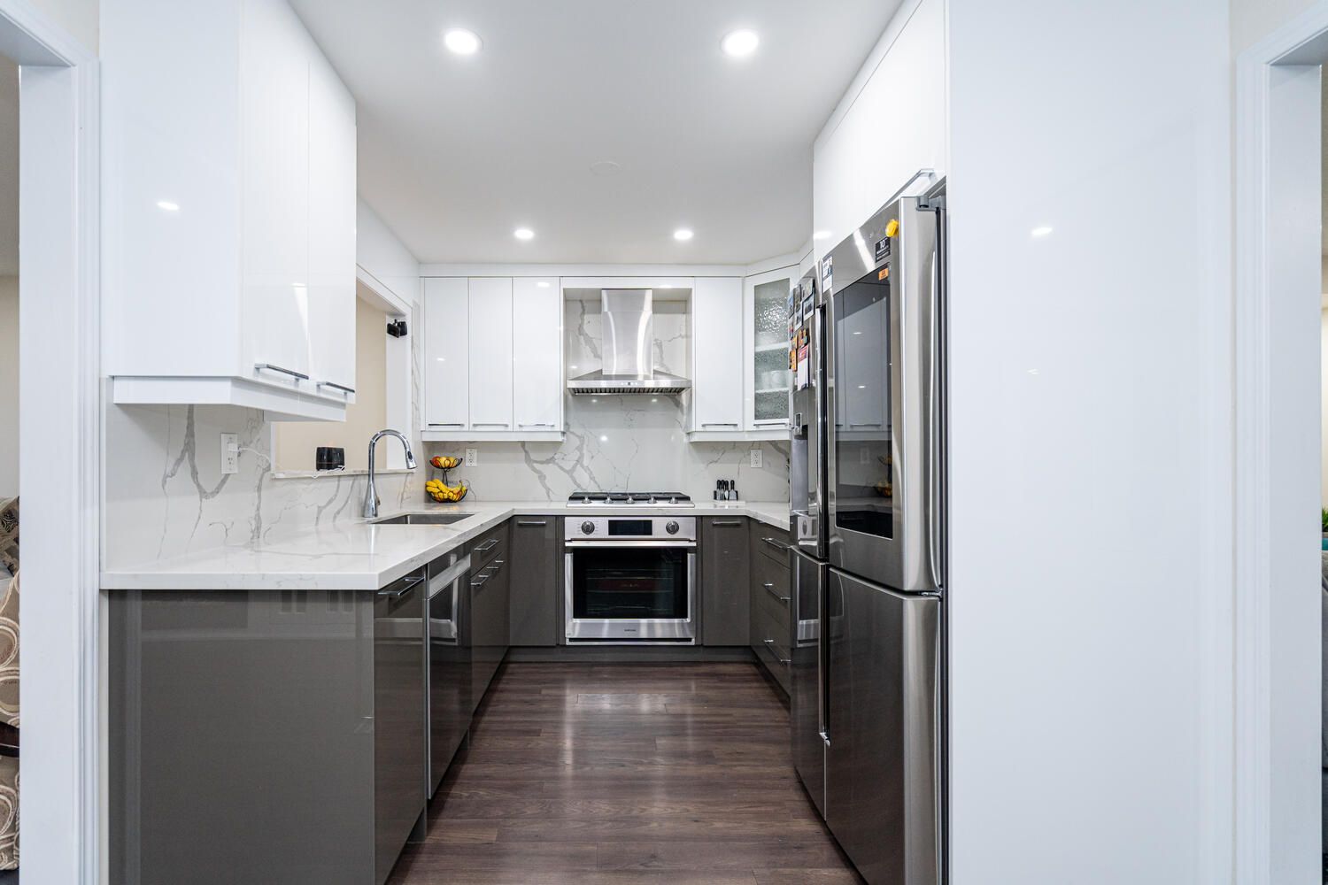 • Modern kitchen features high-end quartz countertops and stainless steel appliances.