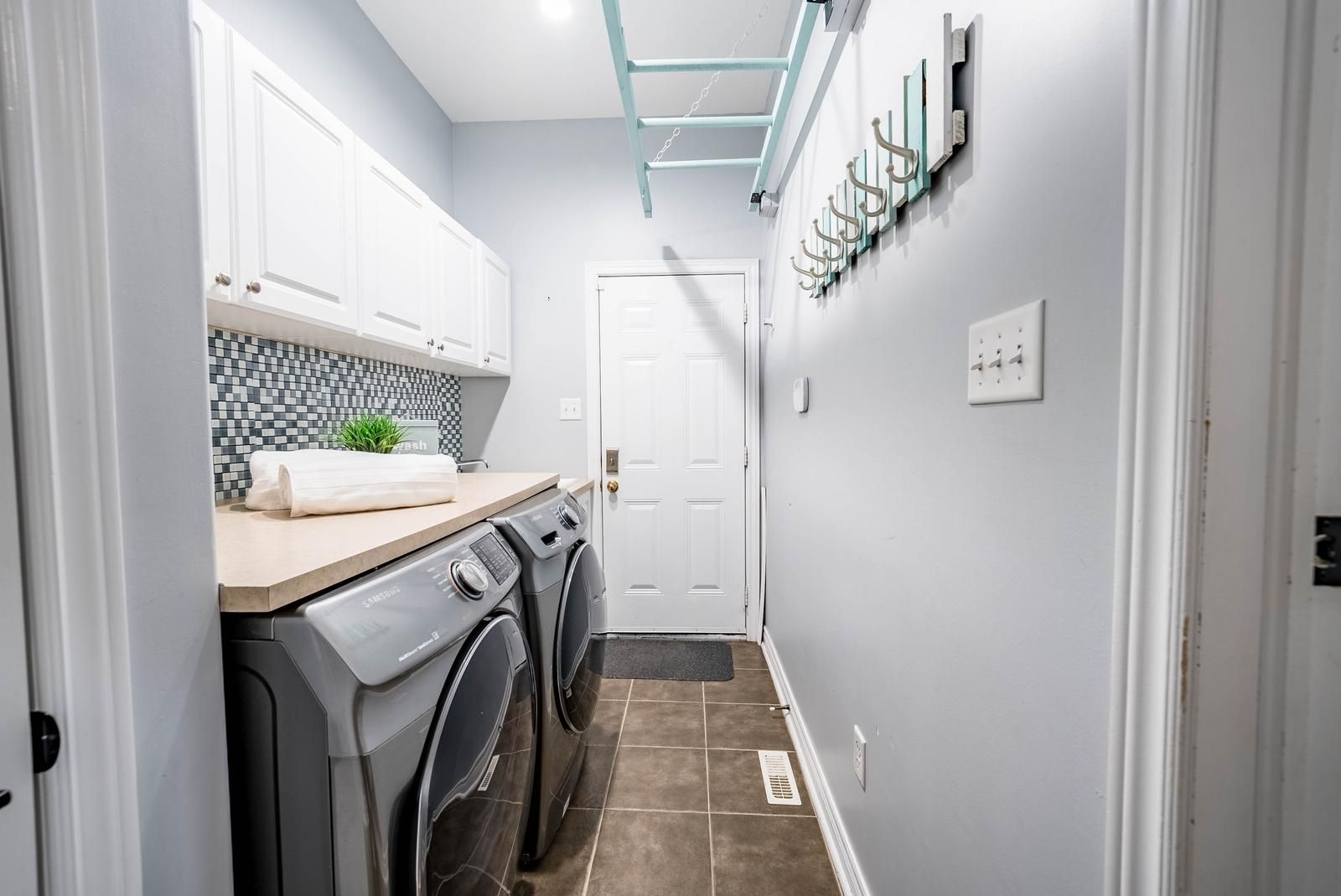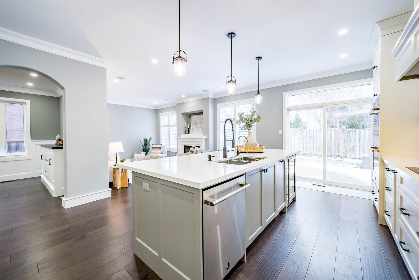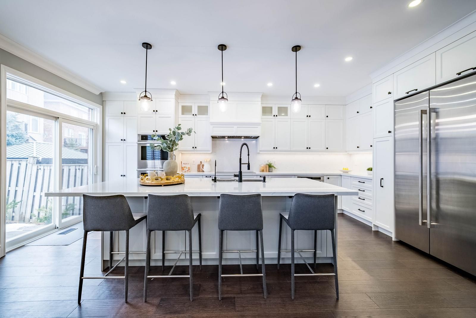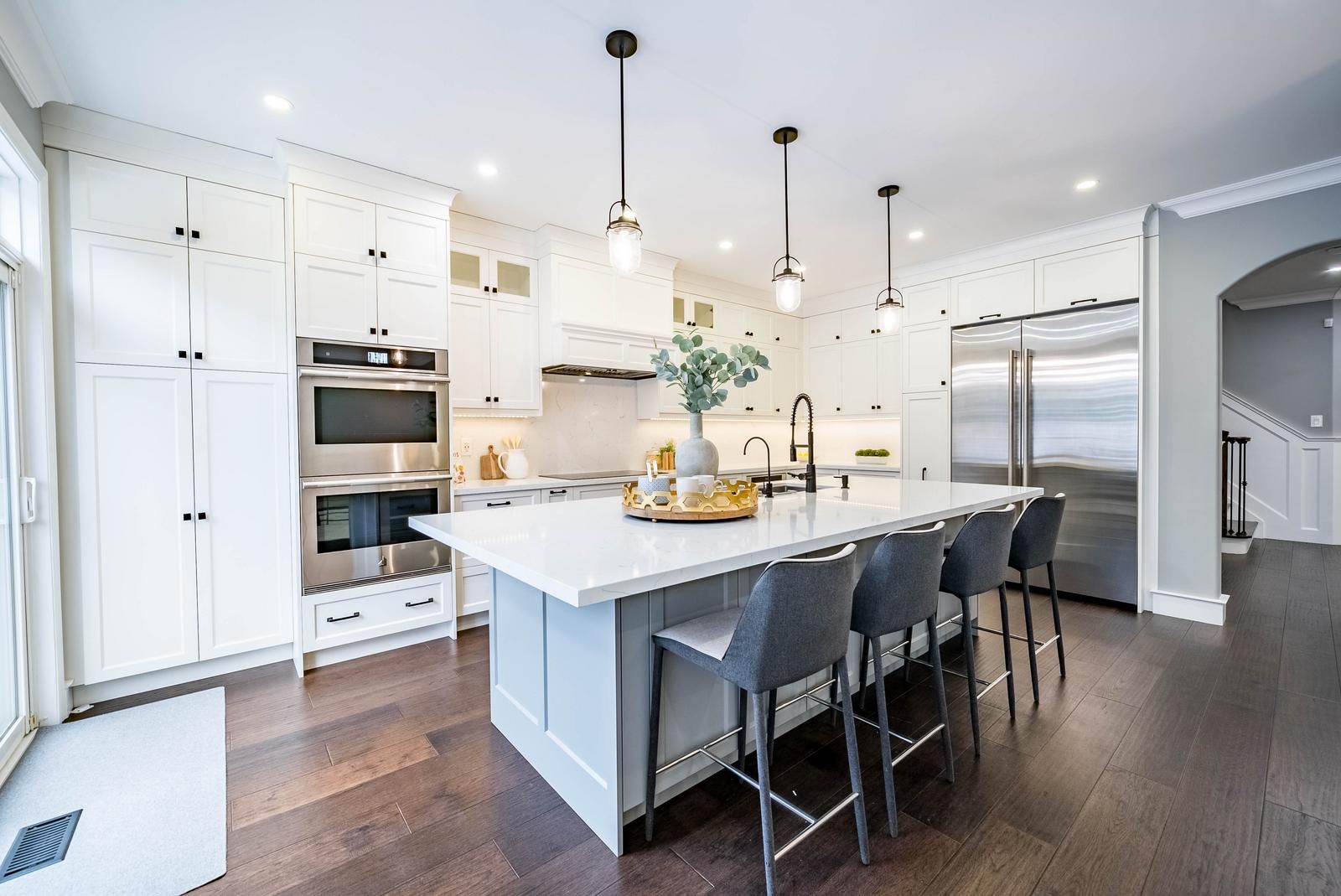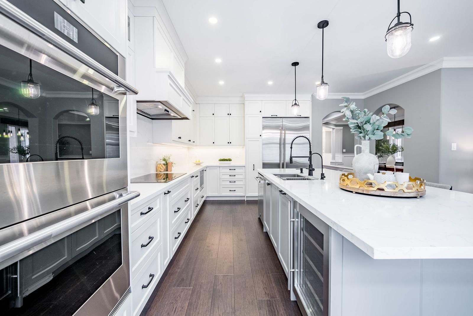 • Gorgeous kitchen with high-end appliances and quartz countertops.