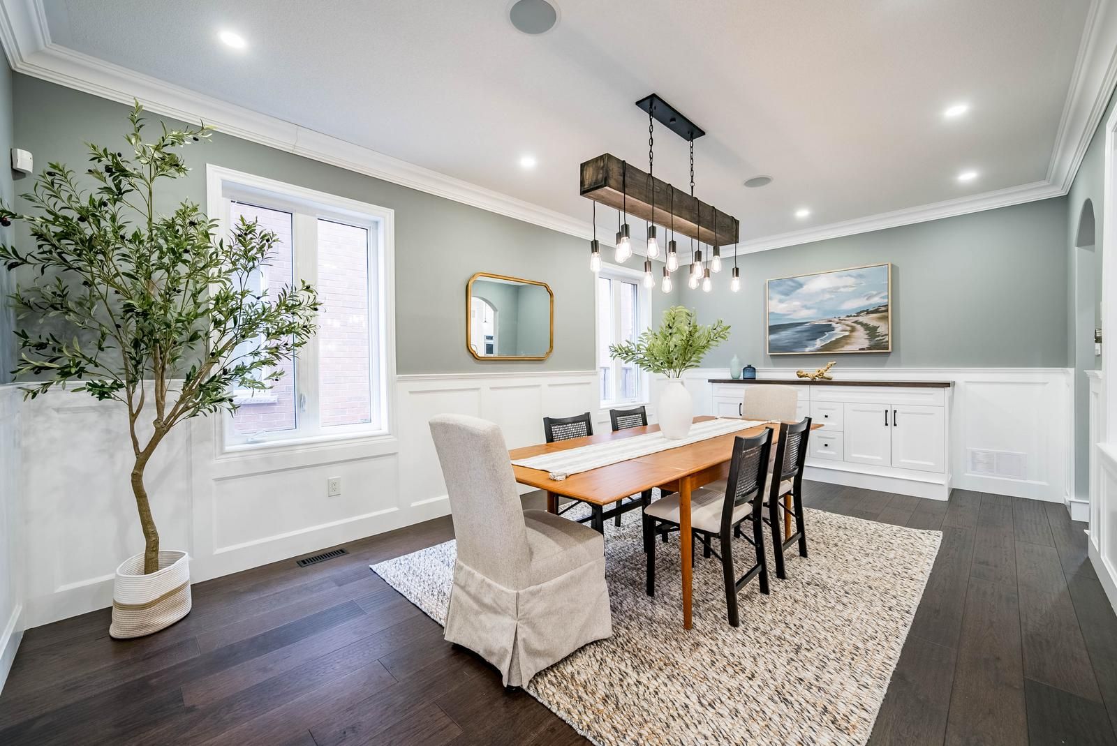 Move-in ready and beautifully renovated, this exceptional four-bedroom detached home offers stylish upgrades and a functional layout designed for modern family living. The welcoming foyer features custom wainscotting with a built-in bench, shelves, and hooks, along with a convenient powder room. Just off the entry, the formal dining room showcases large windows, high ceilings, and a custom built-in cabinet, creating a bright and versatile space for entertaining or relaxing. At the heart of the home is the stunning kitchen, renovated in 2023 and equipped with high-end jennair appliances, quartz countertops, and a custom backsplash, seamlessly flowing into the inviting living area. The main floor also features a convenient laundry area with direct access to the garage. Upstairs, the spacious primary suite offers a vaulted ceiling, walk-in closet, and a beautifully renovated spa-inspired ensuite with a soaker tub, glass shower, heated floors, and a heated towel rack. Three additional bedrooms share an updated four-piece bathroom, and brand-new carpeting adds warmth throughout the level. The fully finished basement provides incredible flexibility with two additional bedrooms and a large open space ideal for a media room, playroom, gym, or extended living area, along with ample storage and a cantina. Set on a beautifully maintained property and ideally located close to shopping, grocery stores, major highways, and excellent schools including barbara reid public school, stouffville district secondary school, st. Brigid, and st. Katharine drexel, this home offers comfort, style, and convenience in one exceptional package. Main floor reno(2023), primary ensuite, jack and jill (2023), upstairs carpet(2022) roof(2021), backyard landscaping(2022), front yard landscaping (2021).
