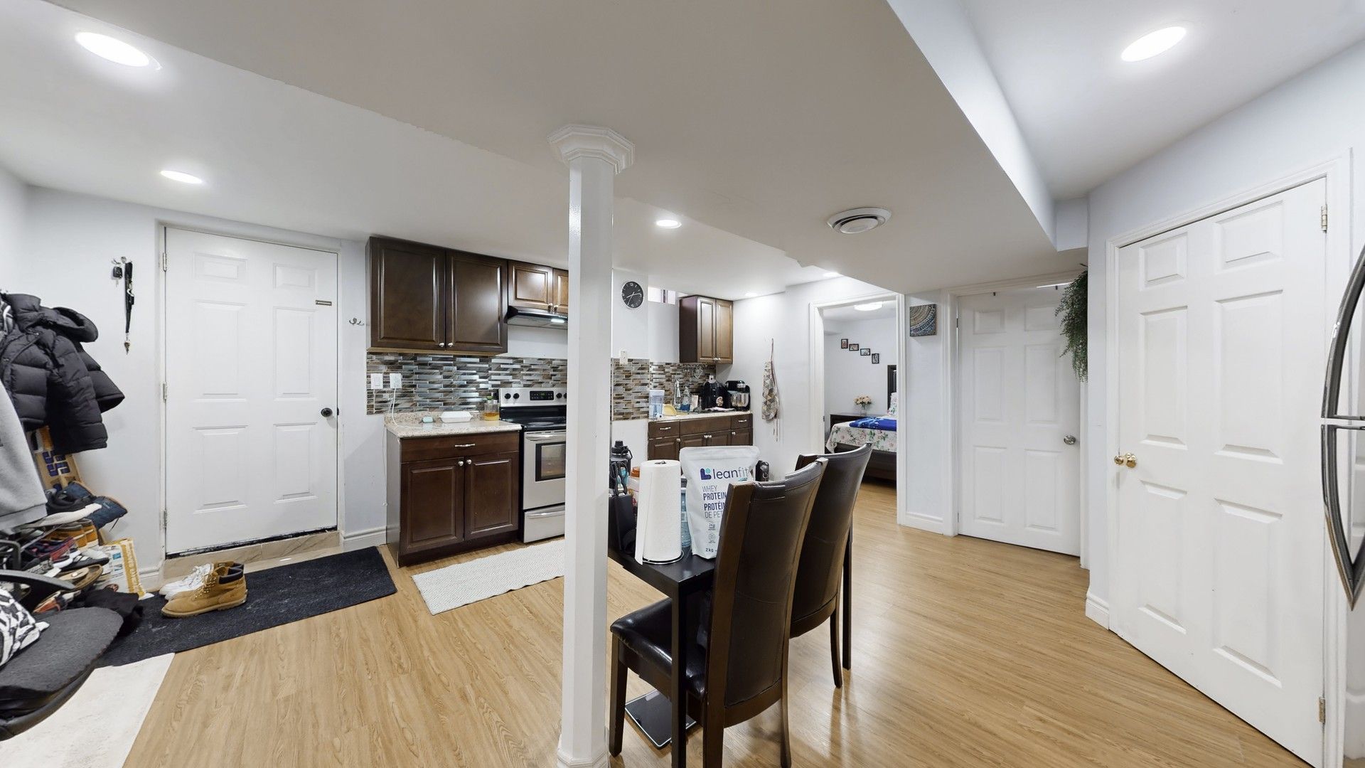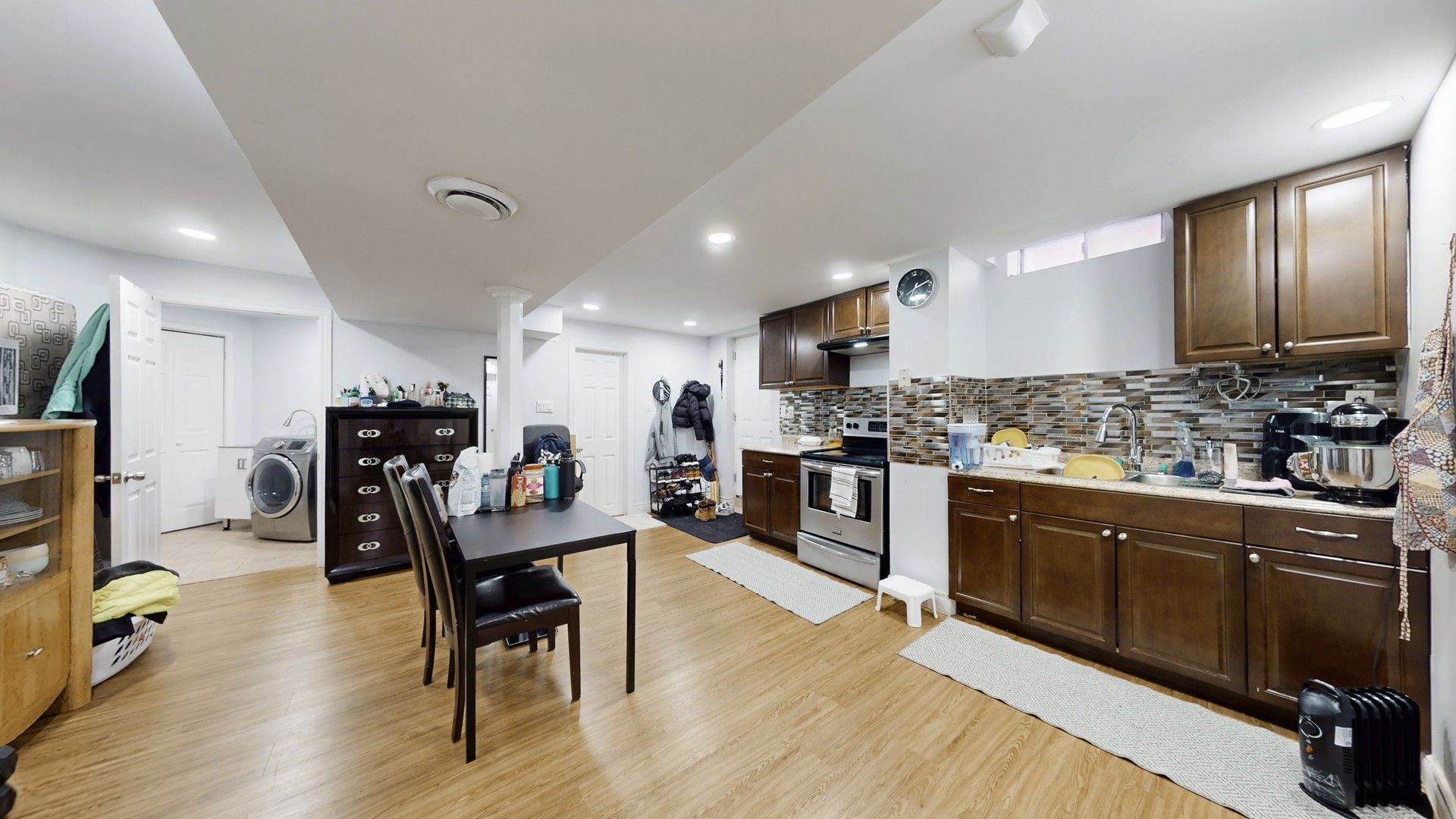 • Upgraded kitchen with quartz countertops and stainless steel appliances.