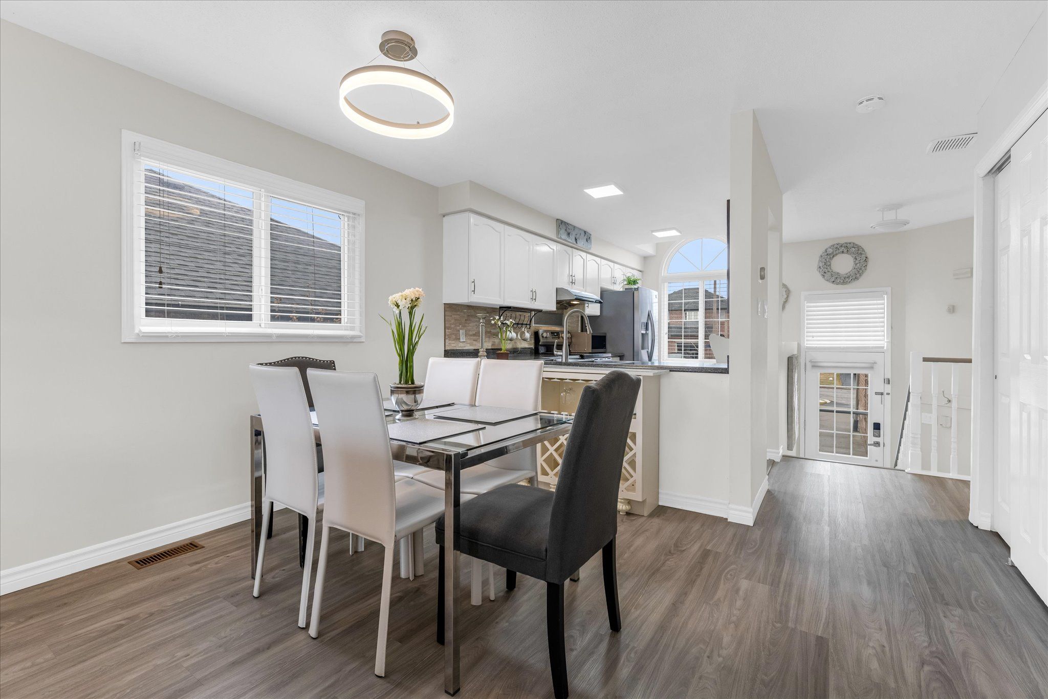 Bright & immaculately maintained semi-detached raised bungalow! Step inside and see this lovely home where natural light fills every corner. At the front of the home, the kitchen features a sunny window and a breakfast bar with room for two stools, flowing seamlessly into the dining area-perfect for family meals or entertaining. Continuing through the open-concept main floor, the spacious living room has patio doors to a fully-fenced backyard with a large deck, ideal for relaxing or hosting gatherings. This main level also offers a peaceful primary bedroom with a walk-in closet and ensuite privilege to the full 4-piece bathroom, plus a second bedroom with a double closet. Beautiful flooring throughout adds warmth and style. The fully-finished basement provides additional living space, including a bright rec room with gas fireplace, a kitchenette area, and a third bedroom-perfect for guests, and a home office - loads of room for a growing family. Additional highlights include an attached insulated garage, plenty of storage, and thoughtful upgrades throughout. Furnace & air conditioning - 2019. Located in a quiet, family-friendly neighborhood just minutes from schools, parks, shopping, and all amenities, this home blends comfort, style, and convenience in a beautiful package.