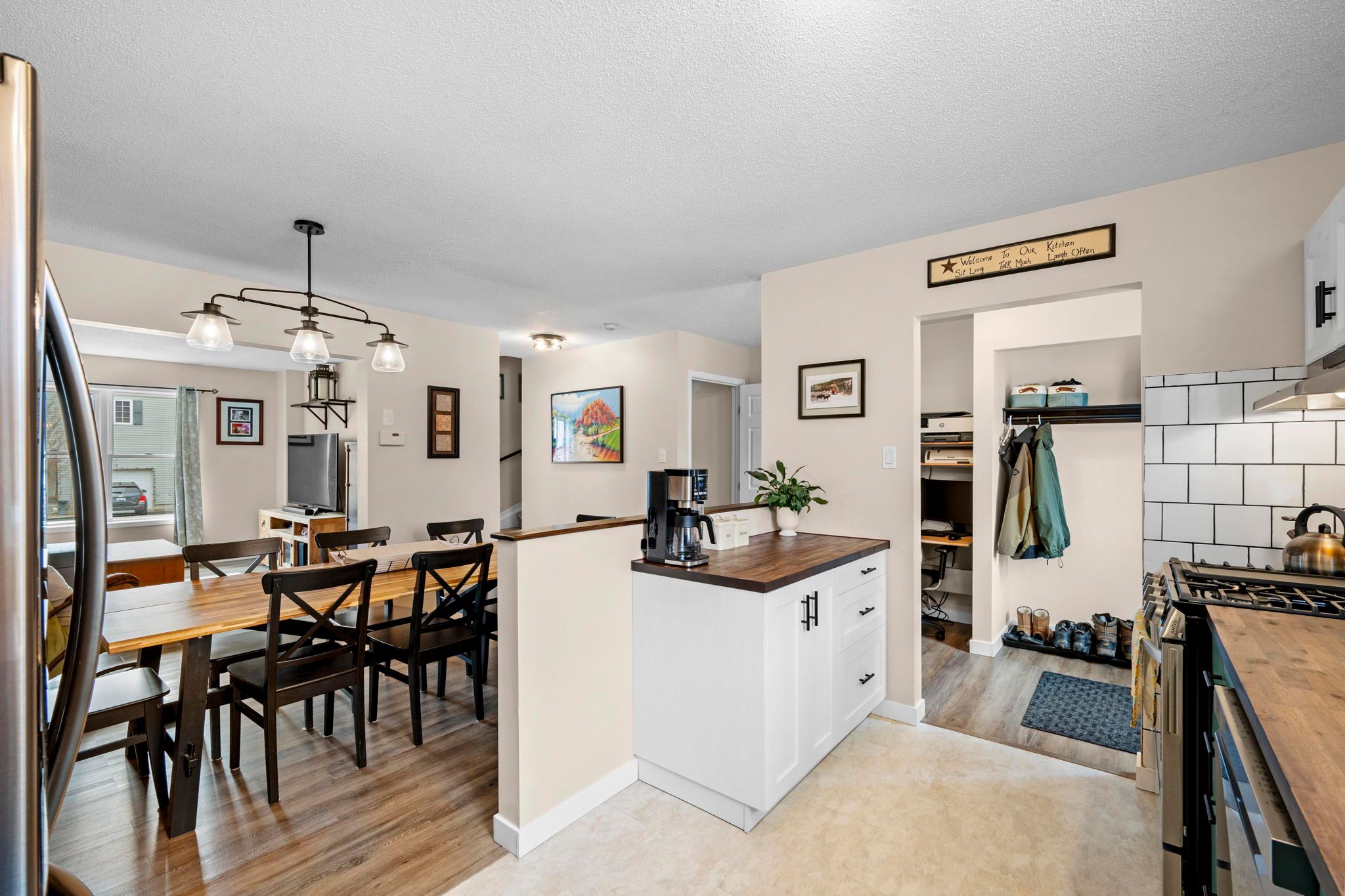Updated and renovated throughout, this move-in ready 2-storey townhome is tucked away on a quiet street in carleton place. A welcoming foyer opens to a bright and spacious main floor layout featuring new vinyl flooring through the living and dining areas. The beautifully updated kitchen offers stylish two-tone cabinetry, new butcher block countertops, new sink, and new matching lg stainless steel appliances including a gas stove. An added cabinetry and countertop extension creates the perfect coffee bar, prep station, or additional storage space. Upstairs features three bedrooms with new vinyl flooring throughout, including a generous primary suite with walk-in closet. A refreshed 4-piece main bathroom includes a new vanity and toilet. The fully finished lower level adds exceptional versatility with new vinyl flooring throughout, a comfortable family room, newly added 3-piece bathroom, and a flexible bonus room ideal for a home office, gym, guest space, or potential fourth bedroom. Outside, enjoy a fenced backyard with patio and gazebo, along with convenient access to the rear private laneway and detached single garage. Other upgrades include new carpets on upper and lower stair cases. Approx monthly utilities; hydro $180, water $92, gas $97, hot water tank $48. Additional photos and virtual tour links below.