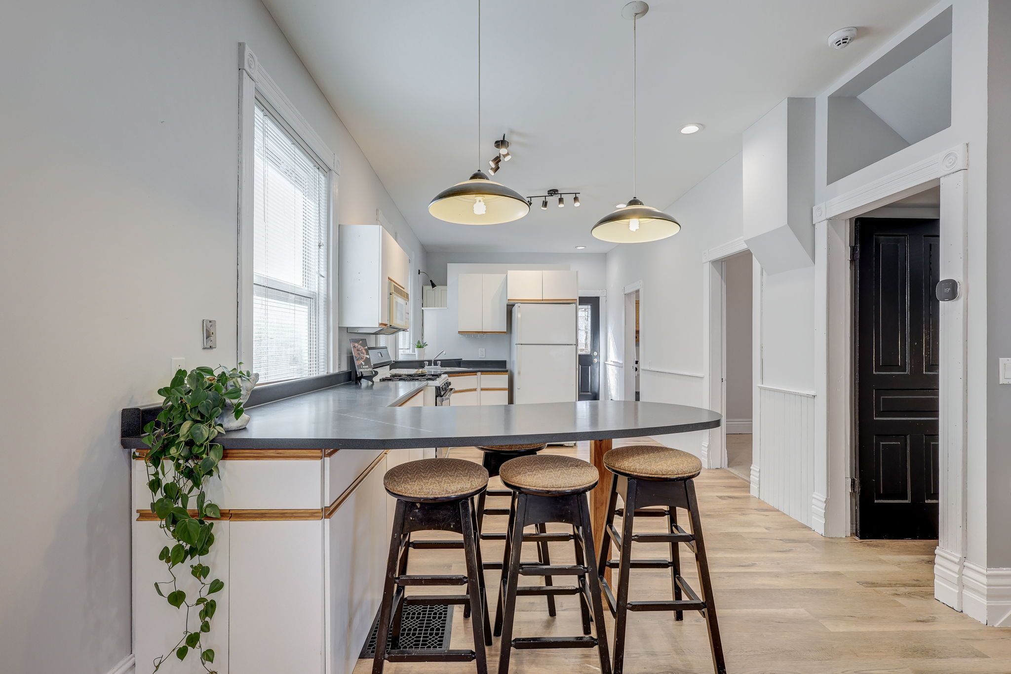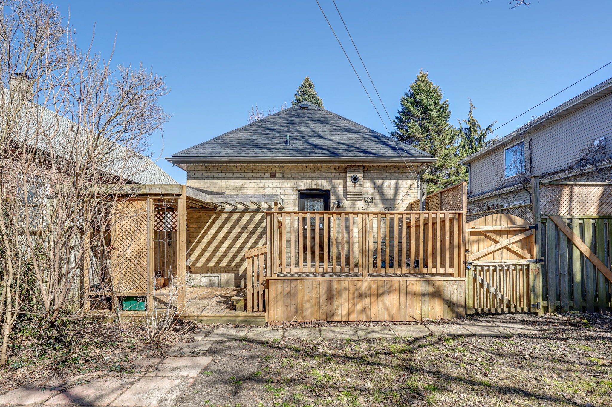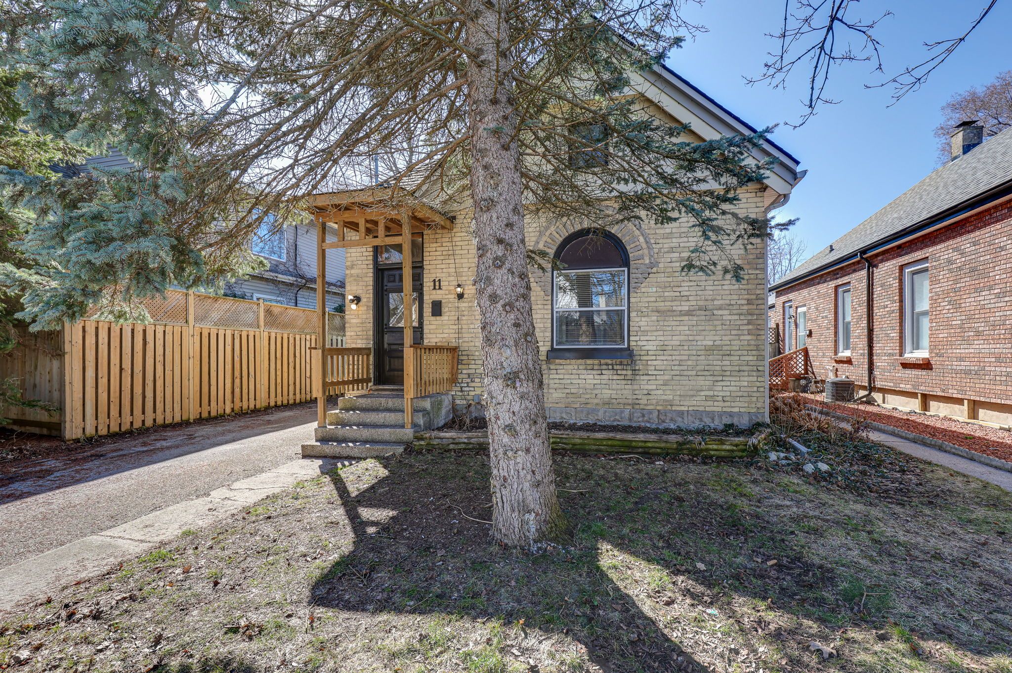 Welcome to 11 josephine st. Inside, the bright and airy main level features a half-vaulted ceiling and beautiful arched stained glass windows in the living room, adding timeless character. A stylish open staircase leads to the loft-style primary bedroom, complete with two opening skylights and ample closet space. Prefer to avoid the stairs? A second main-floor bedroom offers flexibility and convenience. The open-concept kitchen boasts a breakfast bar, built-in dishwasher, and a microwave range hood... The perfect blend of function and style. Additional perks include main-floor laundry and extra pantry storage. Recent updates include: freshly painted throughout (2025), newer vinyl laminate flooring on the main floor (2025), updated bathroom (2025). Step outside to your private, fully fenced backyard - a true urban oasis. Relax or entertain on the two-tier deck with a shade trellis, surrounded by generous green space. Plus, the long paved driveway offers plenty of parking. Newly re-shingled roof (2024), brand new energy-efficient gas furnace (2024), and a/c (2024)! Welcome to this charming yellow brick home, ideally located near victoria hospital with convenient access to the river, scenic bike trails, and chelsey green park. Public transit is just steps away, making commuting a breeze. Come see this fantastic home in person. Please note: living room, primary bedroom, and second bedroom have been virtually staged.