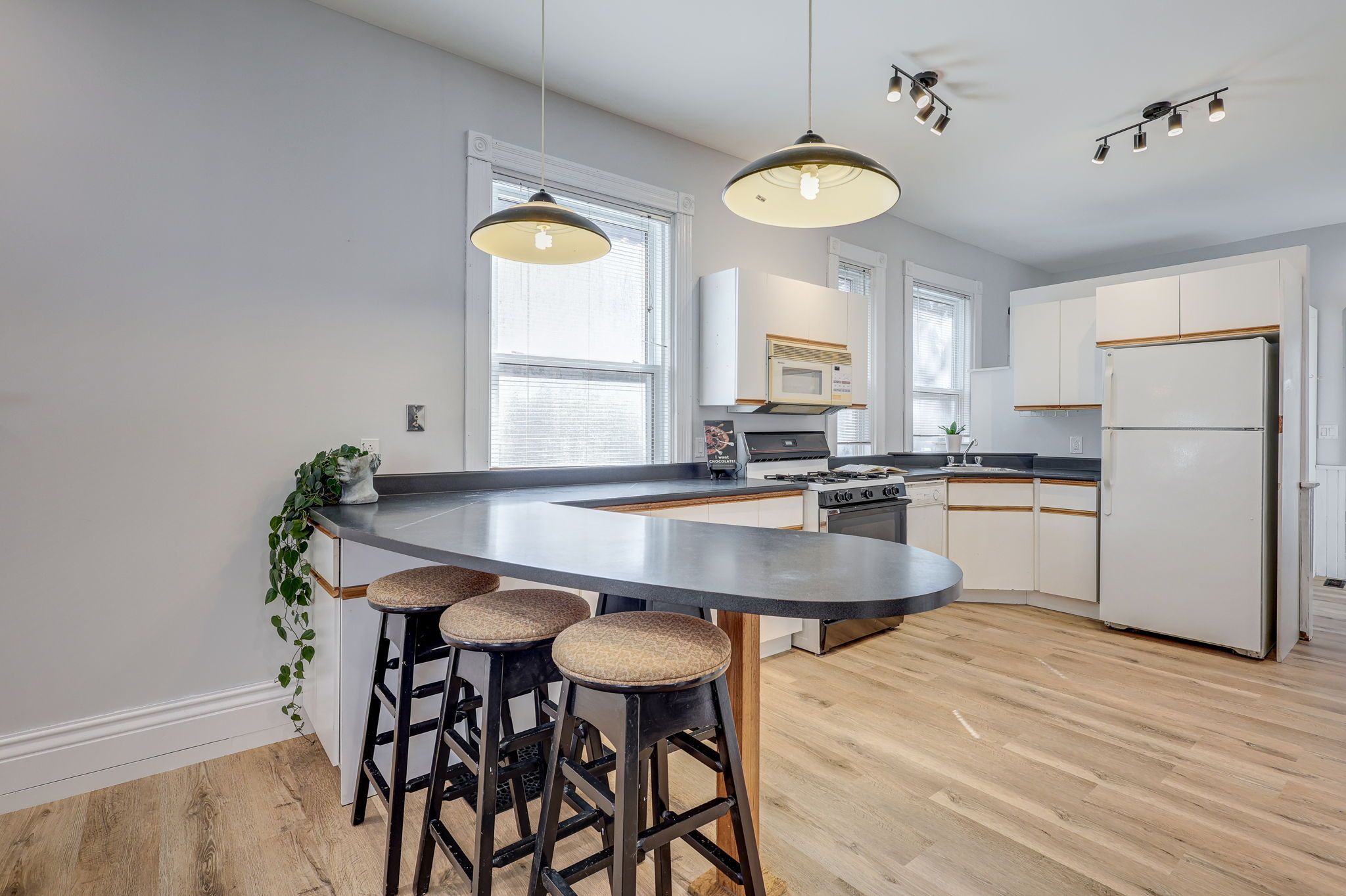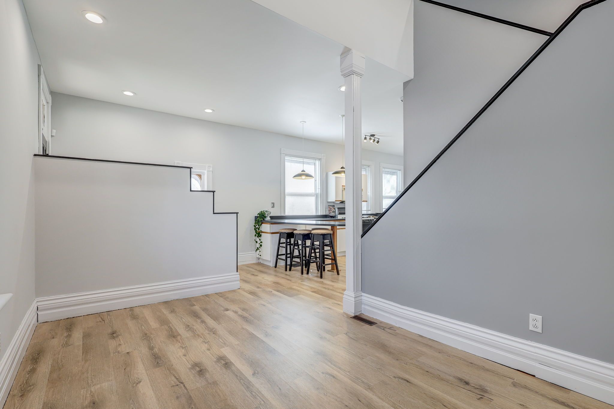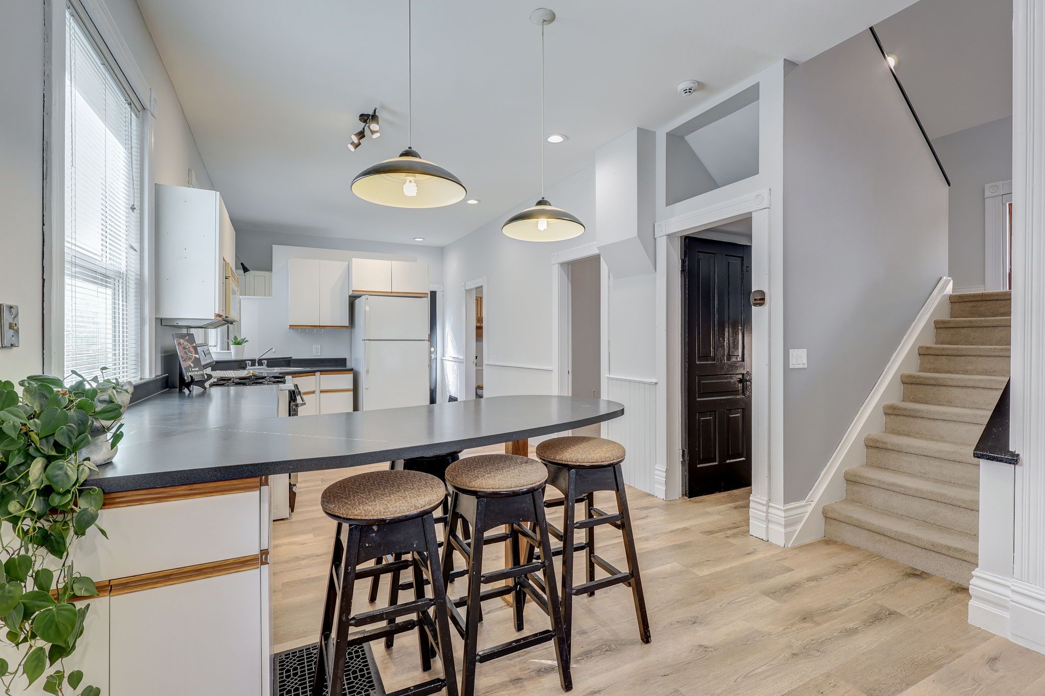 Welcome to 11 josephine st. Inside, the bright and airy main level features a half-vaulted ceiling and beautiful arched stained glass windows in the living room, adding timeless character. A stylish open staircase leads to the loft-style primary bedroom, complete with two opening skylights and ample closet space. Prefer to avoid the stairs? A second main-floor bedroom offers flexibility and convenience. The open-concept kitchen boasts a breakfast bar, built-in dishwasher, and a microwave range hood... The perfect blend of function and style. Additional perks include main-floor laundry and extra pantry storage. Recent updates include: freshly painted throughout (2025), newer vinyl laminate flooring on the main floor (2025), updated bathroom (2025). Step outside to your private, fully fenced backyard - a true urban oasis. Relax or entertain on the two-tier deck with a shade trellis, surrounded by generous green space. Plus, the long paved driveway offers plenty of parking. Newly re-shingled roof (2024), brand new energy-efficient gas furnace (2024), and a/c (2024)! Welcome to this charming yellow brick home, ideally located near victoria hospital with convenient access to the river, scenic bike trails, and chelsey green park. Public transit is just steps away, making commuting a breeze. Come see this fantastic home in person. Please note: living room, primary bedroom, and second bedroom have been virtually staged.