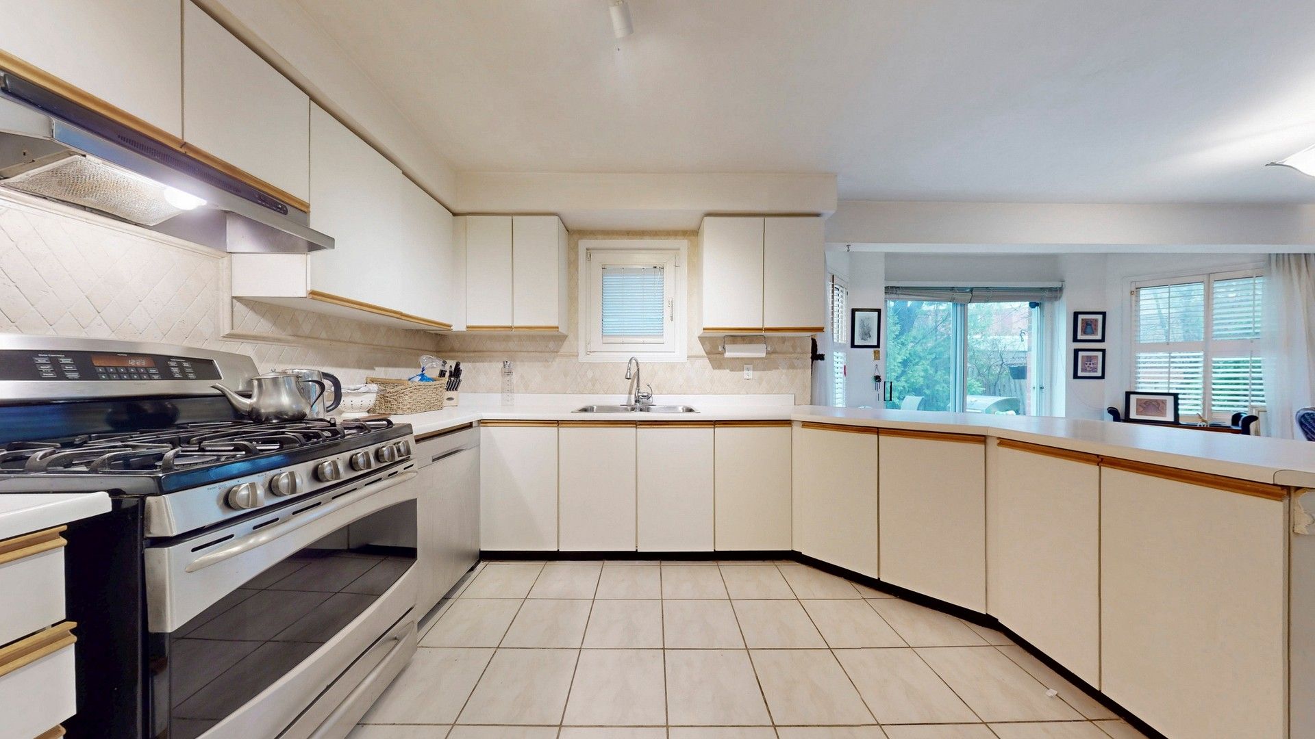 • Huge kitchen featuring stainless steel appliances and breakfast area.