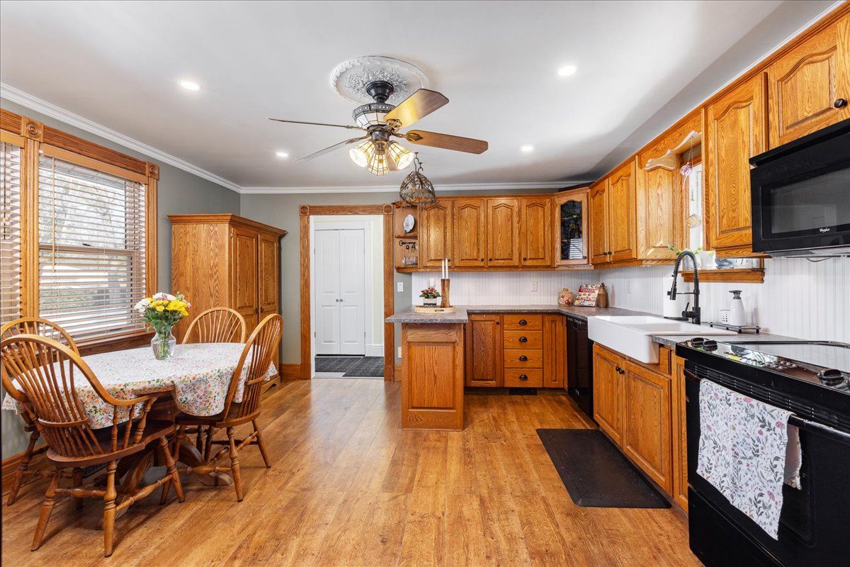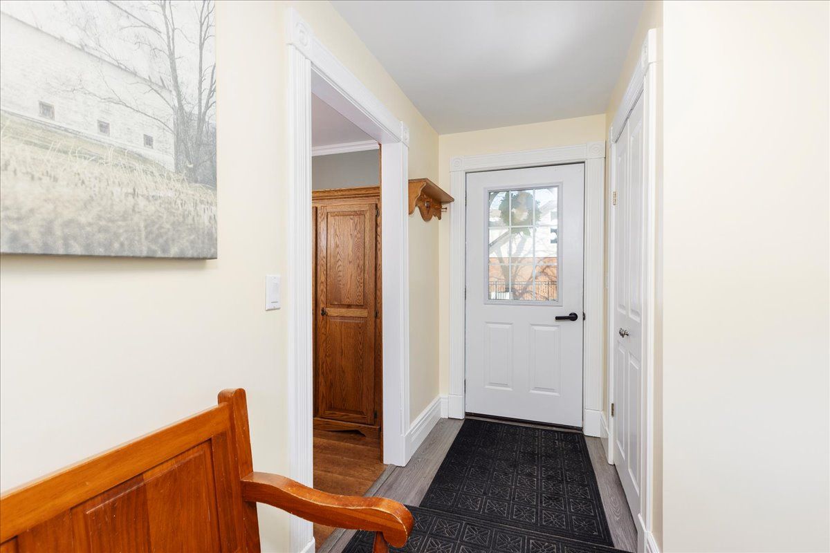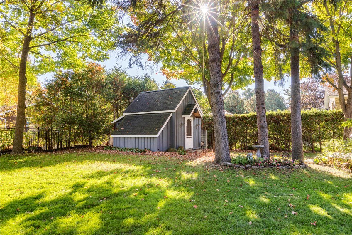 Step back in time without sacrificing a single modern comfort. Built in 1895 and cherished by the same family for over 30 years, this 3-bedroom century home is a masterclass in preserved character. From the moment you enter, the craftsmanship of a bygone era shines through in the custom wood trim, intricate crown moulding, and re-finished pocket doors. The main floor living room serves as an elegant centrepiece, where soaring ceilings and deep crown moulding, meet oversized windows that bathe the space in natural light. It is the perfect setting for quiet evenings or hosting guests in a room that feels both grand and deeply inviting. The heart of the home is the sun-drenched eat-in kitchen, featuring a classic farmhouse sink and expansive windows that overlook the mature gardens. Flexibility defines the main floor: the formal dining room, complete with a stunning frosted glass pocket door, currently serves as a quiet home office but could easily transition into a fourth bedroom. Retreat upstairs to the primary suite, a private sancturary boasting its own 3-piece ensuite, laundry, and a romantic juliette balcony for morning coffee. Outside, the oversized, fully fenced lot is an oasis of mature trees and cedar hedges, featuring a 14x14 insulated workshop with hydro for the dedicated hobbyist. Located in a picturesque, walkable neighbourhood just steps from local schools and the vibrant main street.
