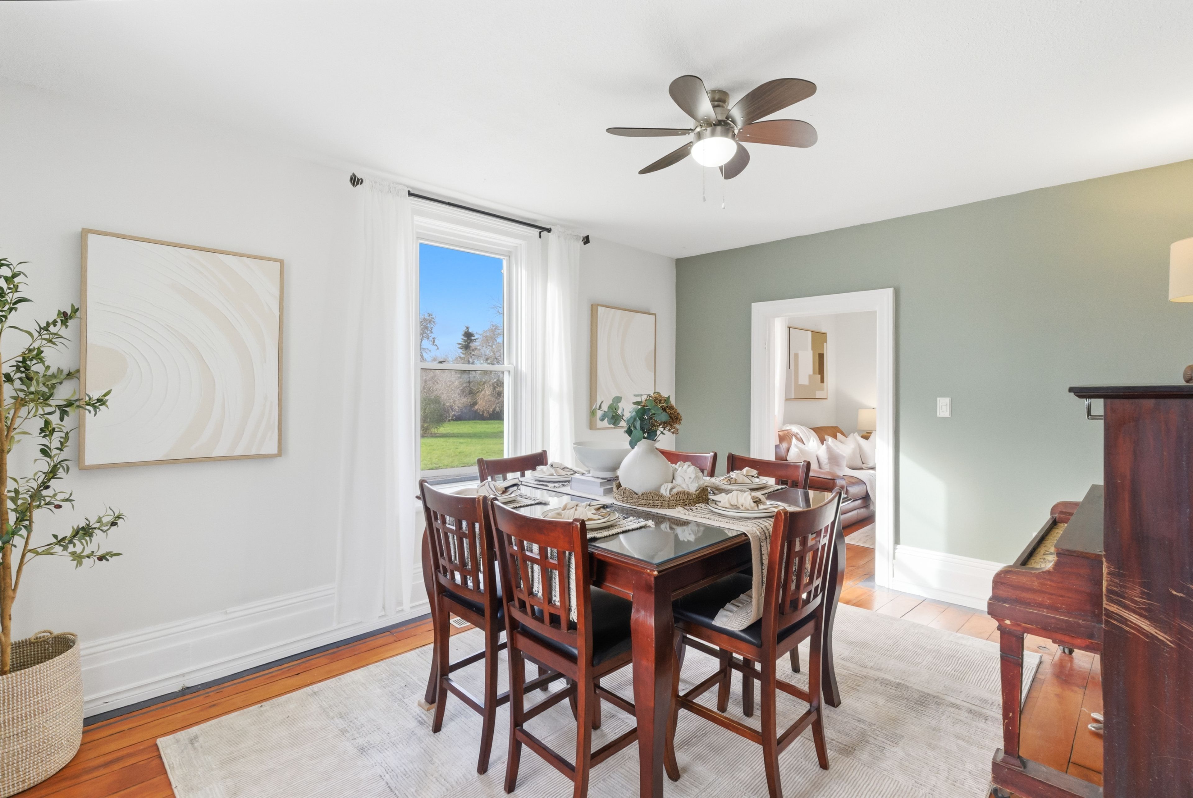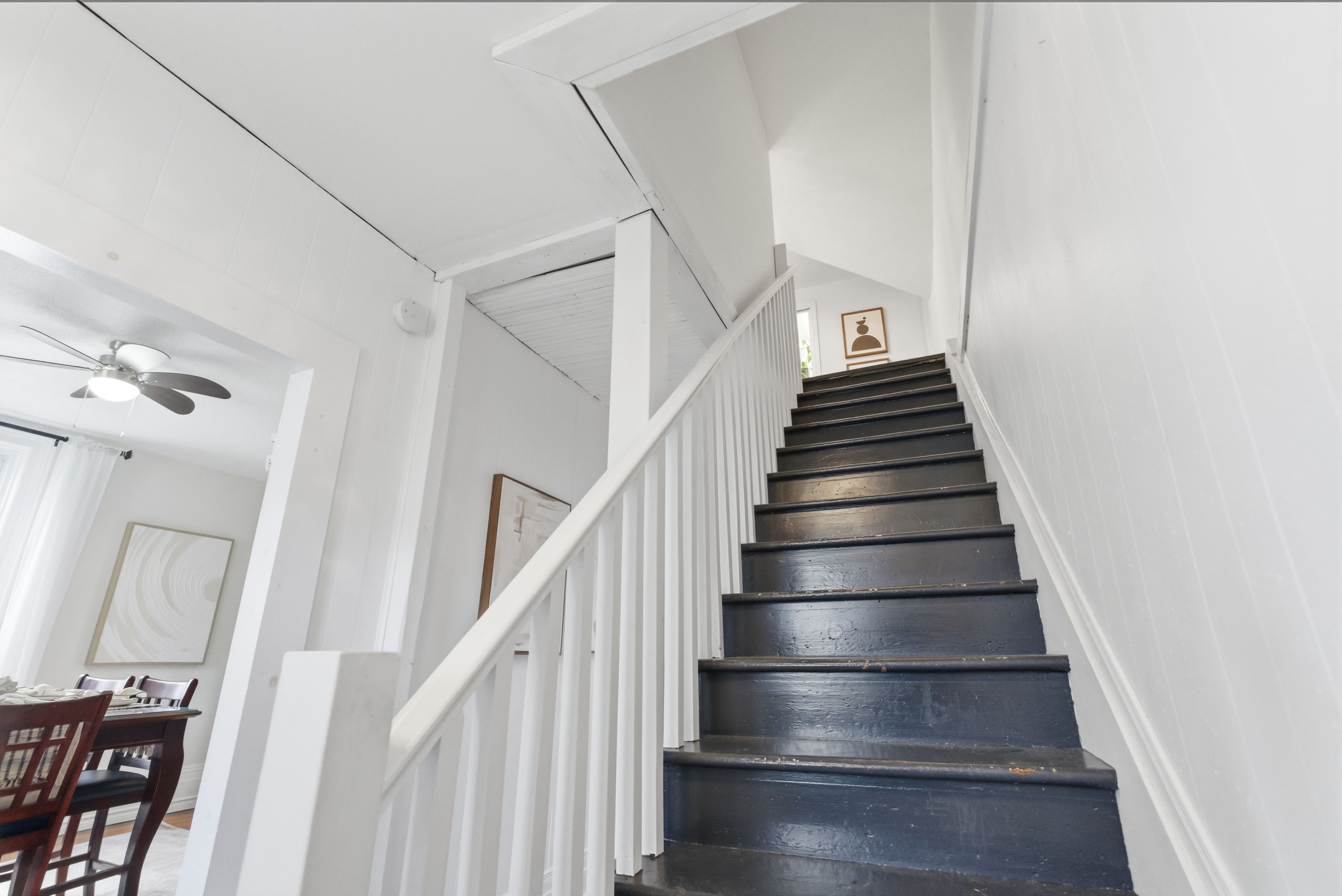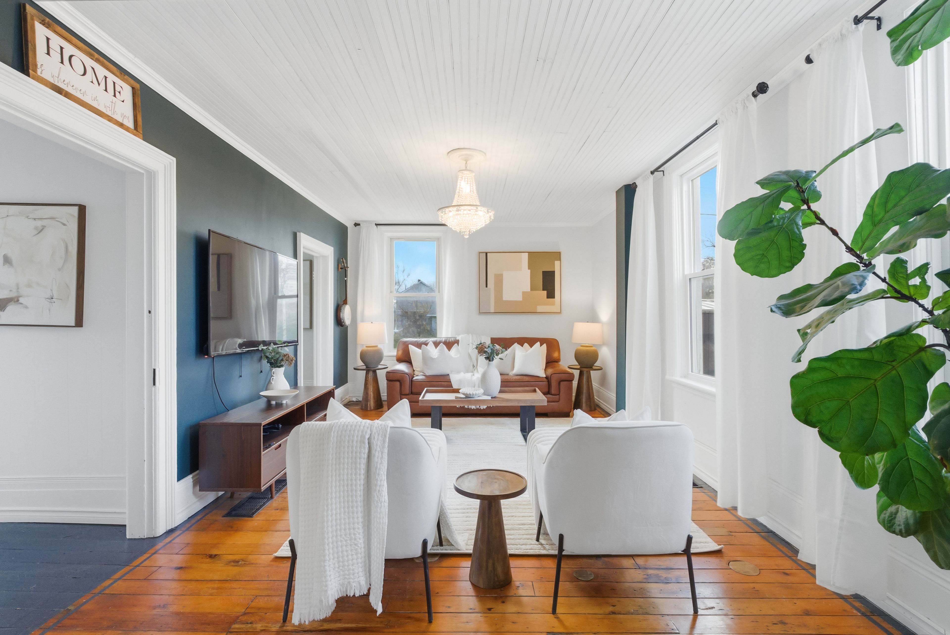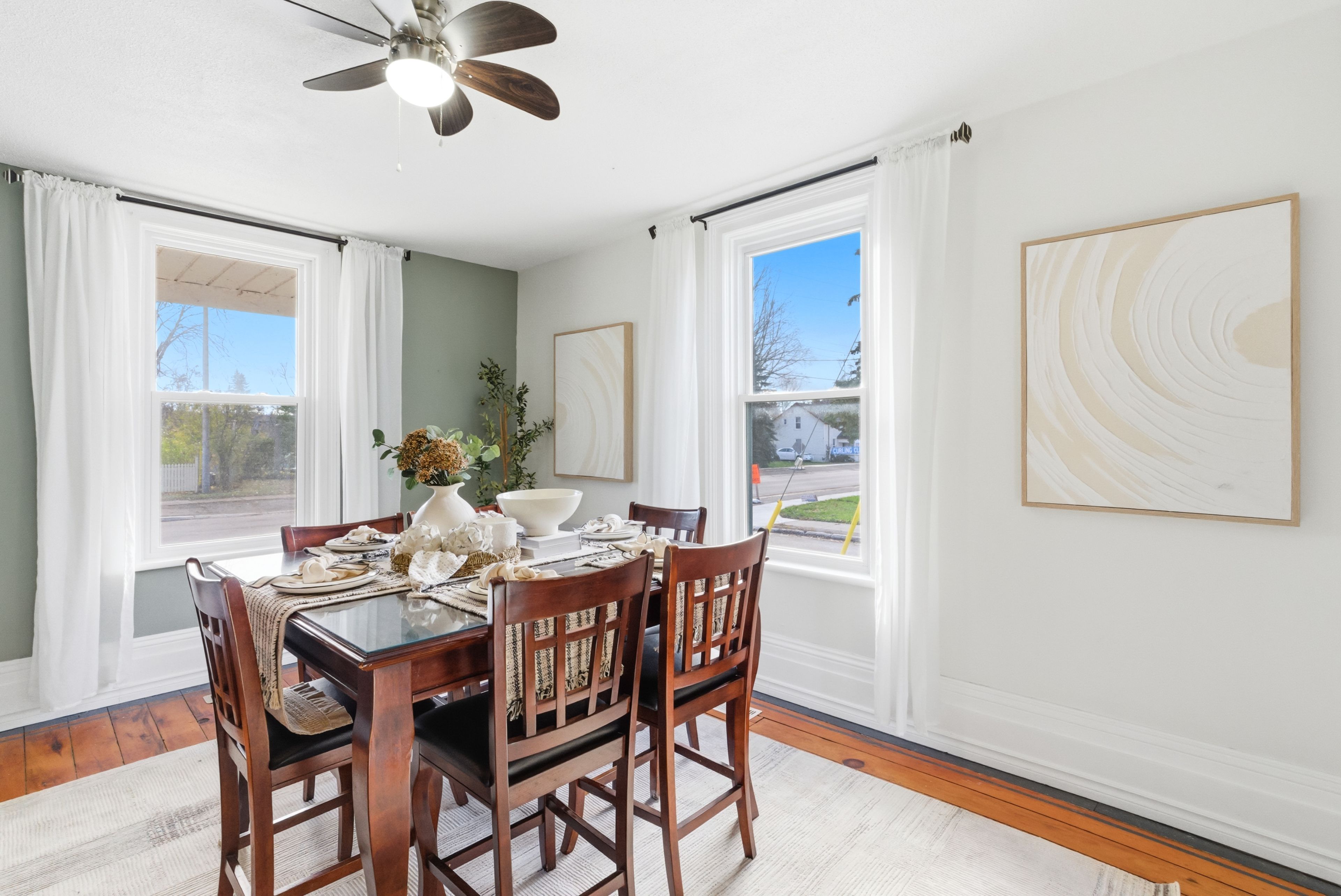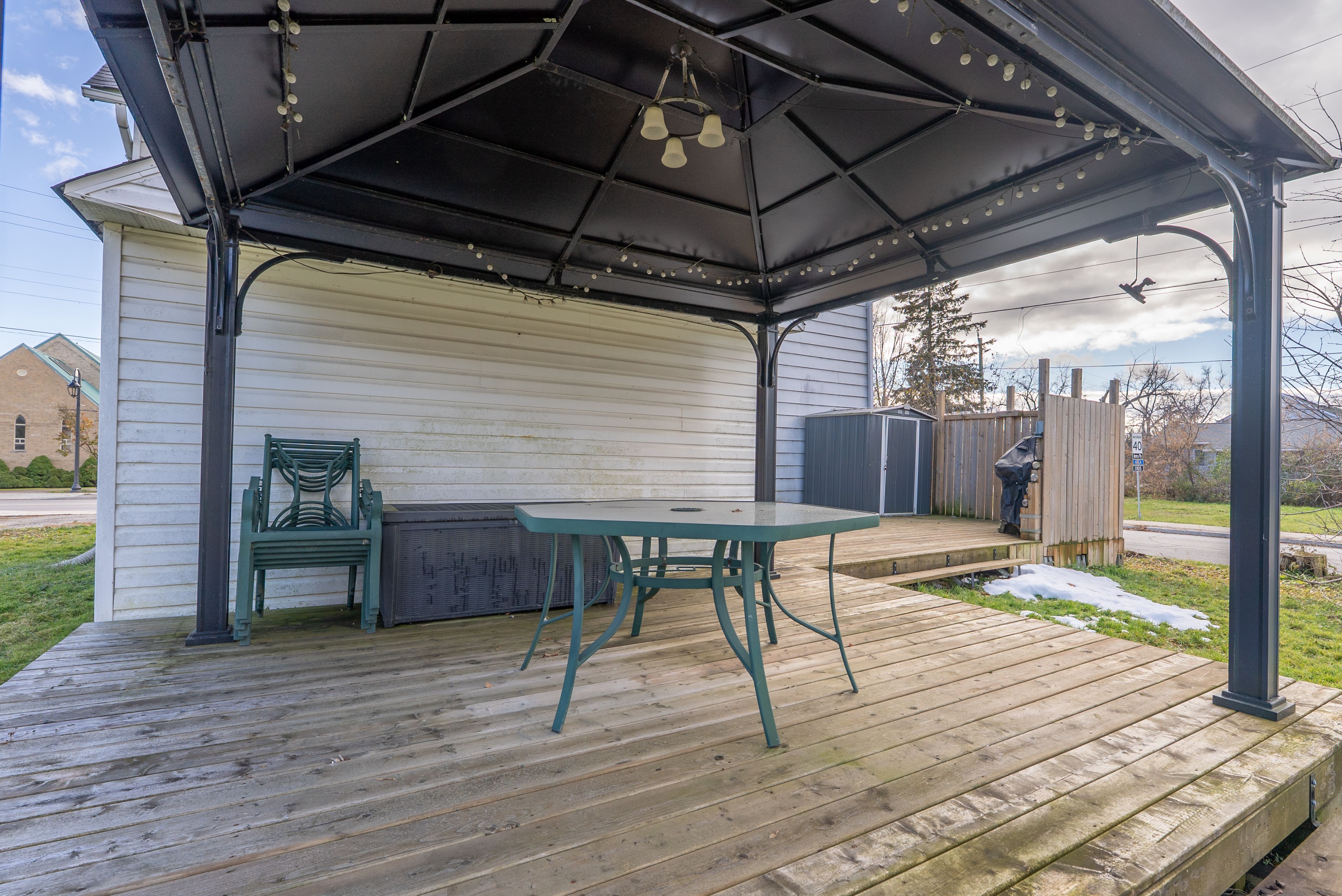 Looking for a home that blends small town charm with modern comfort? This character-filled 2-storey home is perfectly situated within walking distance to amenities, offering warmth and functionality in every detail. Enjoy relaxing mornings on the covered front porch or cozy evenings around the fire pit in the large backyard. The main floor features beautiful pine flooring flowing through the living and dining rooms, and a bright, spacious kitchen with stainless steel appliances. The mudroom/laundry area includes a stackable washer and dryer with a convenient walkout to the deck, ideal for outdoor entertaining. Upstairs, the second floor showcases laminate flooring throughout, a huge primary bedroom with his and her closets and a vaulted ceiling, plus a modern 3-piece bathroom with a glass shower. Zoned c1 so if you are looking to start or have an existing business this is for you. Parking for four vehicles and a curb cut on james street for an additional driveway make this home as practical as it is charming. A true gem that captures the essence of small-town living.
