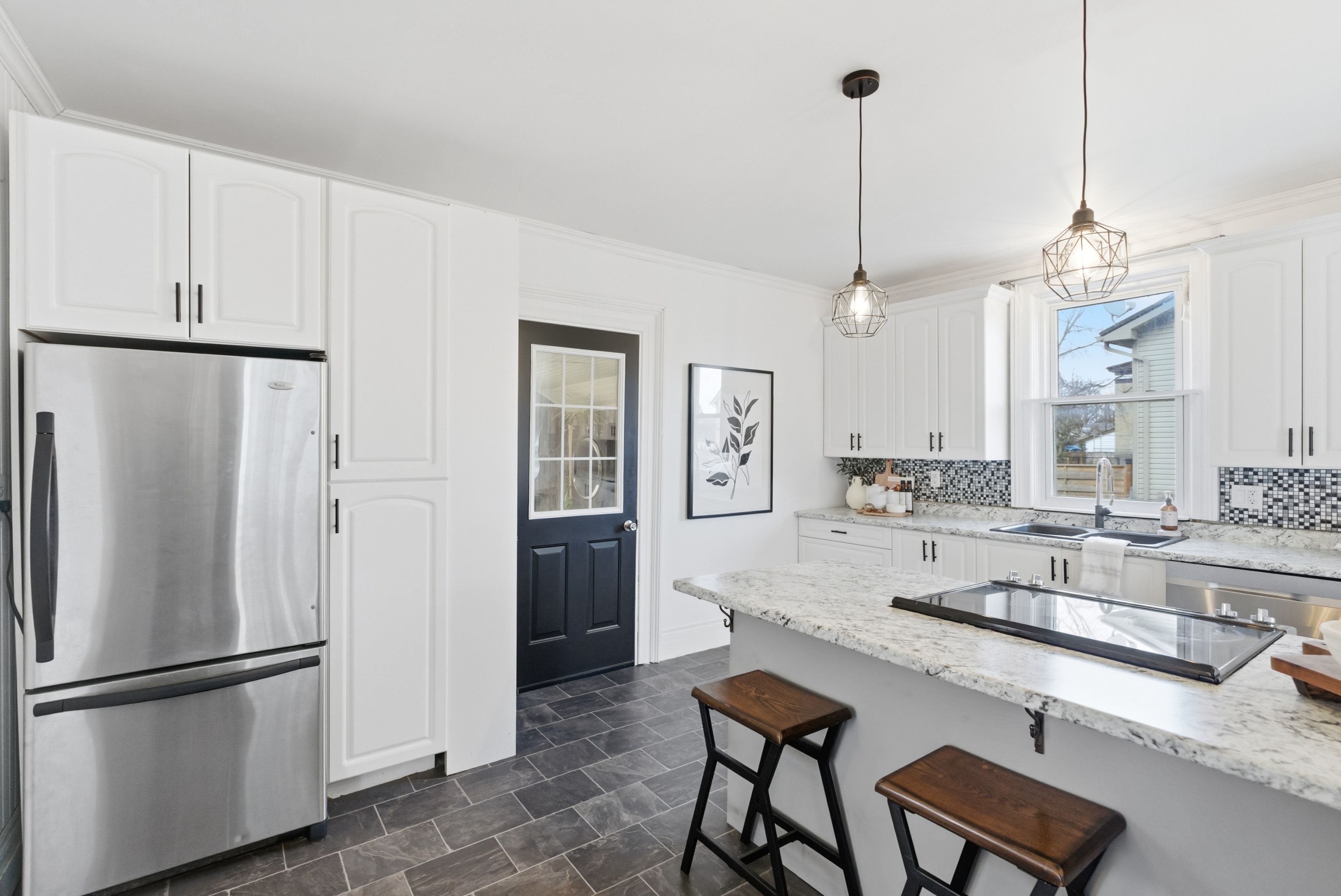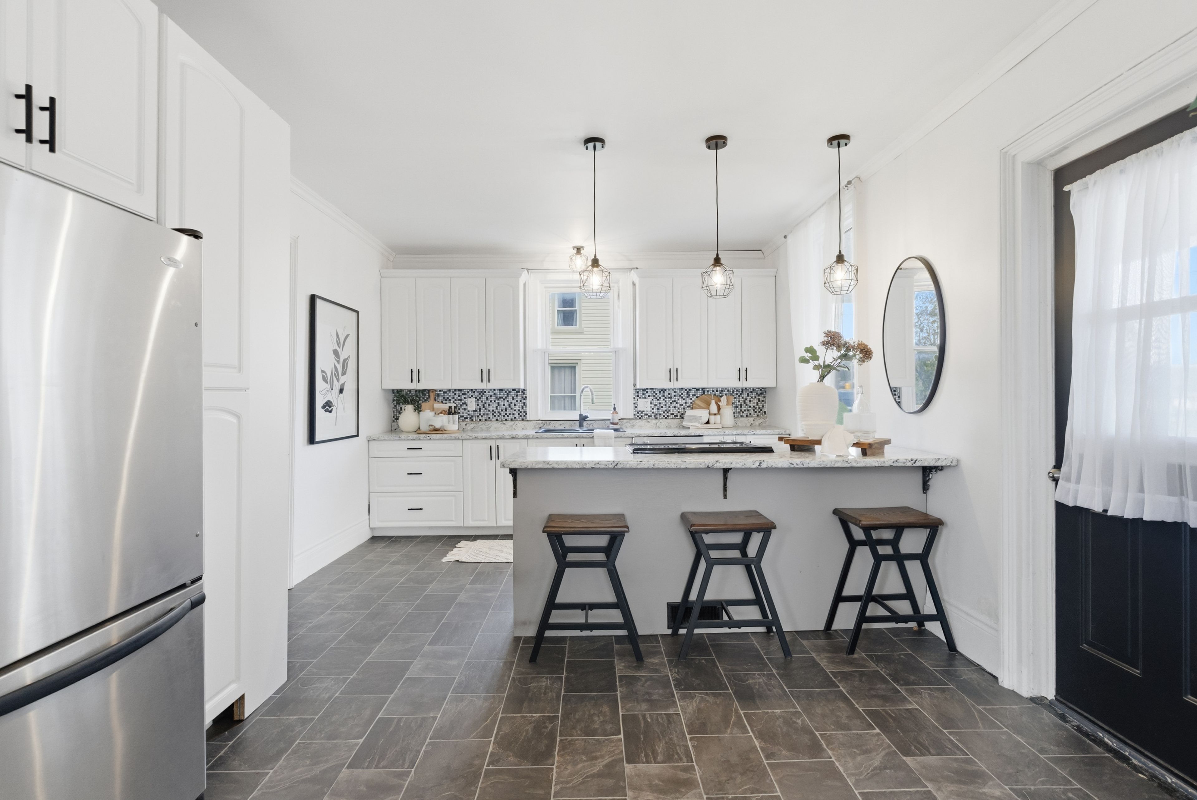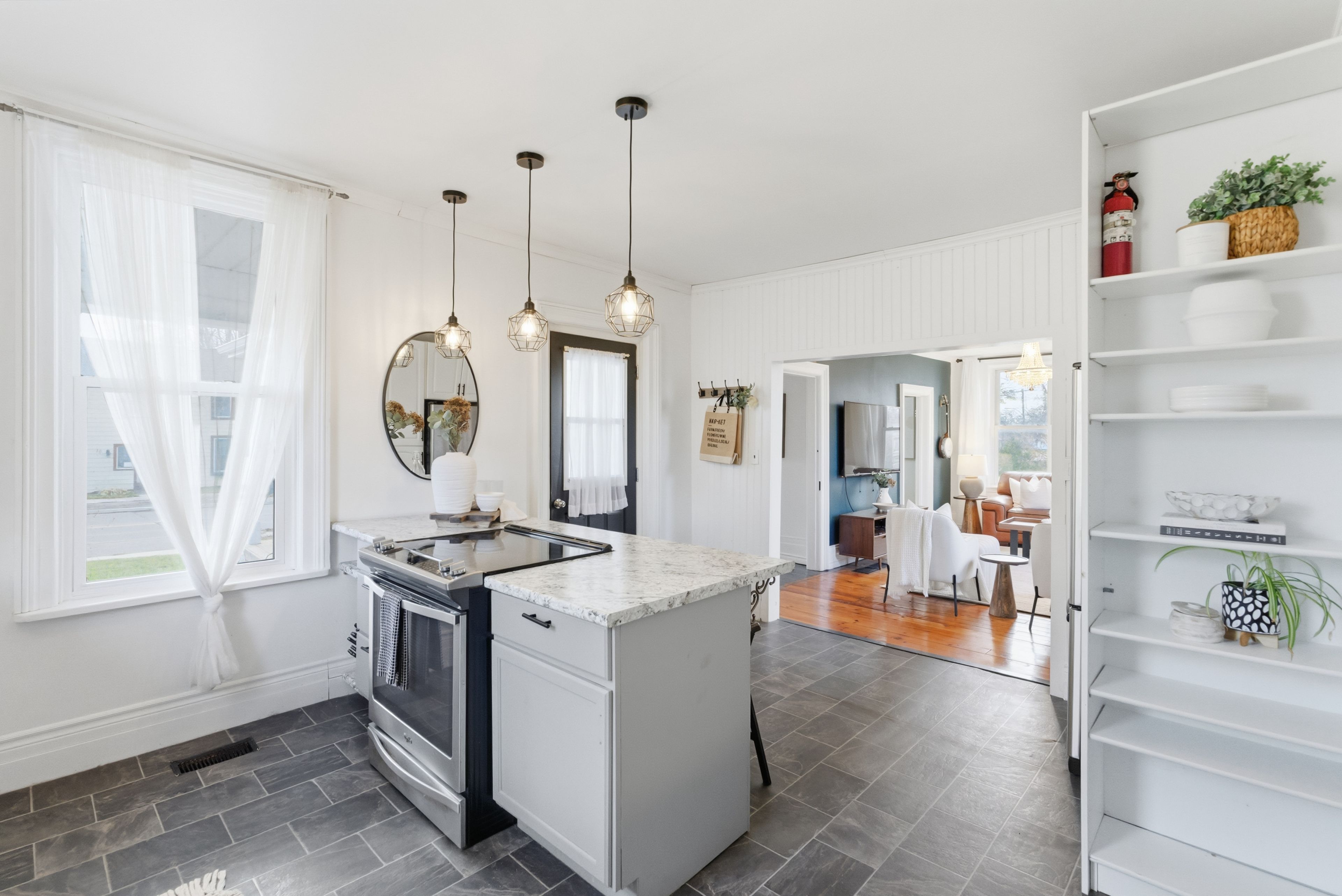 • Bright kitchen with stainless steel appliances and a convenient layout.